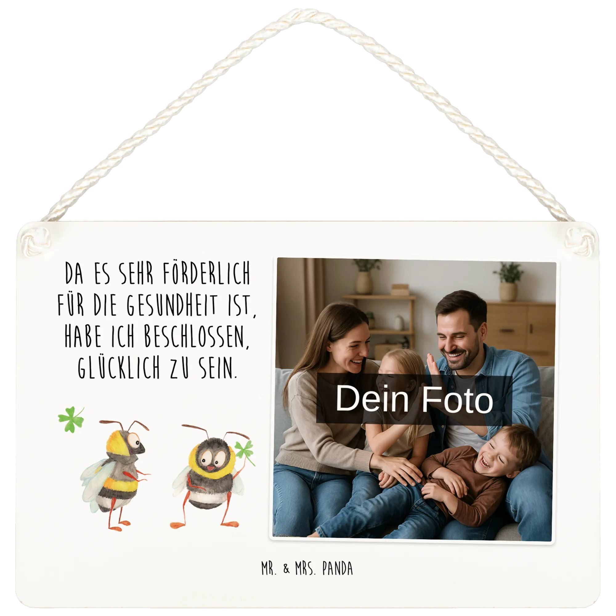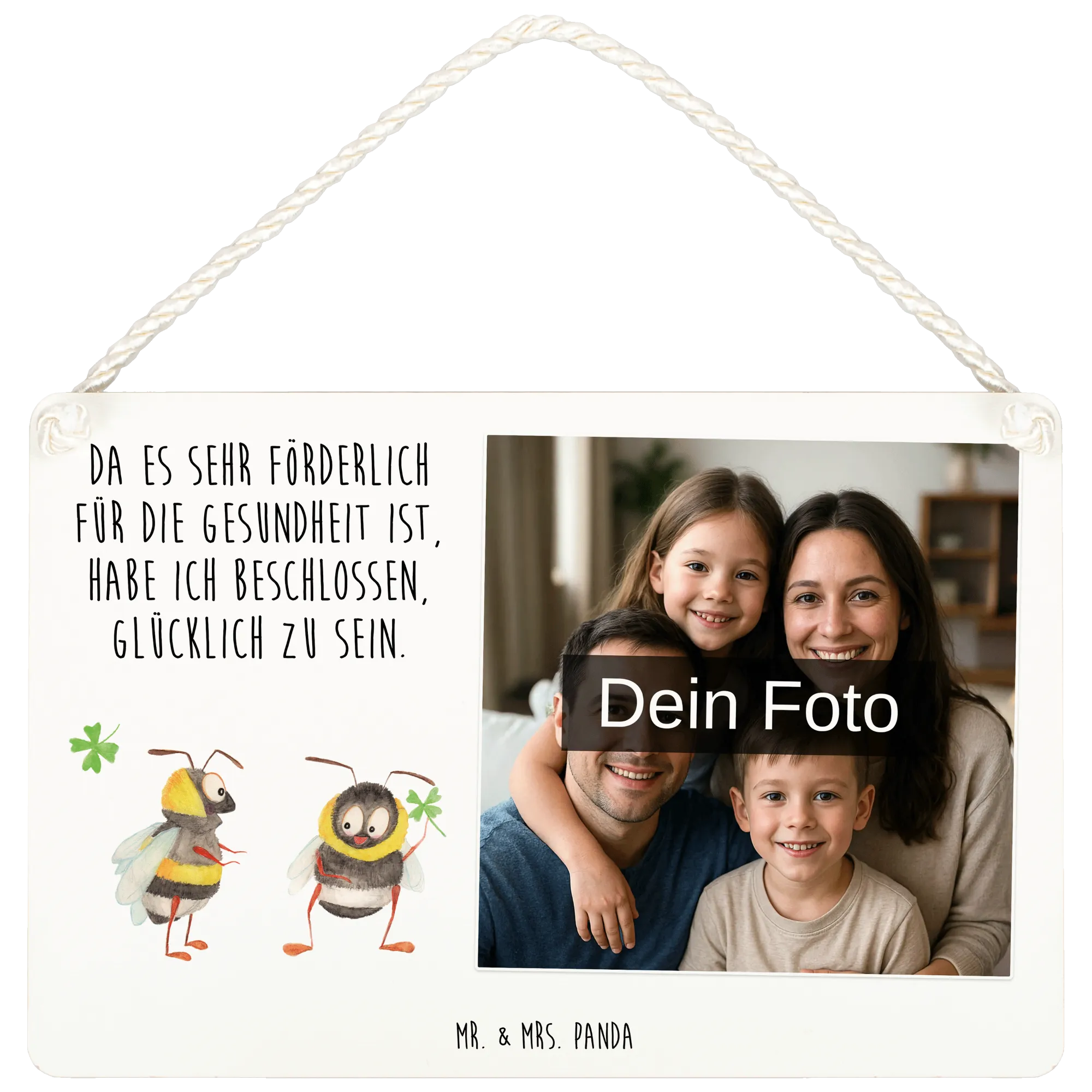 Personalisiertes Foto Deko Schild Hummeln Kleeblatt - DIN A5