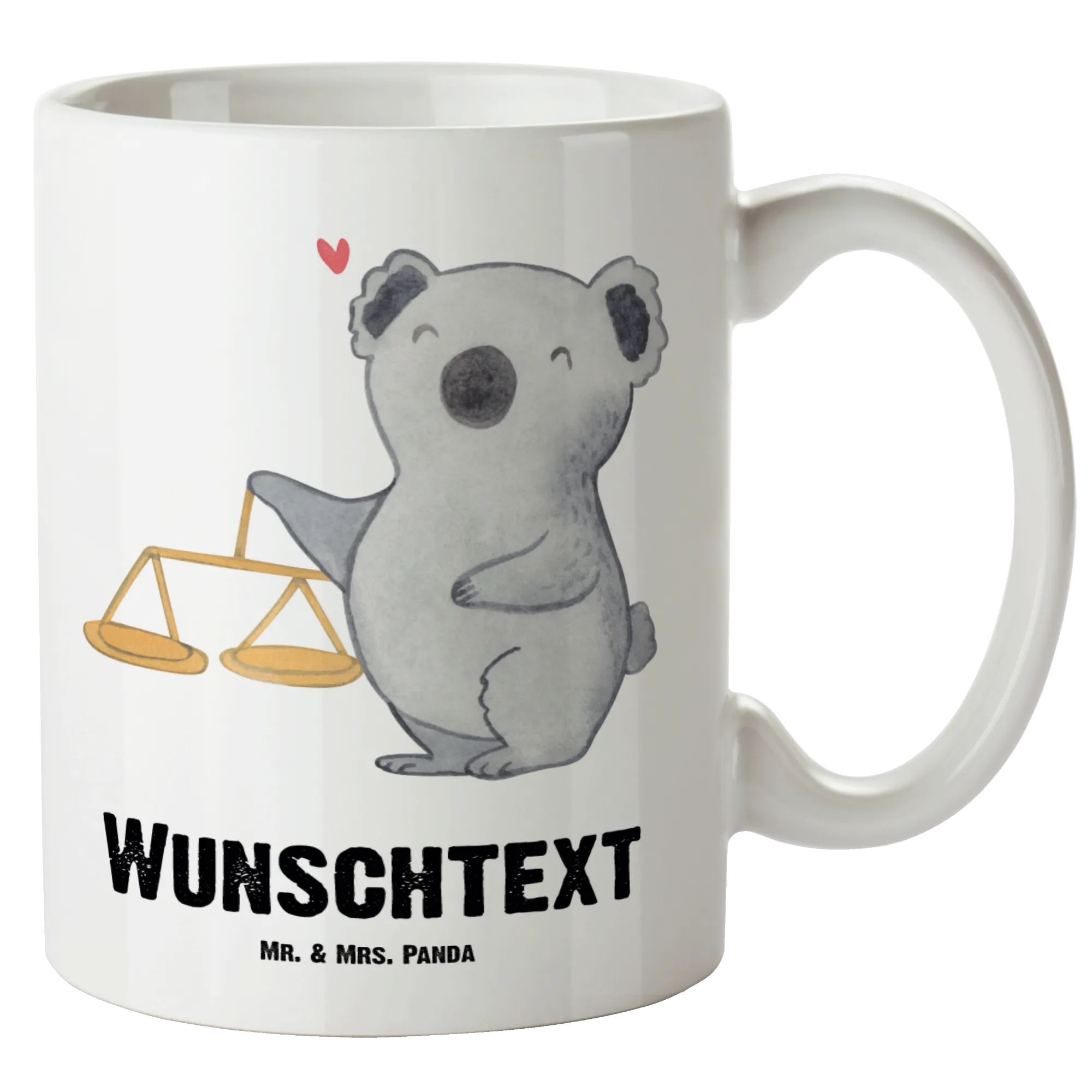 Die Tasse ist aus hochwertigem Steingut gefertigt, weiß lasiert und mit einem edlen Farbdruck versehen. Das handgezeichnete Motiv, das den freundlichen Koala neben einer klassischen Waage zeigt, bringt nicht nur Freude ins Herz, sondern auch ein Schmunzeln ins Gesicht. Auf der Tasse steht der schöne Spruch: "Im Herzen einer Waage, wo Gleichgewicht und Schönheit wohnen."