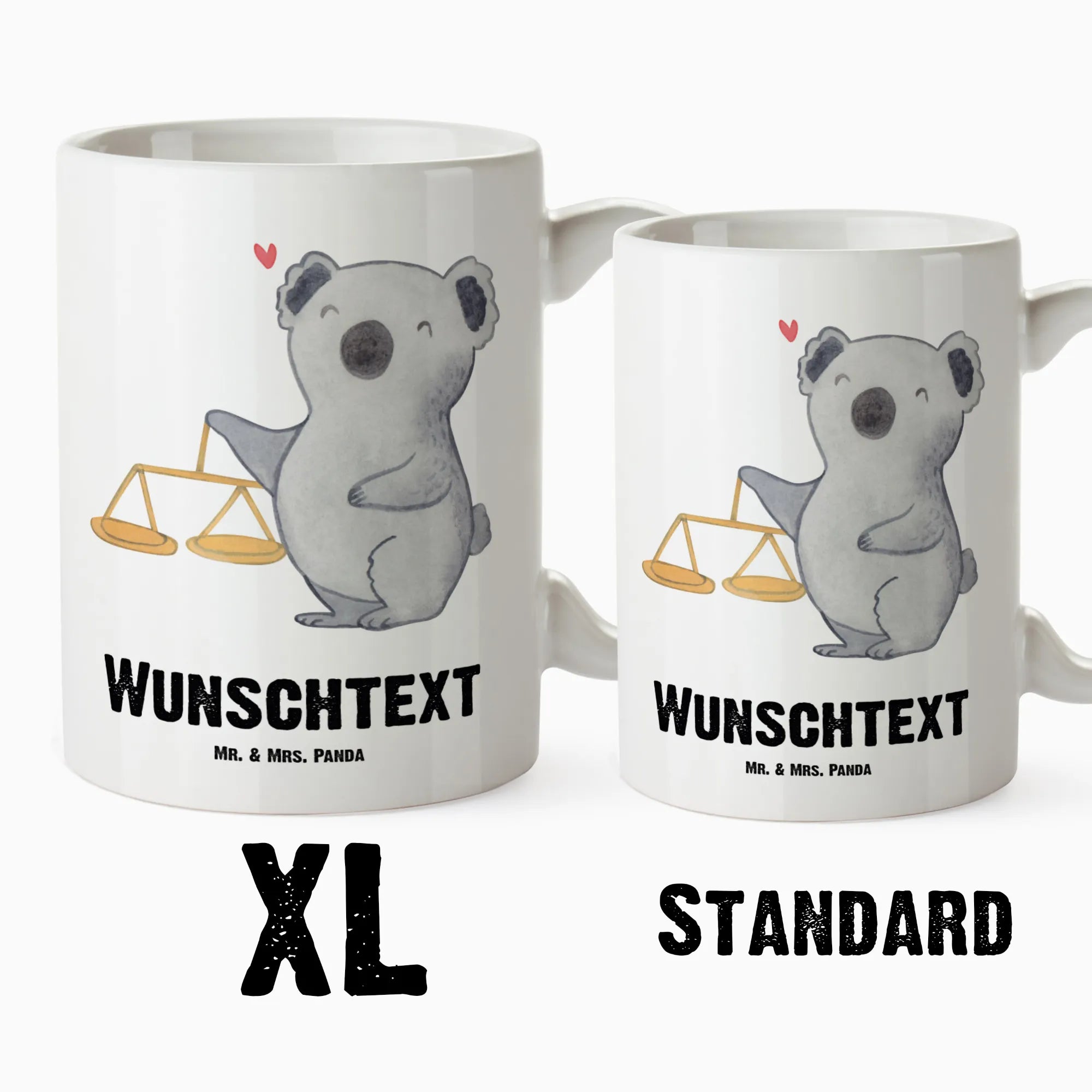 Bist du auf der Suche nach dem perfekten Geschenk für einen Waage-Geburtstag? Unsere personalisierte XL Tasse mit dem süßen Waage-Motiv von Mr. & Mrs. Panda ist genau das richtige! Mit einem großzügigen Füllvolumen von 500 ml ist sie ideal für Kaffee, Tee oder heiße Schokolade.