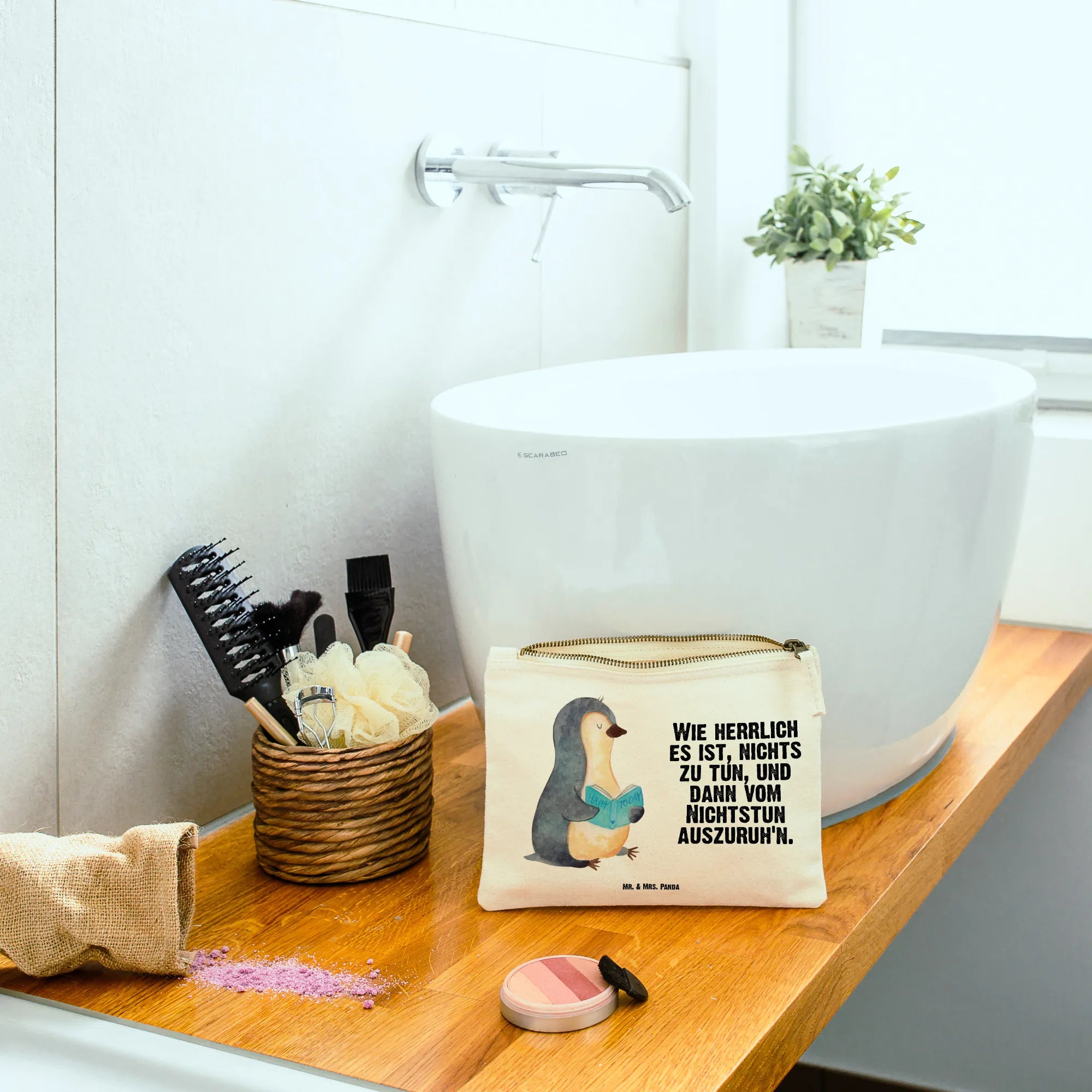 torebka na makijaż pingwin książka - Größe S Klein - z napisem