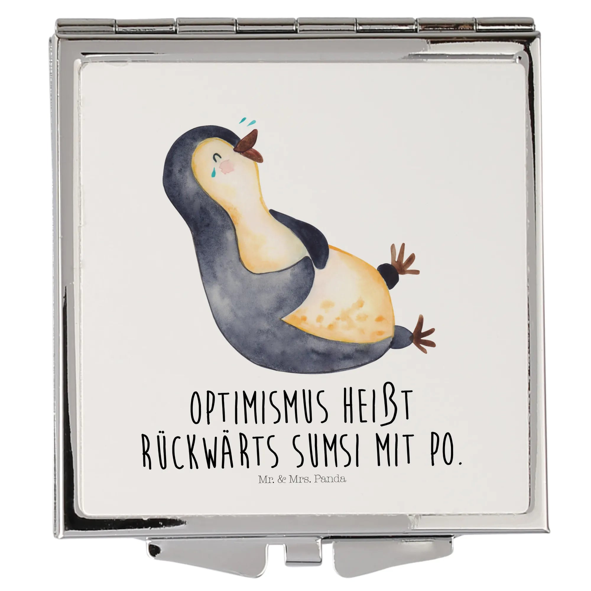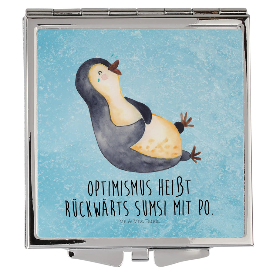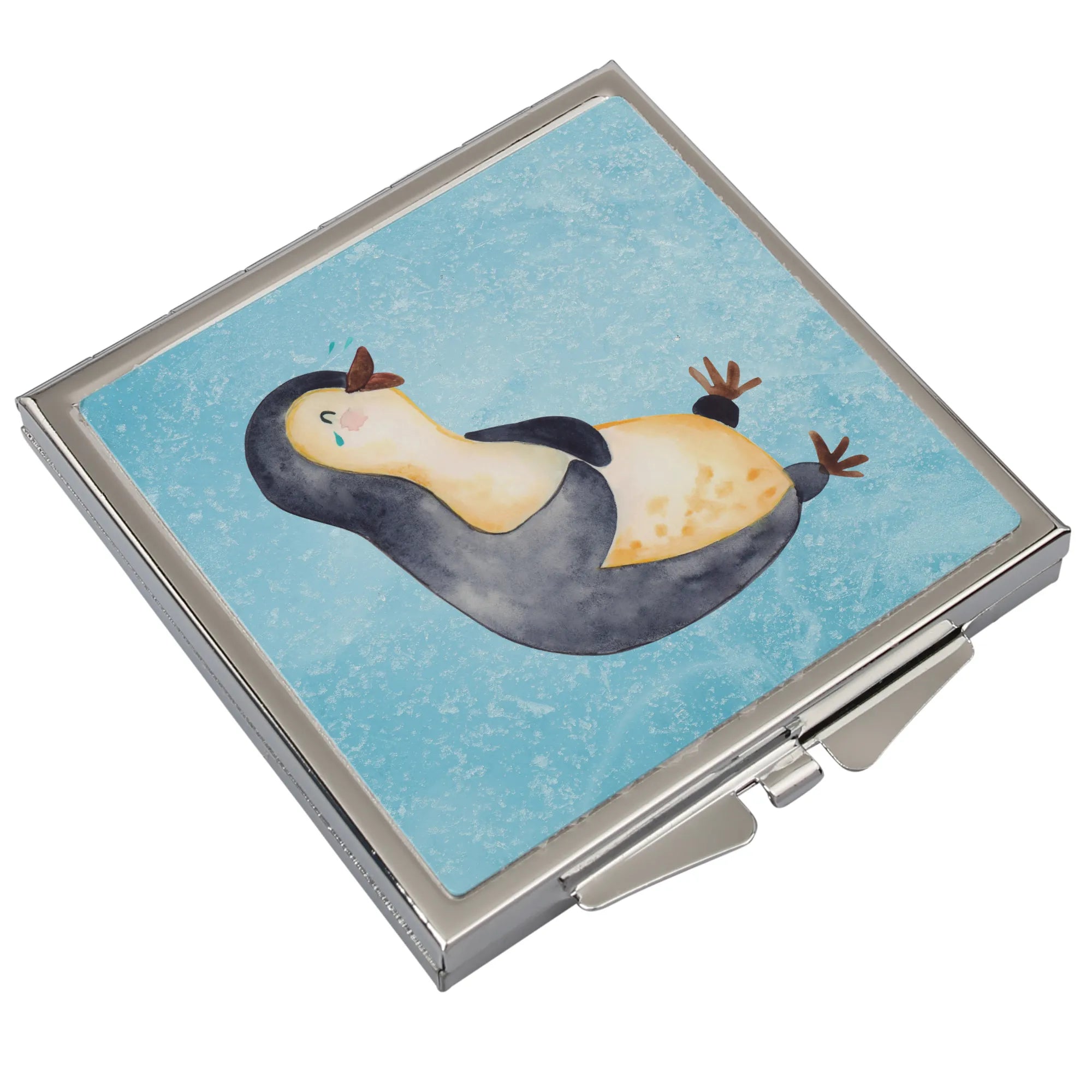 Kwadratowe lusterko do torebki pingwin Śmiech - z napisem - lodowoniebieski