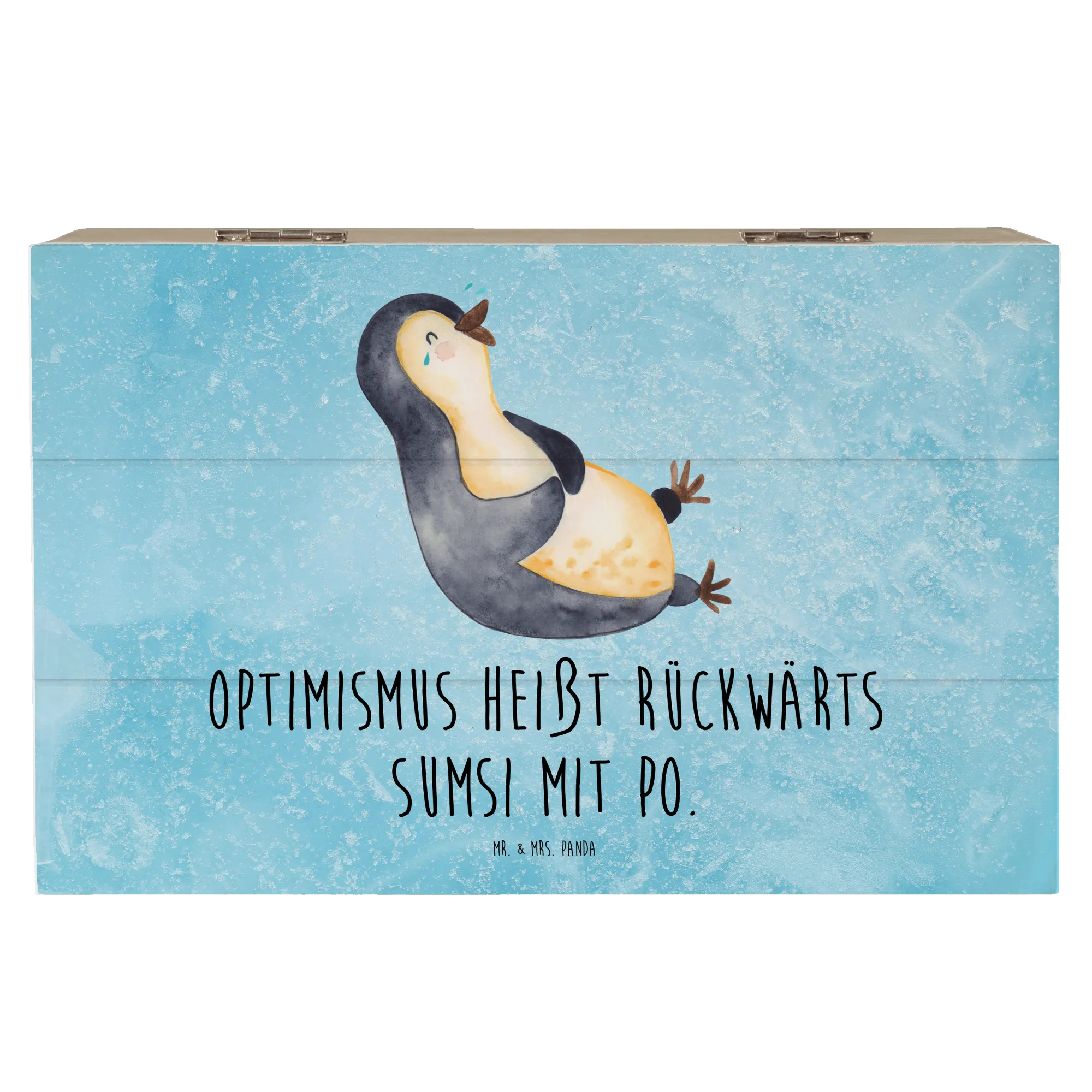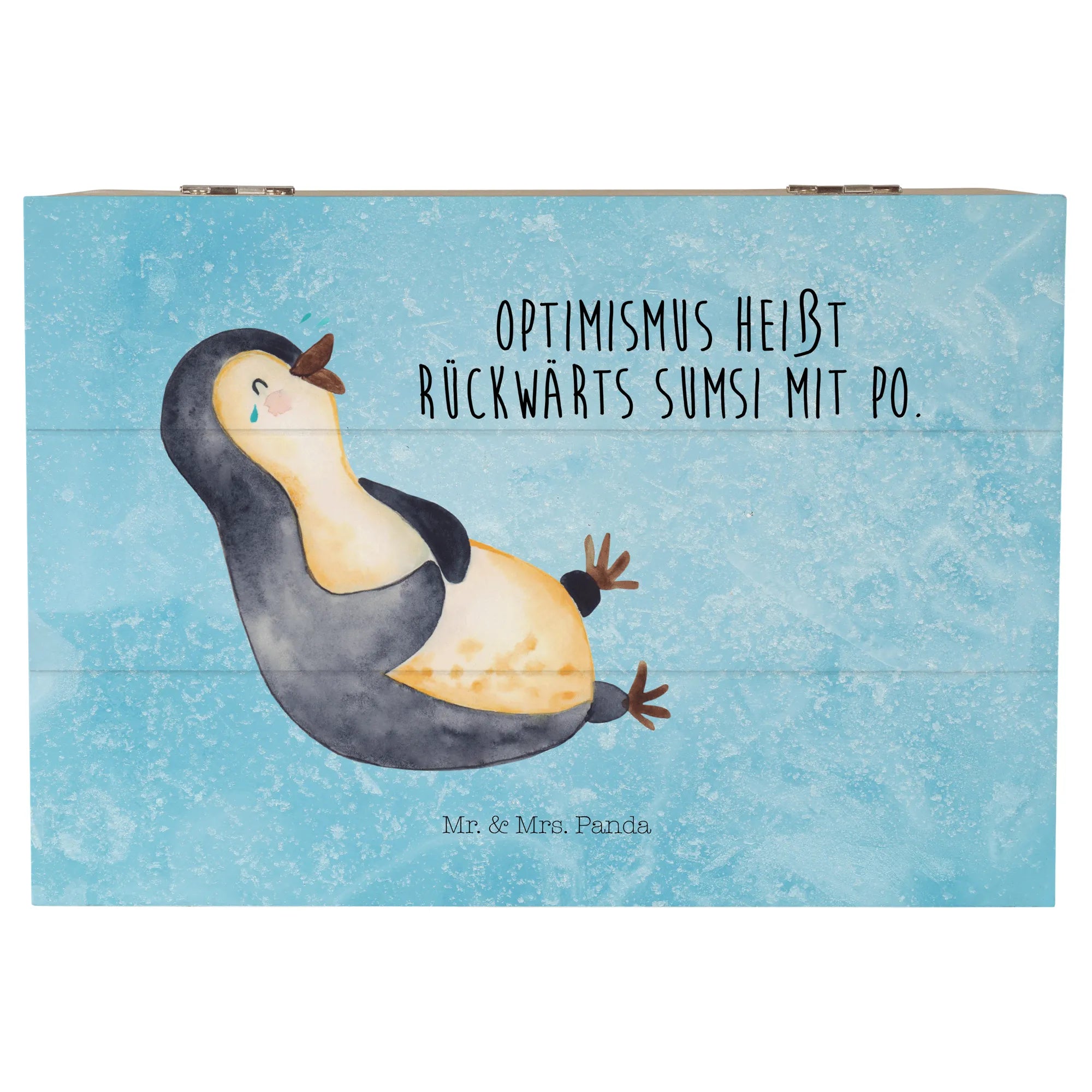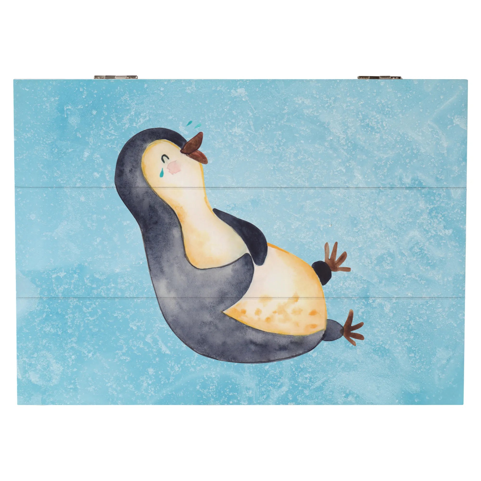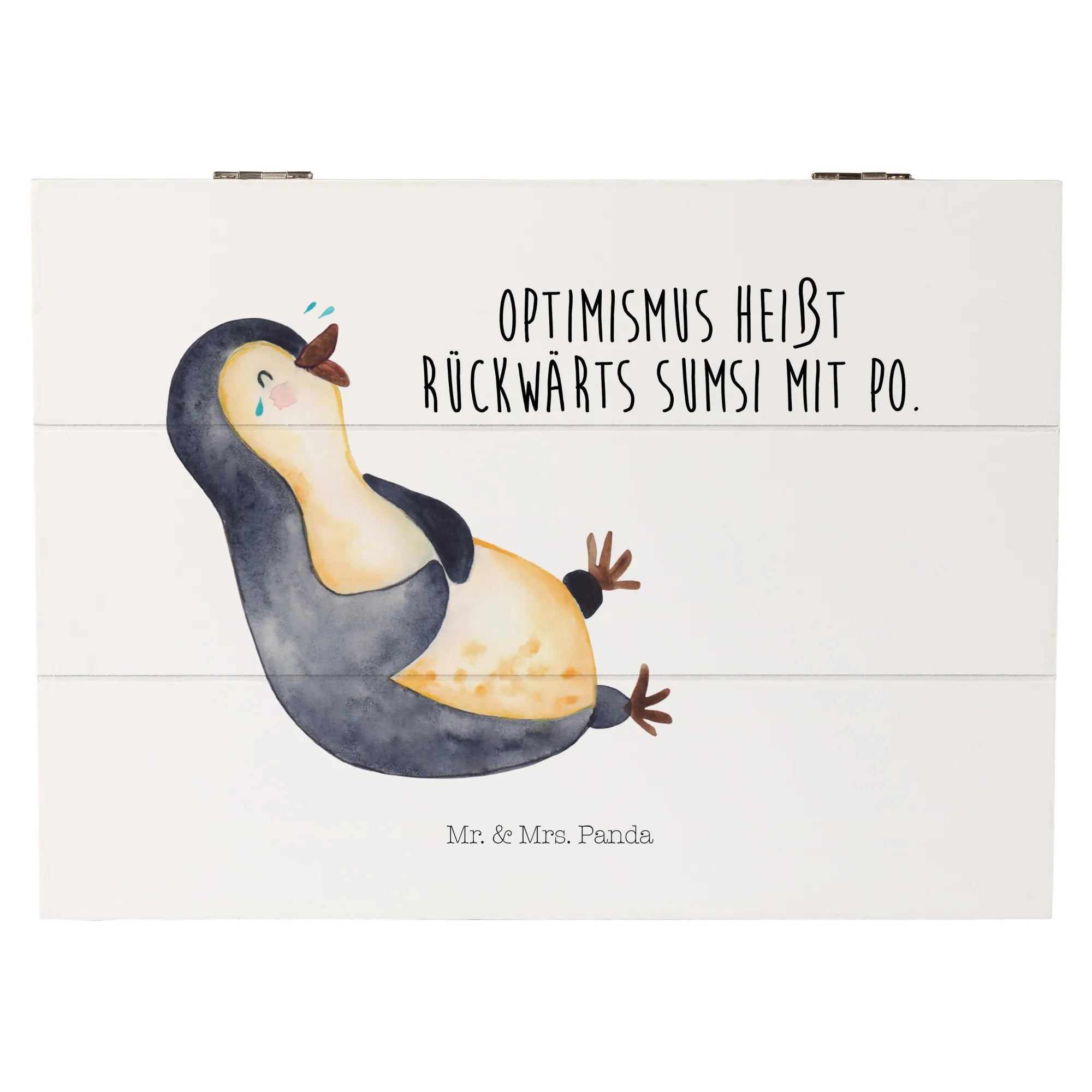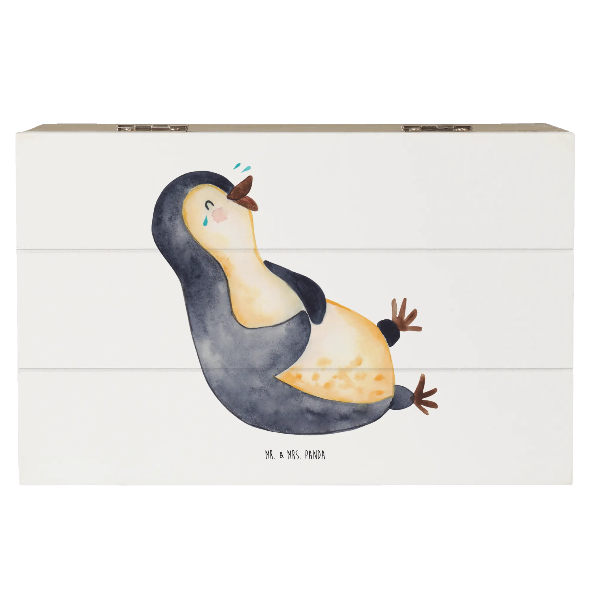 Skrzynia drewniana pingwin Śmiech - 22 x 15 cm - z napisem - biały