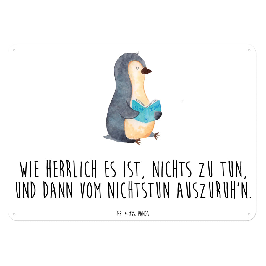 Tin sign pingwin książka - DIN A6 - Biały