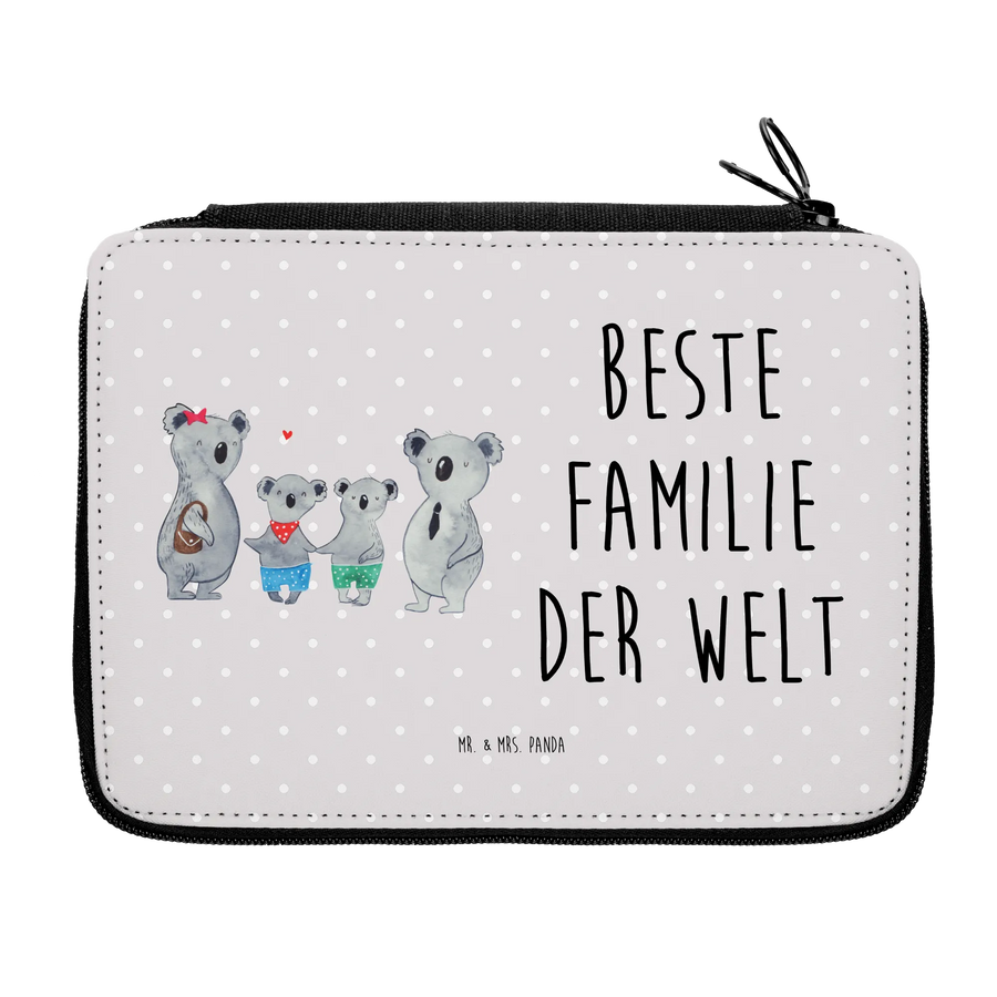 Piórnik Rodzina koali dwa - z napisem - Szary Pastel