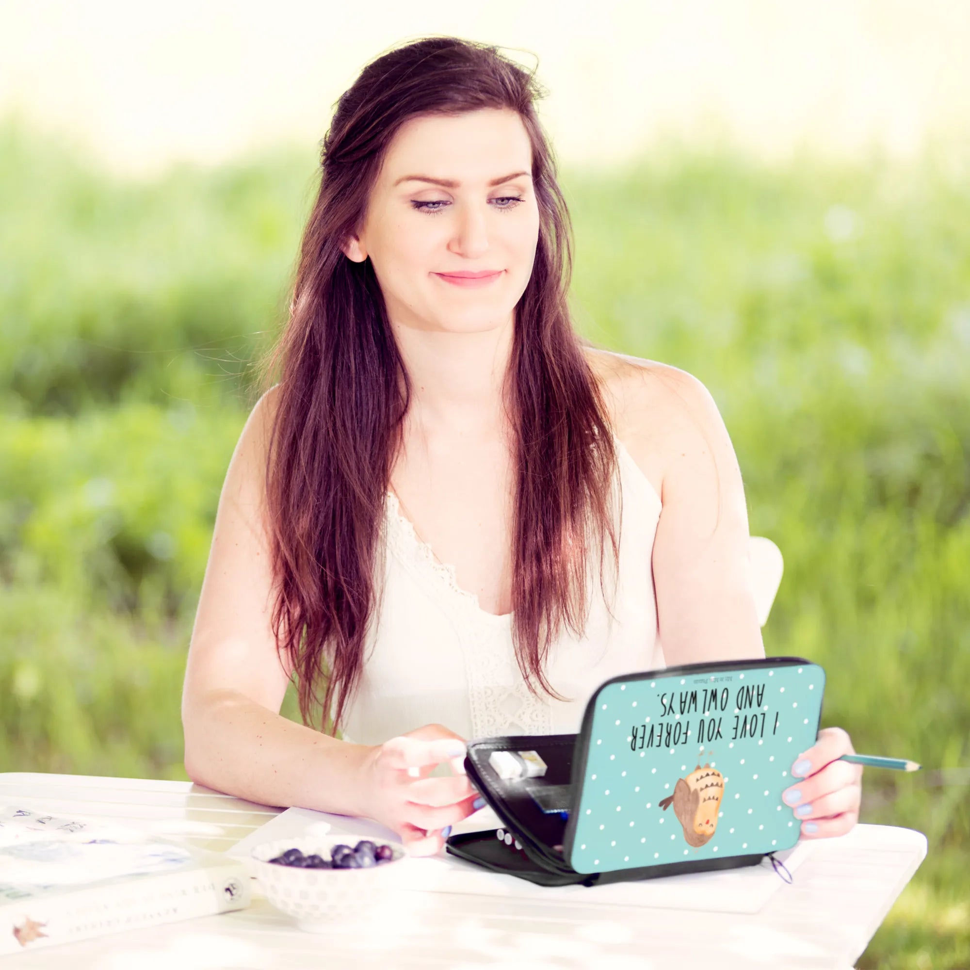Piórnik sowa zadowolona - z napisem