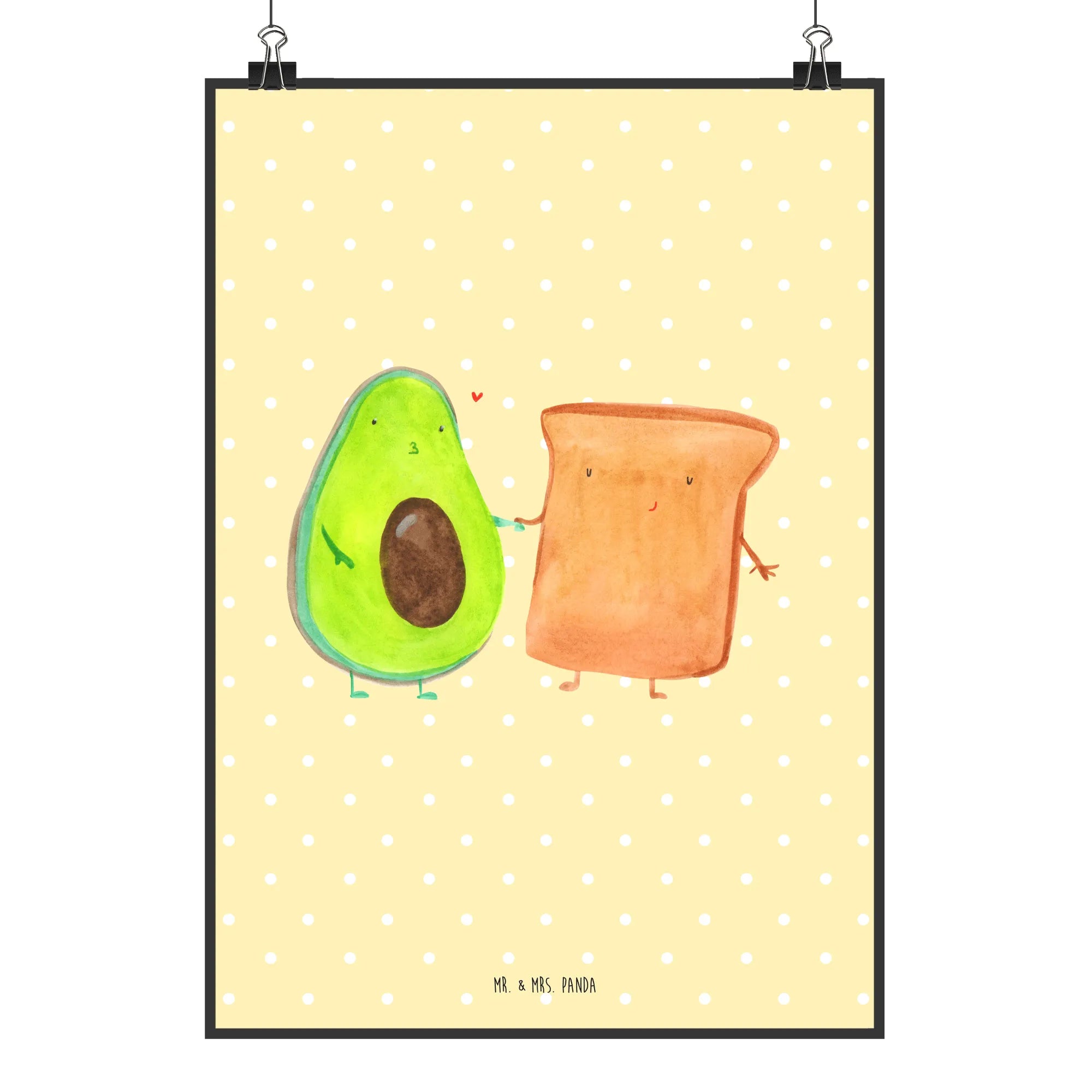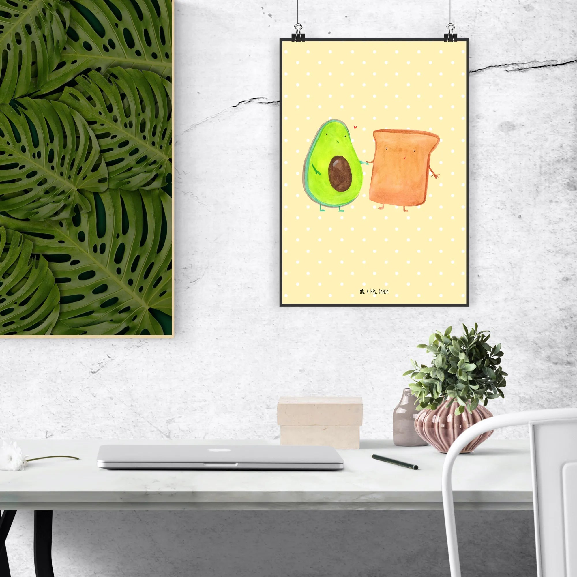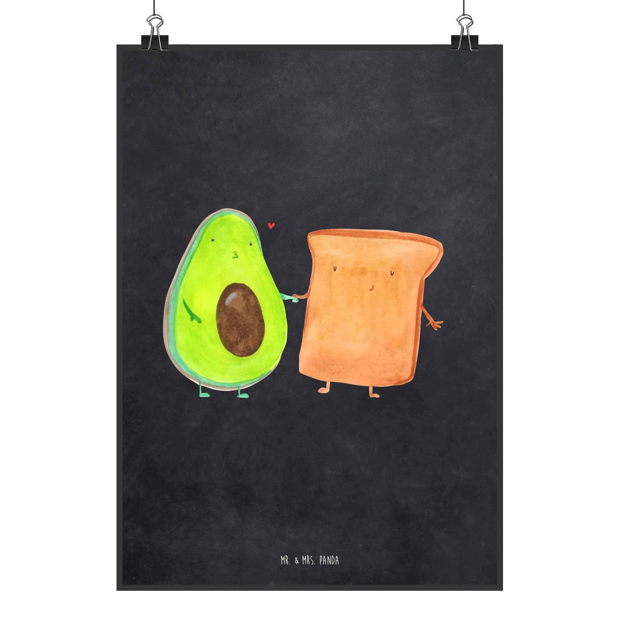 Ein wunderschönes und edles Poster von Mr. & Mrs. Panda: Das Avocado + Toast Poster mit dem liebevollen Spruch „Wir passen perfekt zusammen.“ bringt Charme und gute Laune an deine Wand. Auf einem hellen Hintergrund halten sich eine süße Avocado und ein niedlicher Toast an den Händen – ein Motiv, das sofort ein Lächeln schenkt.