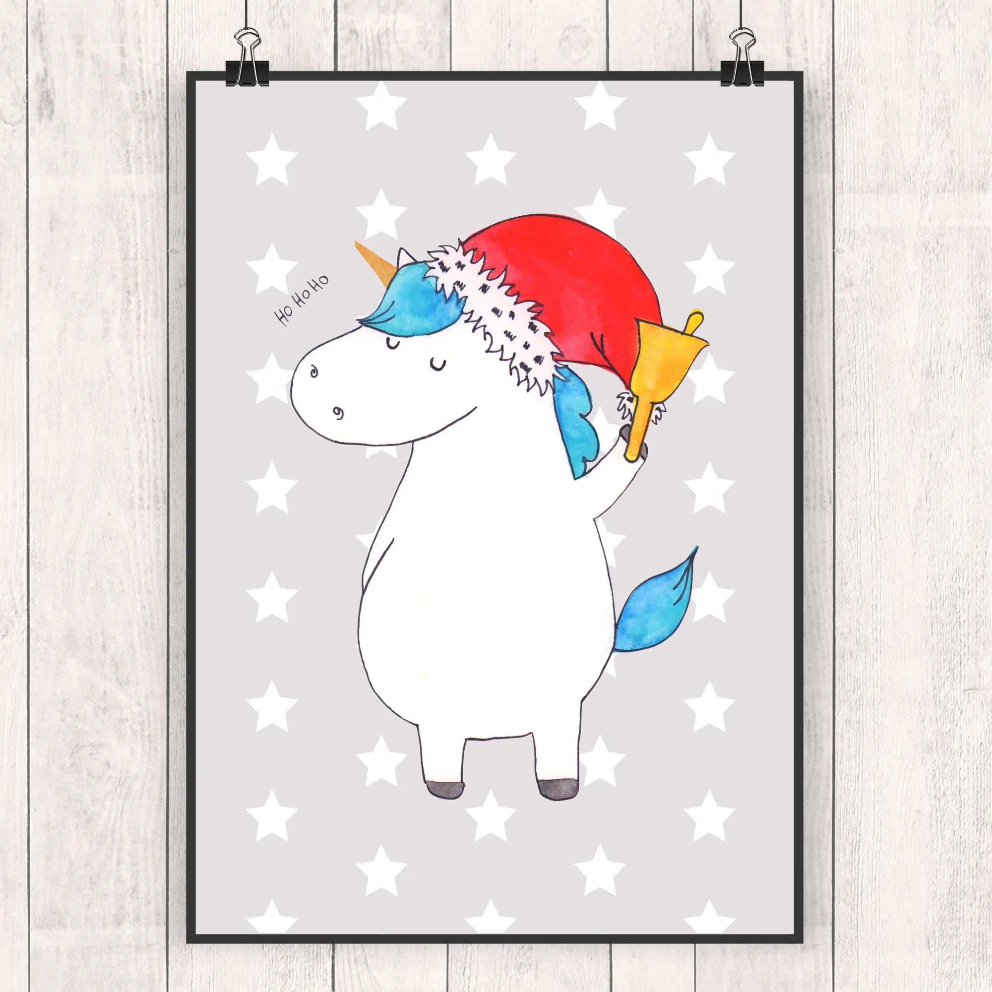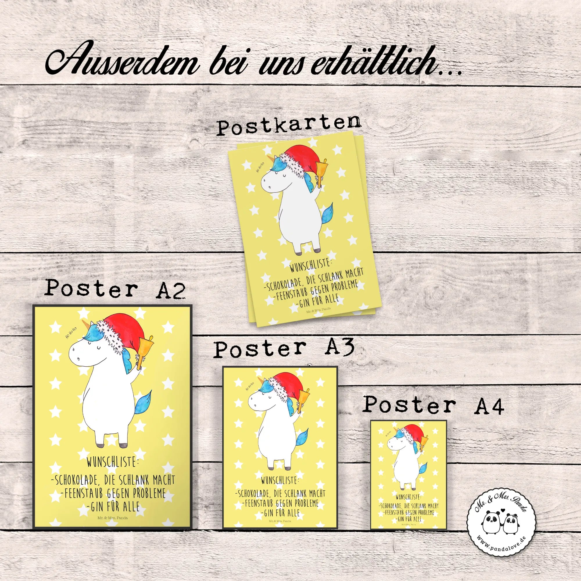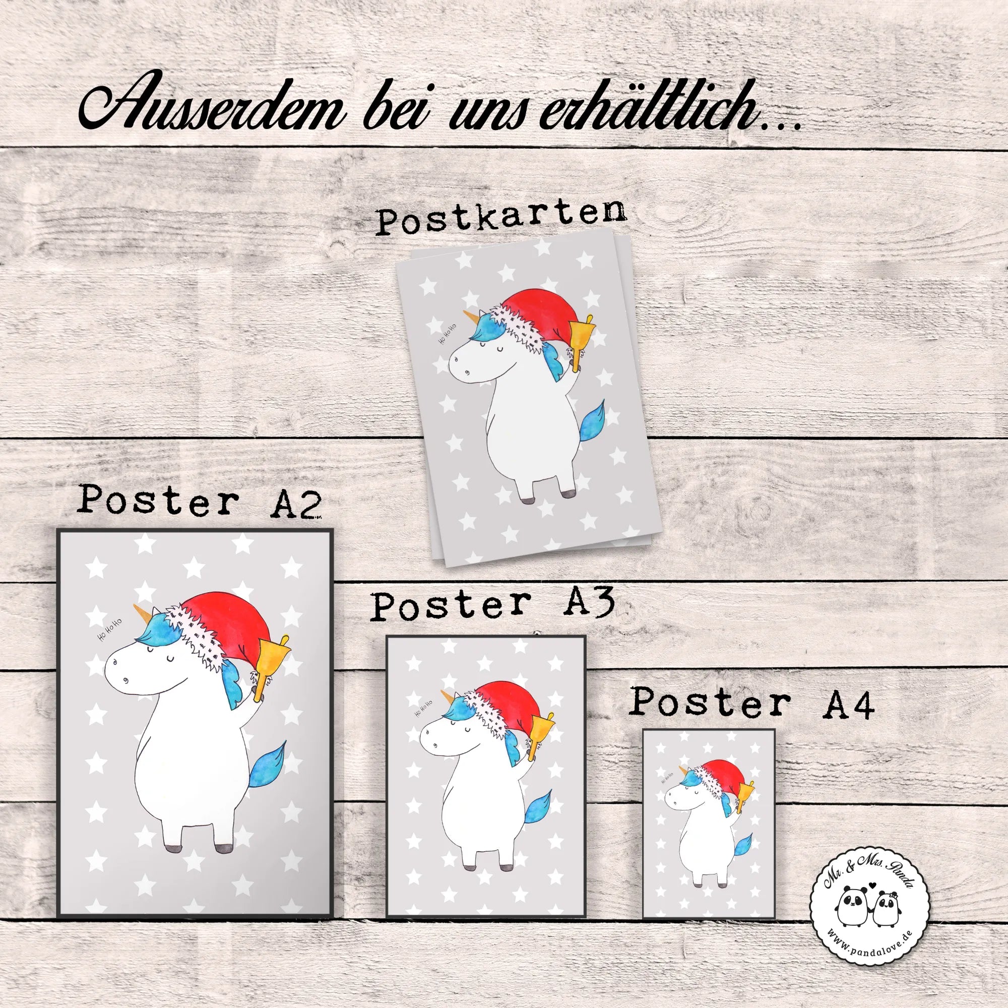Hol Dir Weihnachten mit Einhorn-Magie nach Hause: Ein liebevolles Motiv, handgezeichnete Illustration und eine festliche Atmosphäre machen dieses Poster zu einem wundervollen Geschenk und Blickfang. Mr. & Mrs. Panda wünschen frohe, magische Festtage!