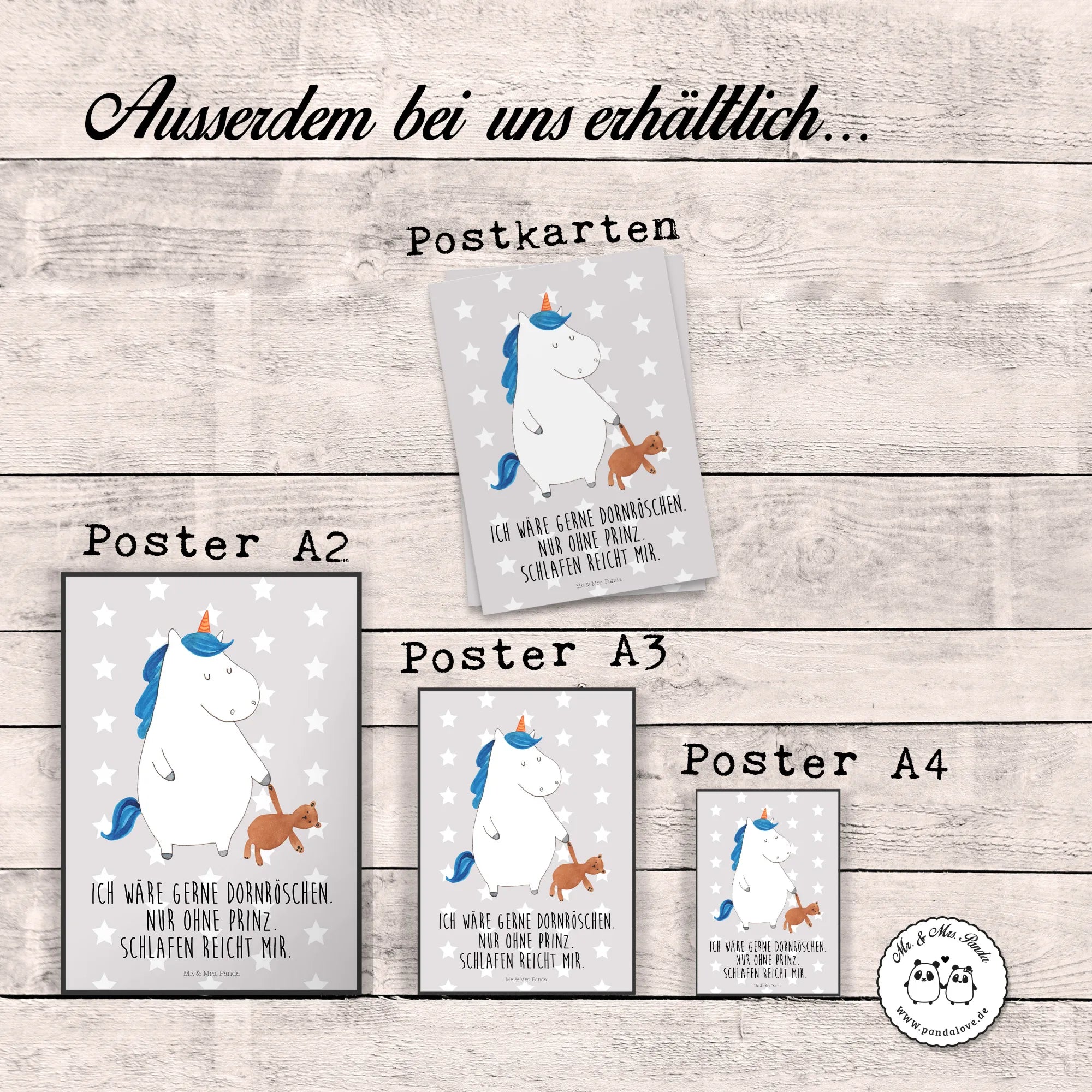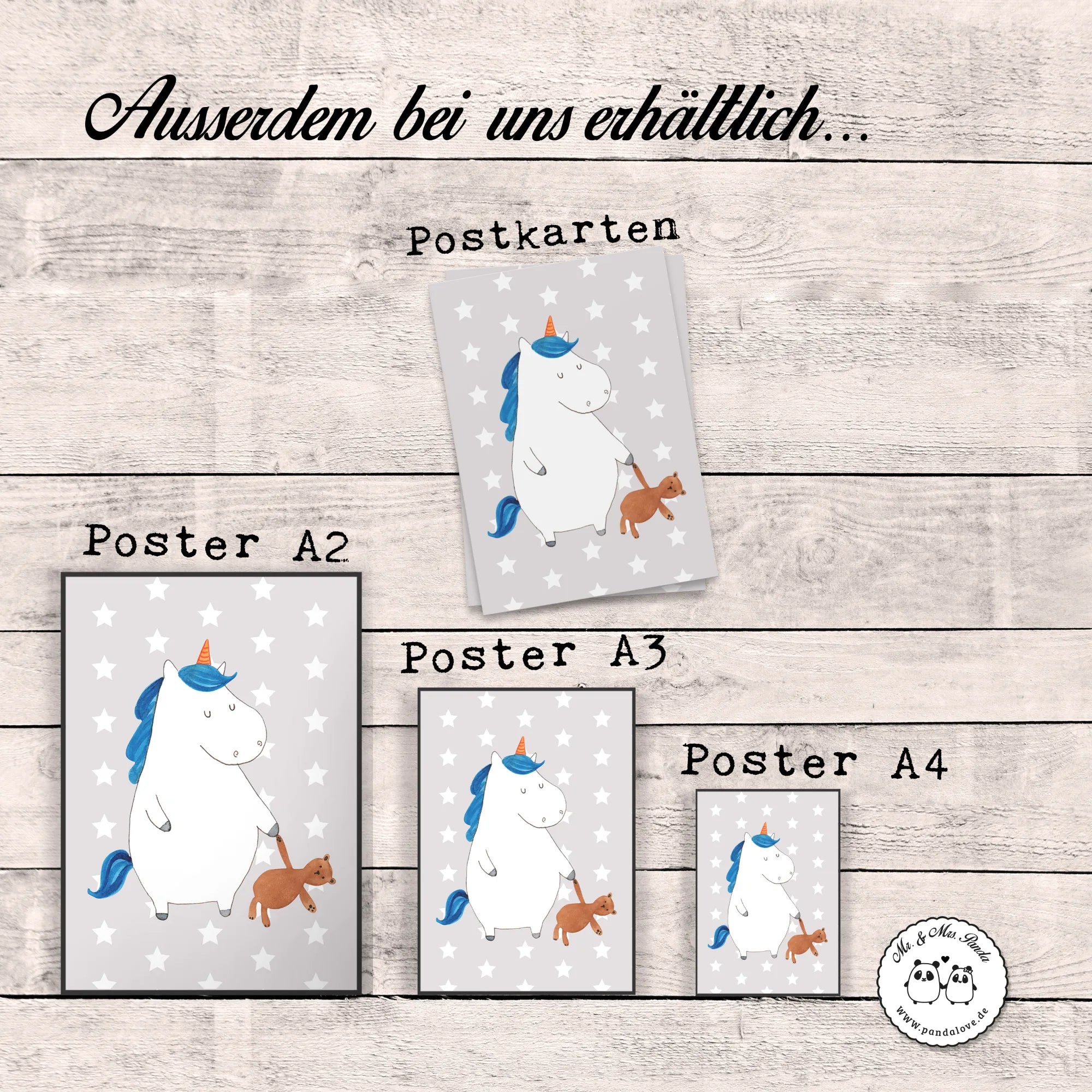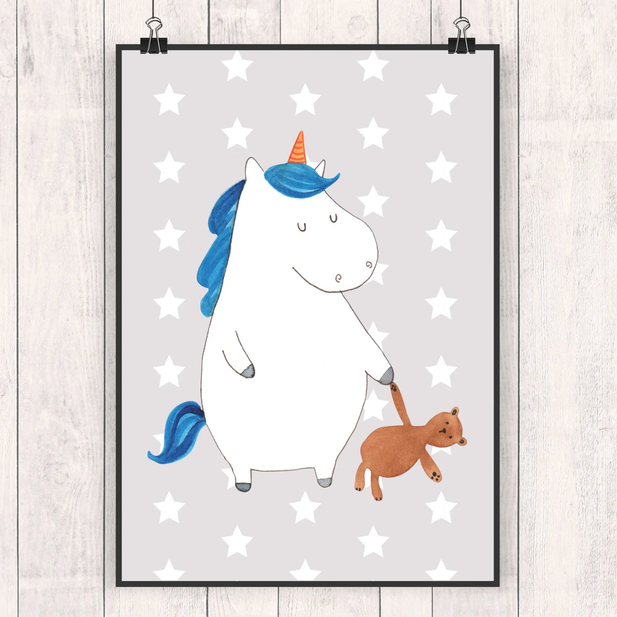 Plakat Jednorożec Miś - DIN A0 - z napisem - biały