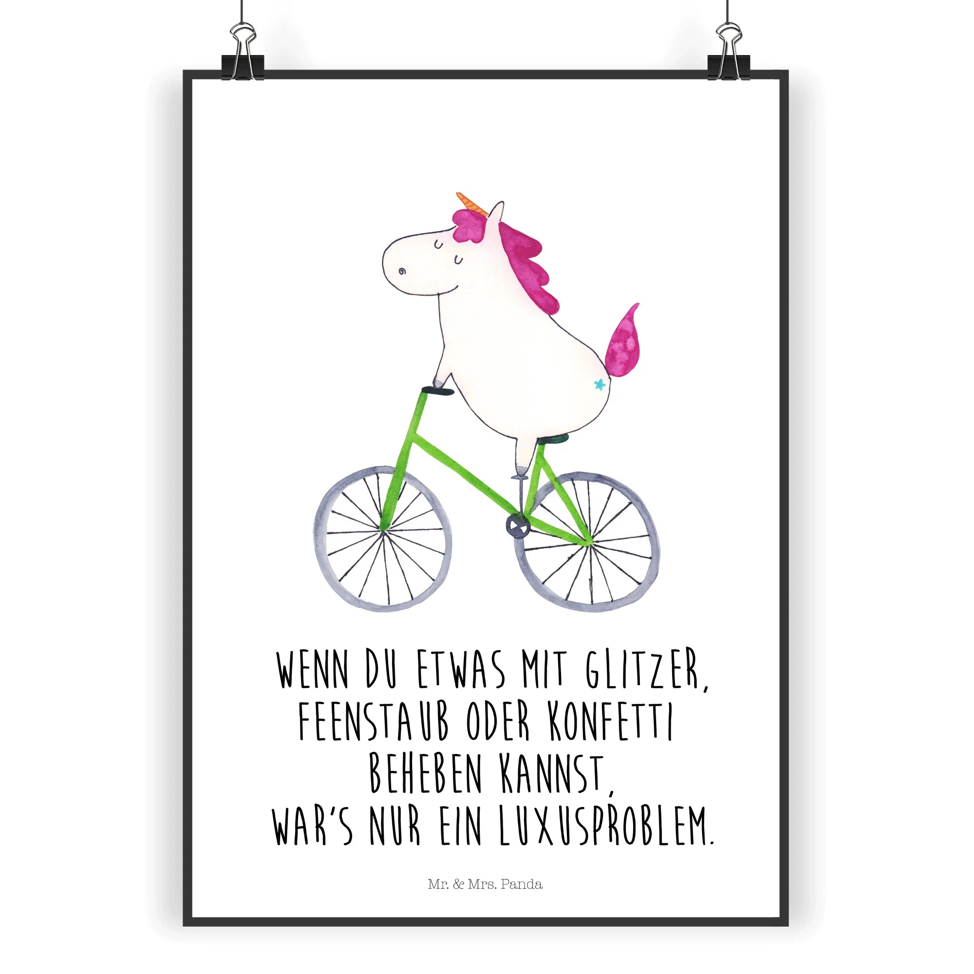 Plakat Jednorożec Rowerzysta - DIN A5 - z napisem - biały