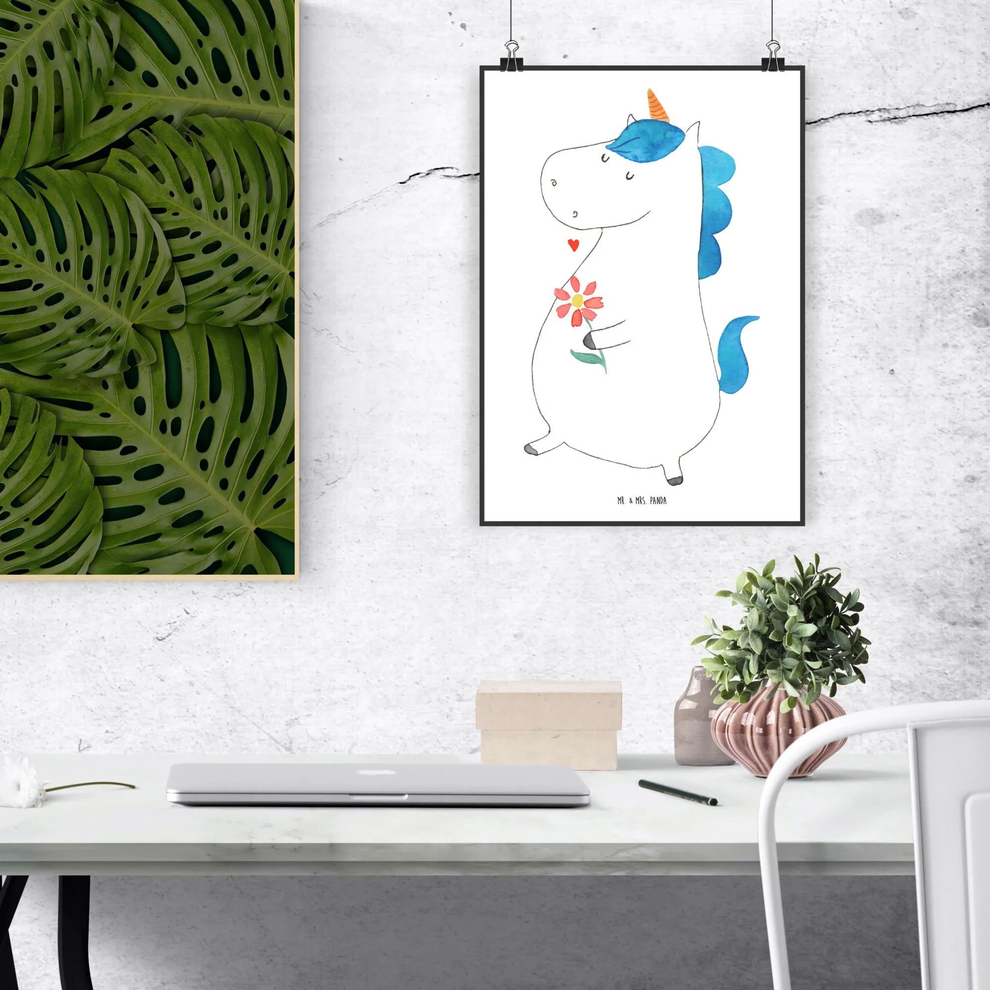 Plakat Jednorożec spacer - DIN A0 - z napisem - Biały