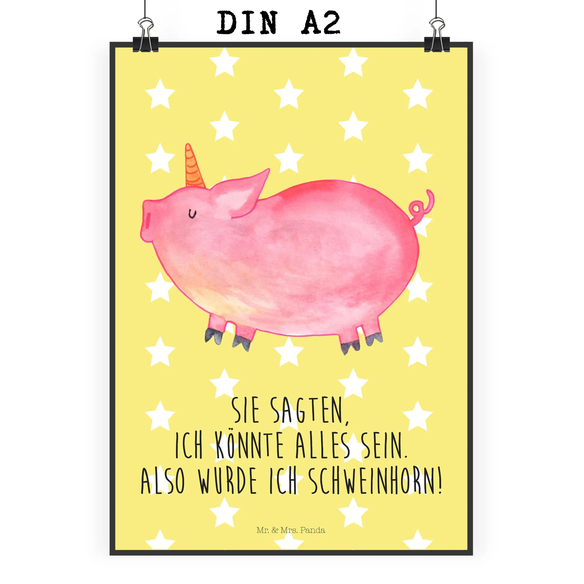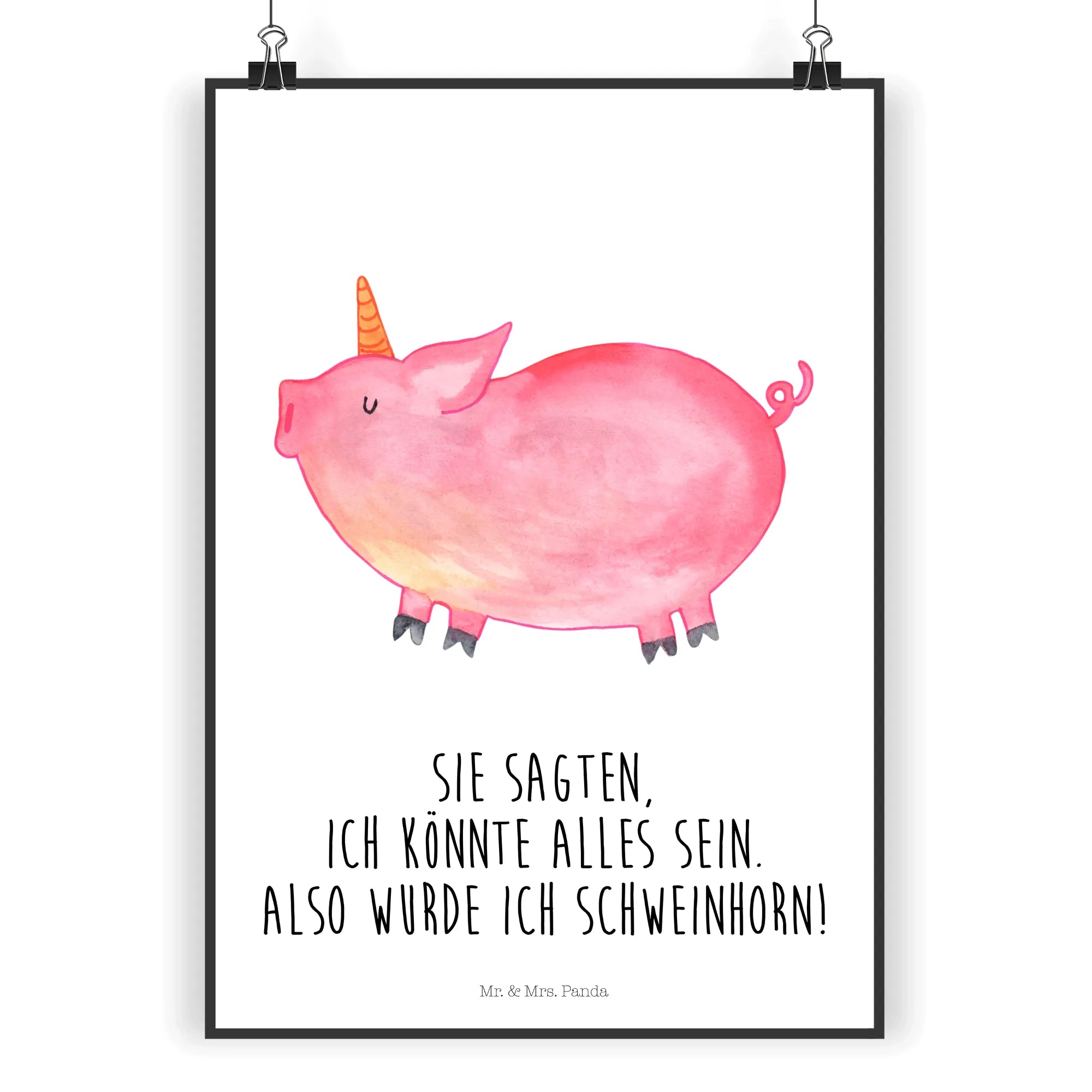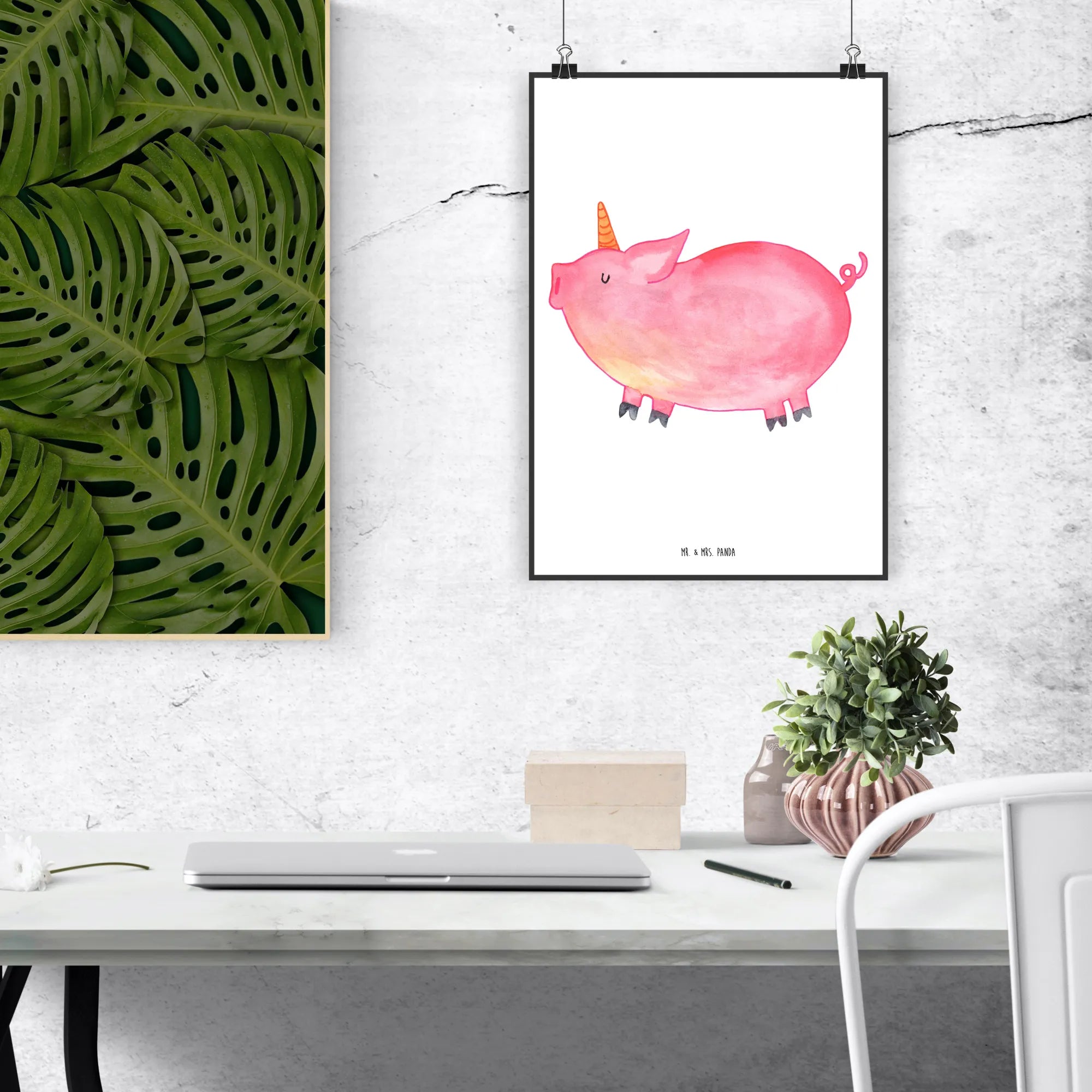 Plakat jednorożec świnia - DIN A0 - z napisem - biały