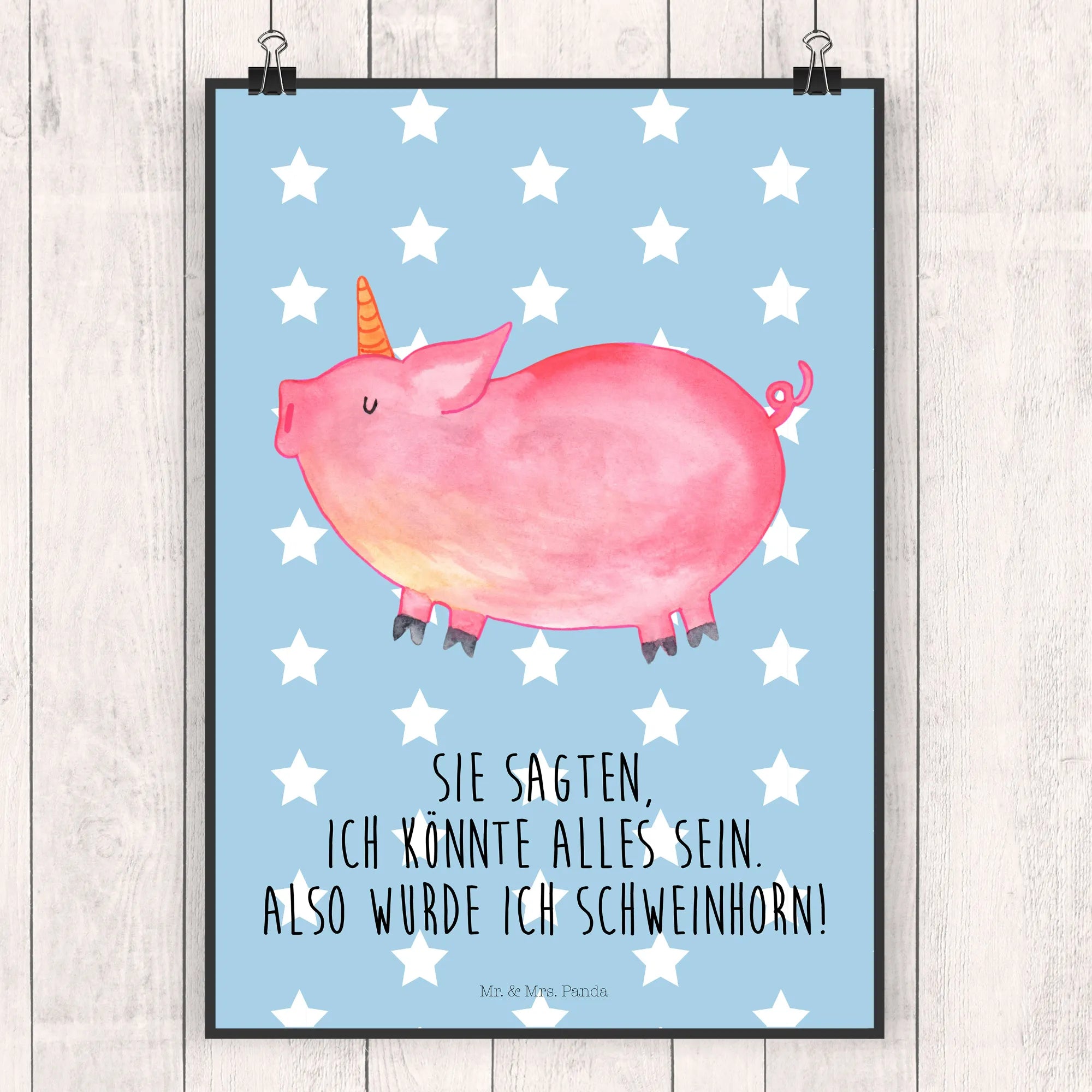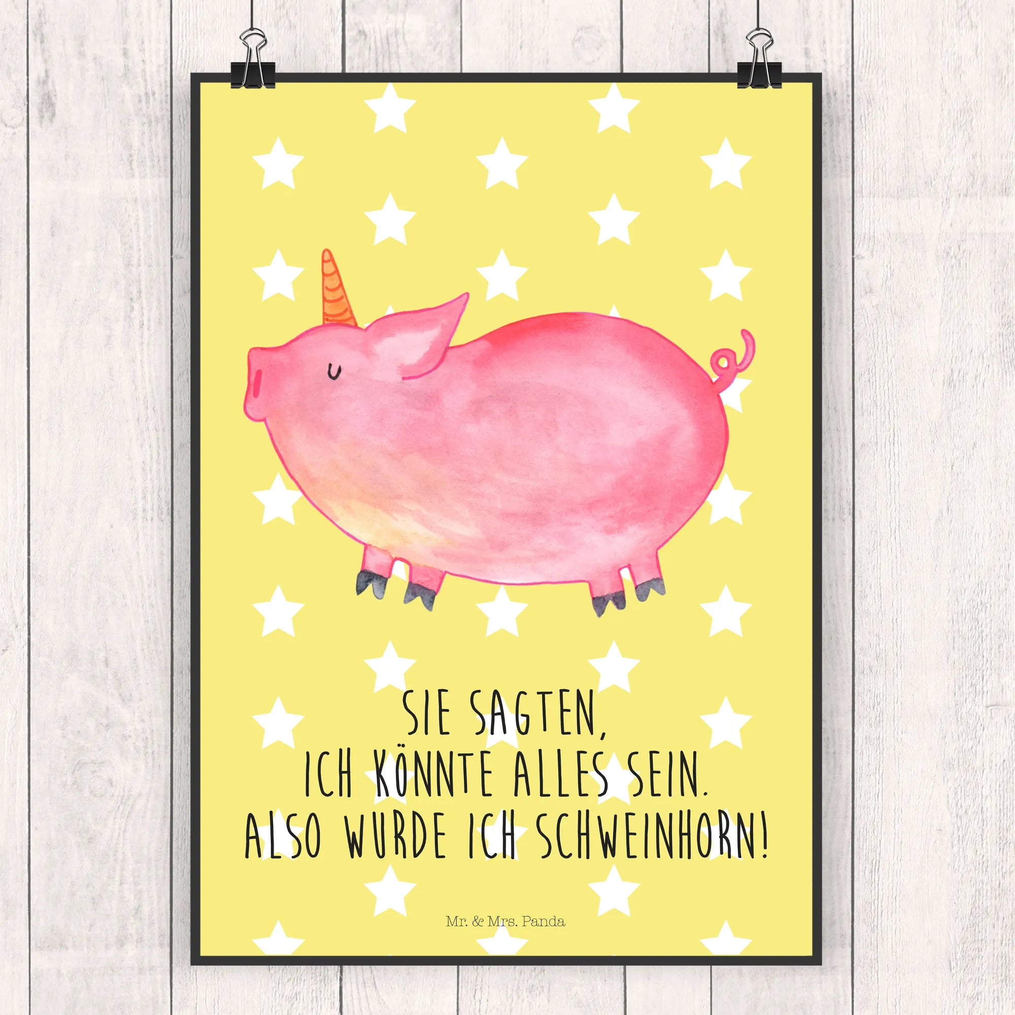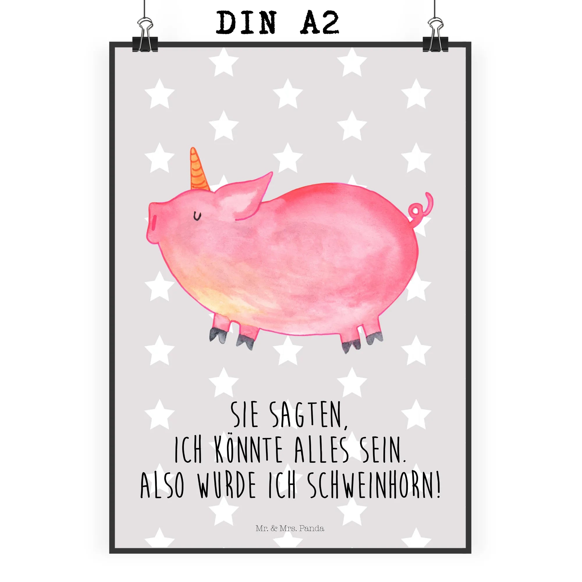 Plakat jednorożec świnia - DIN A0 - z napisem - biały