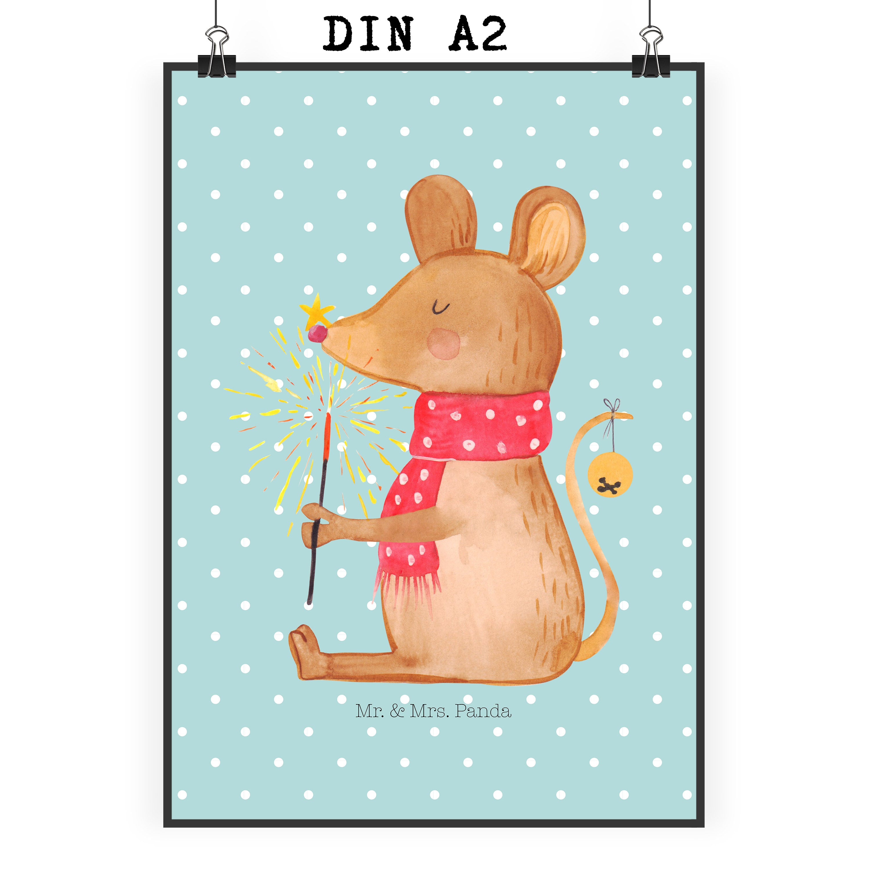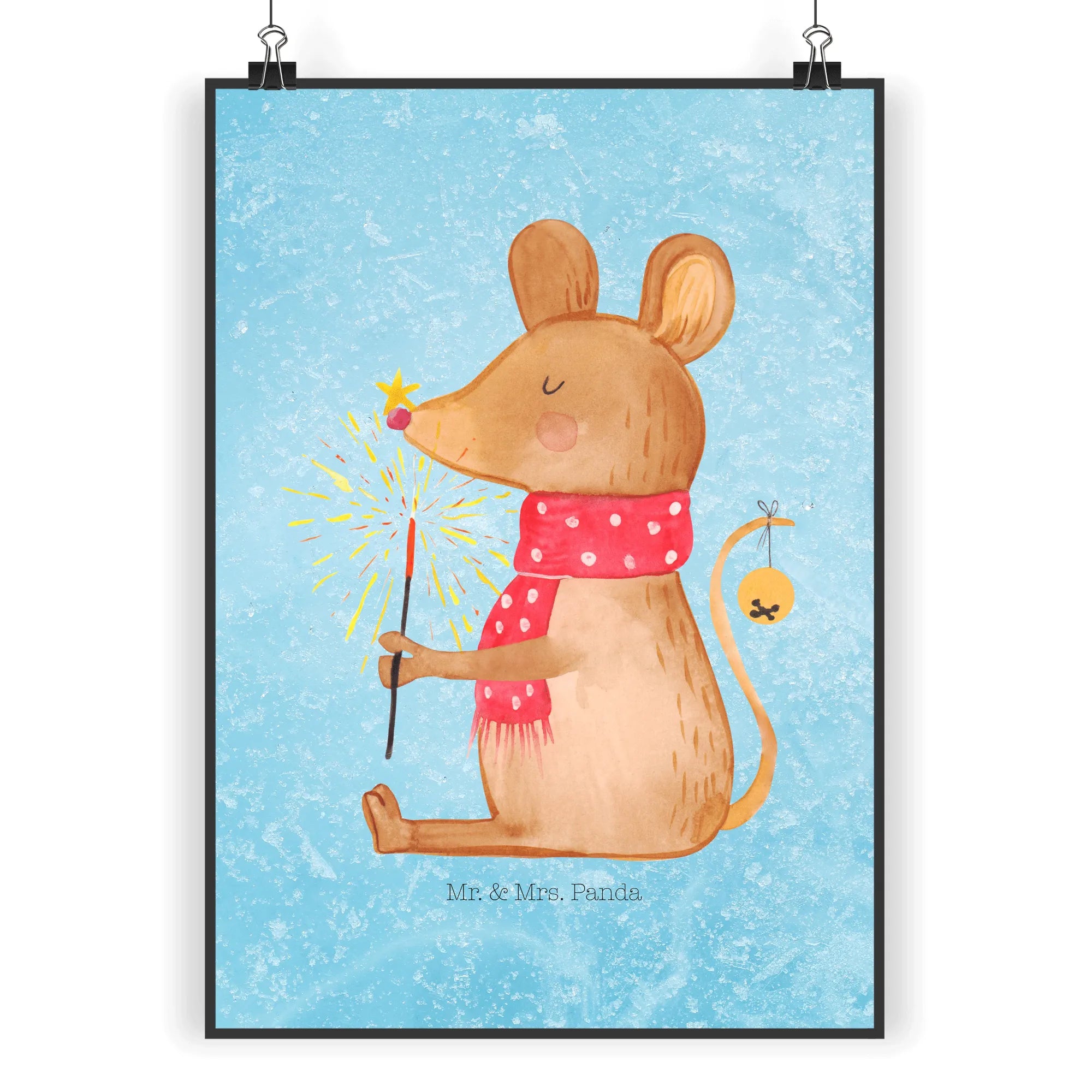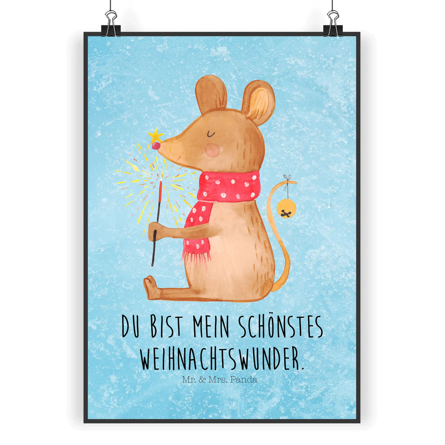 Plakat mysz Boże Narodzenie - DIN A0 - z napisem - lodowoniebieski