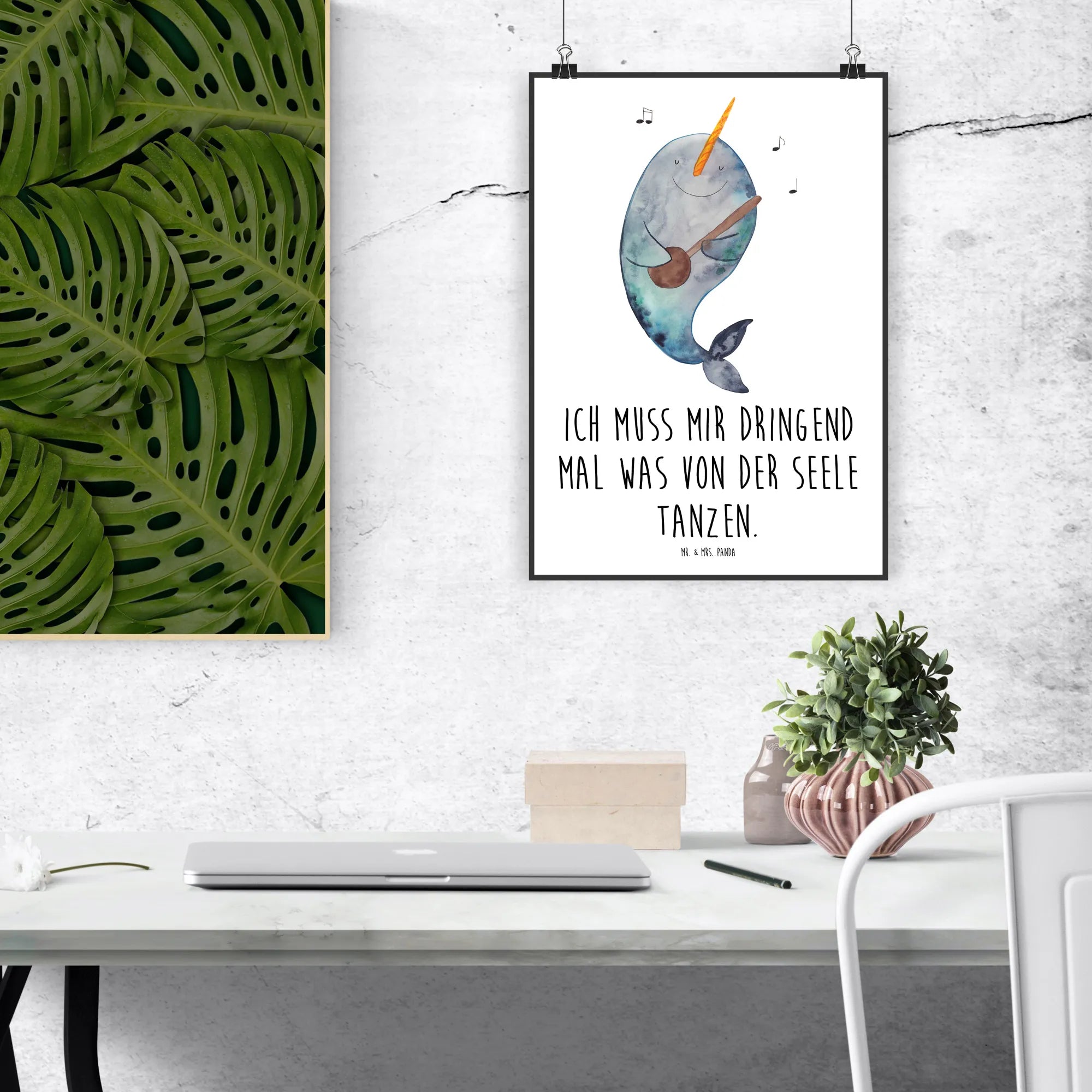 Plakat narwal Gitara - DIN A0 - z napisem - Oceanblue
