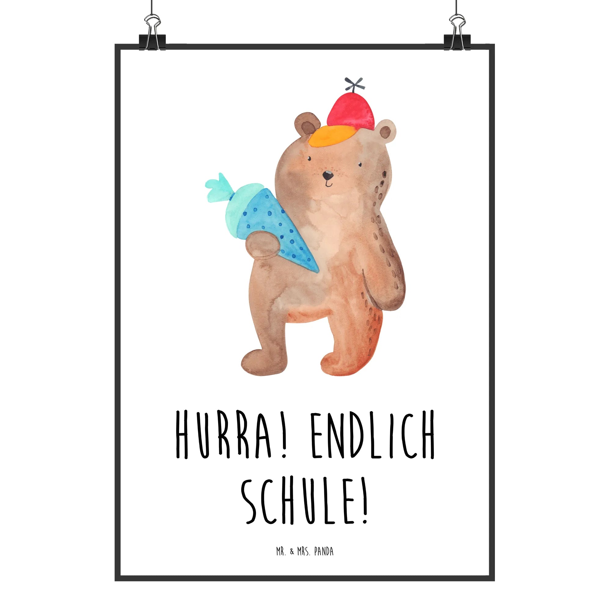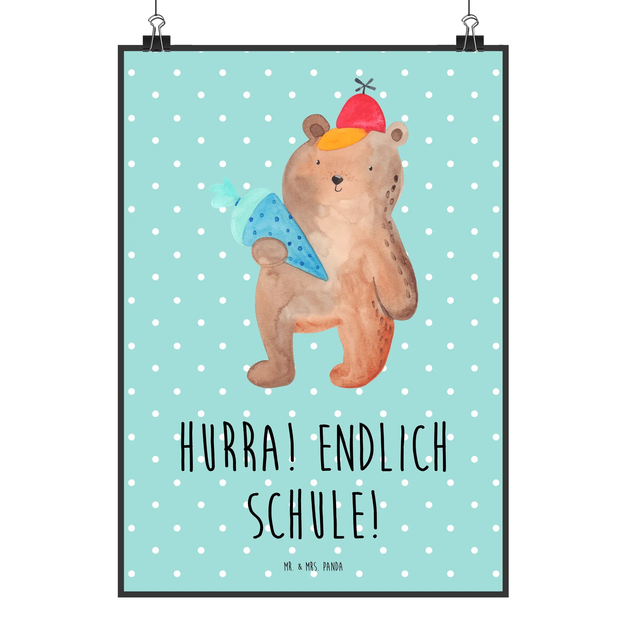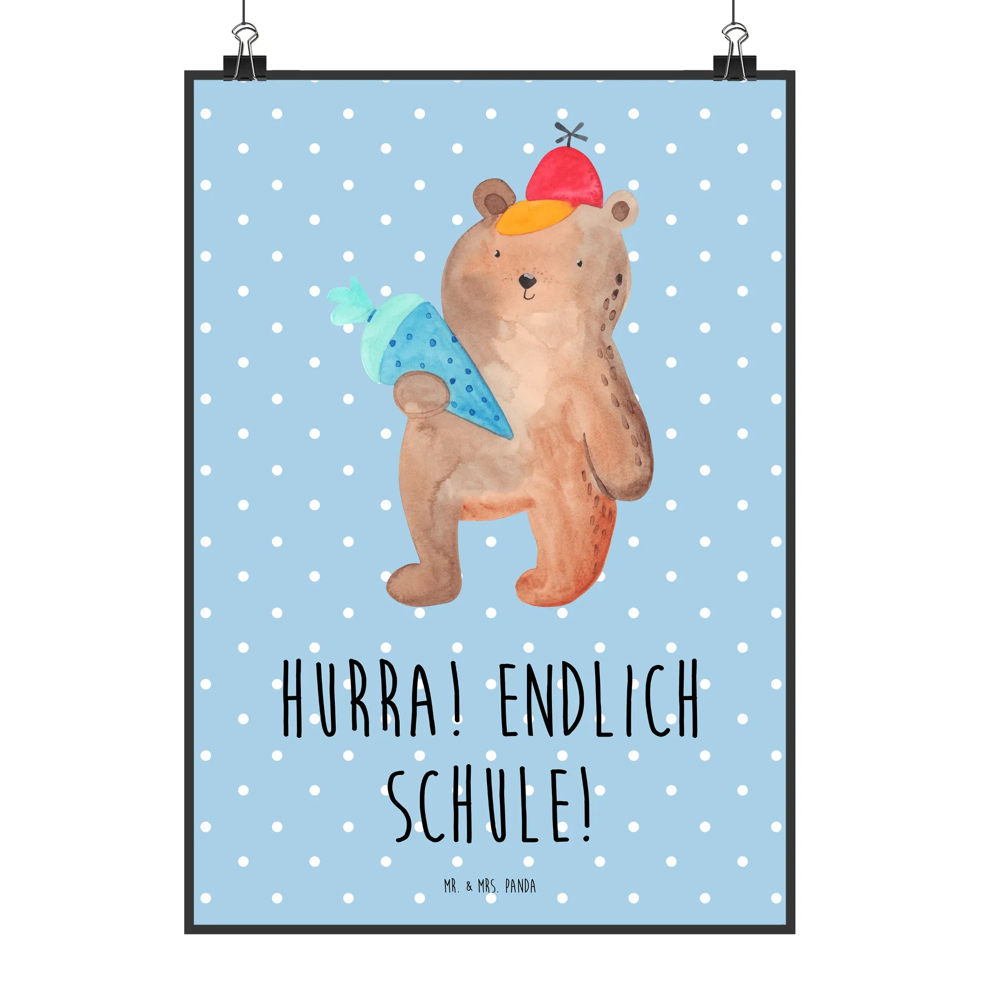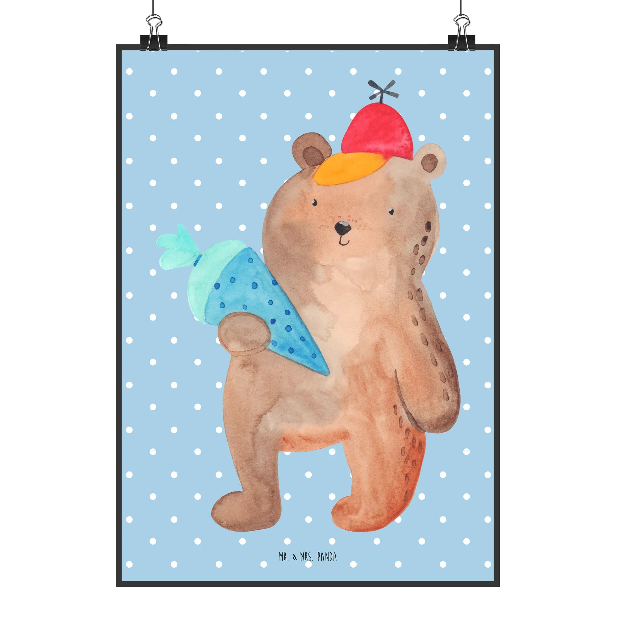 Plakat Niedźwiedź Torebka szkolna - DIN A0 - z napisem - Niebieski Pastel