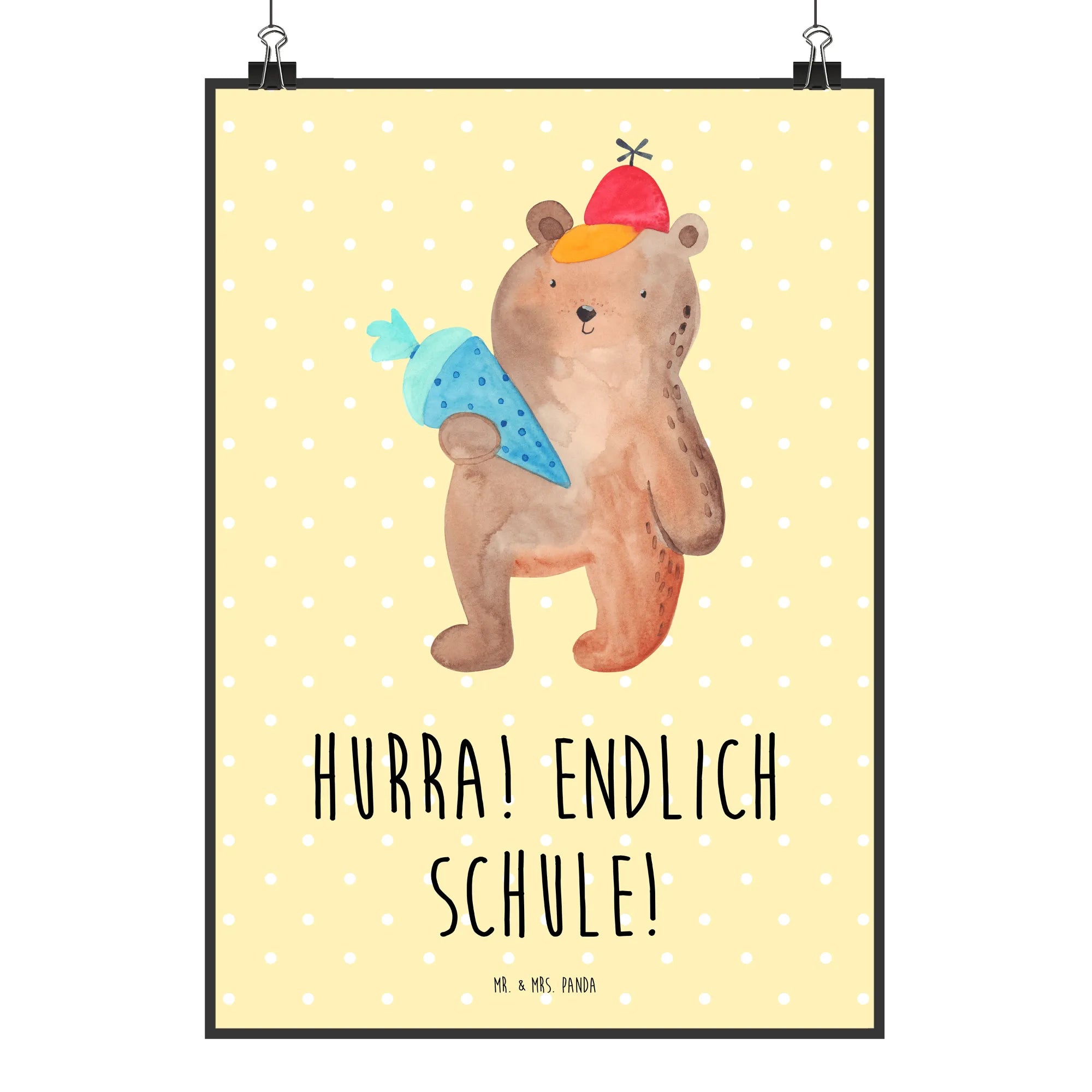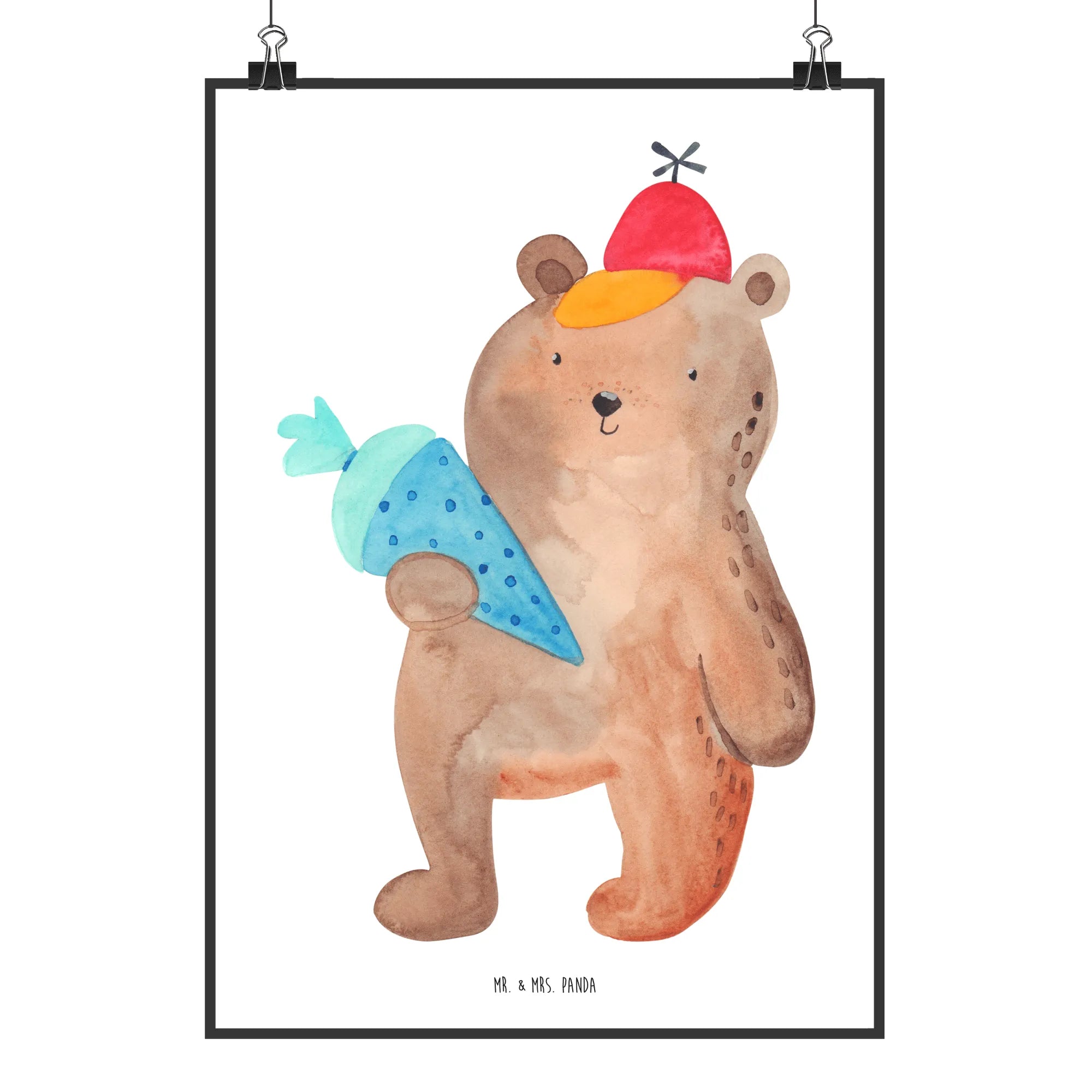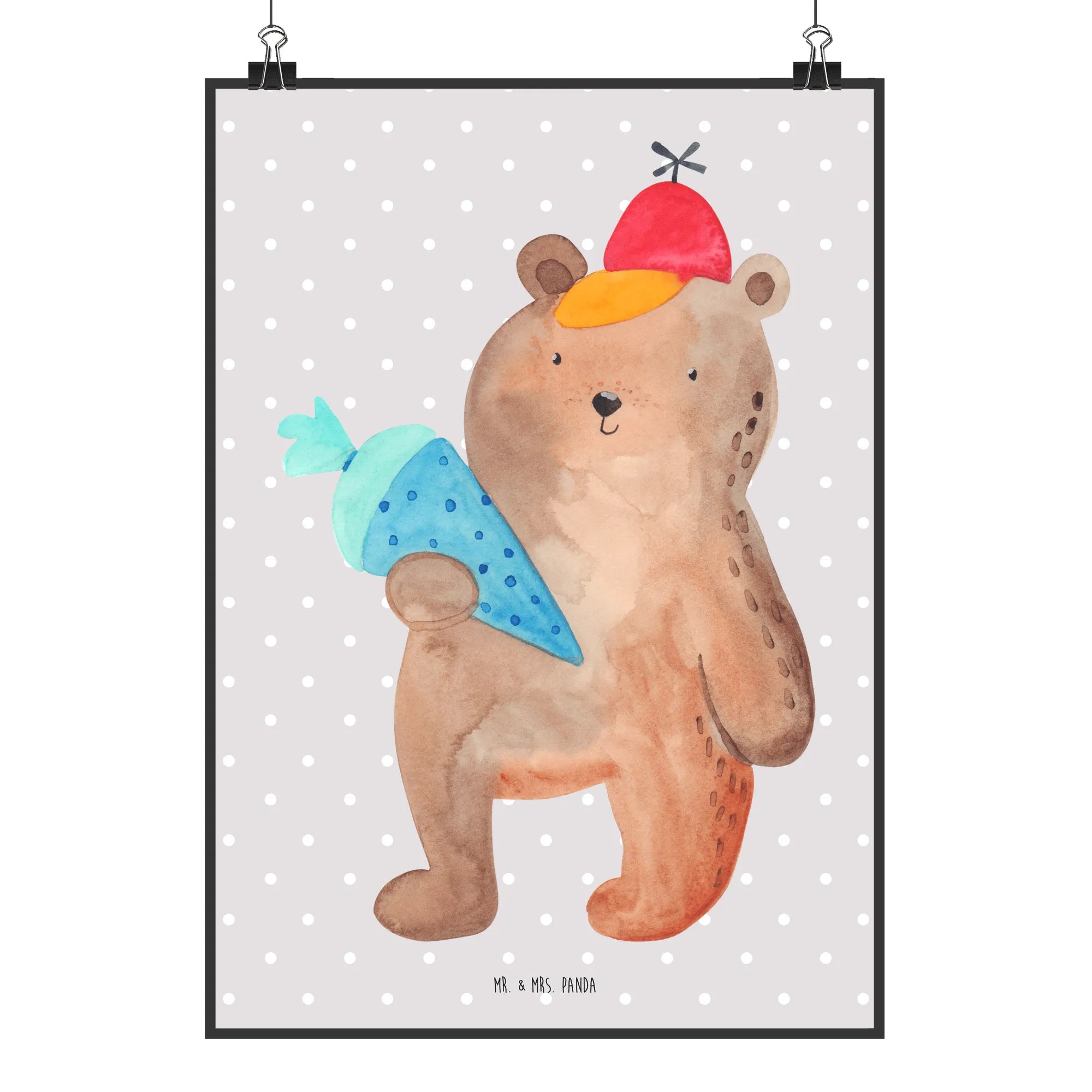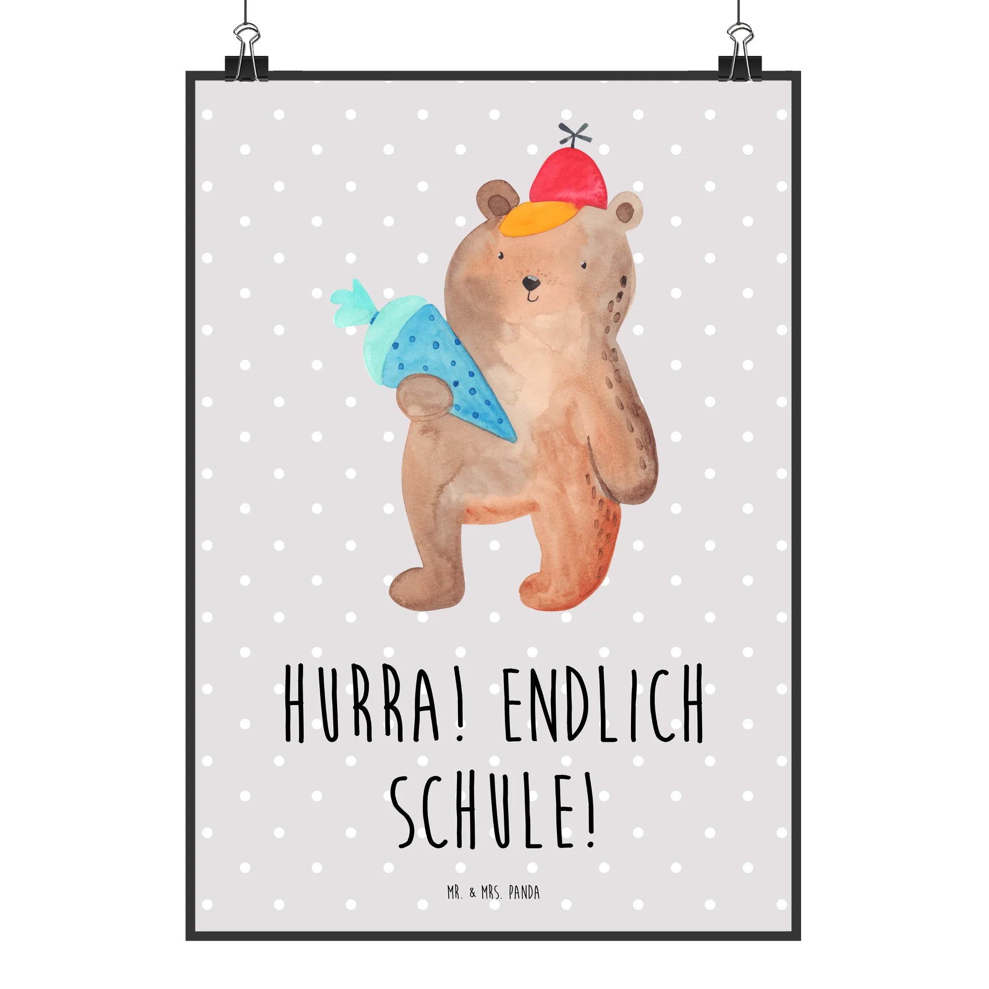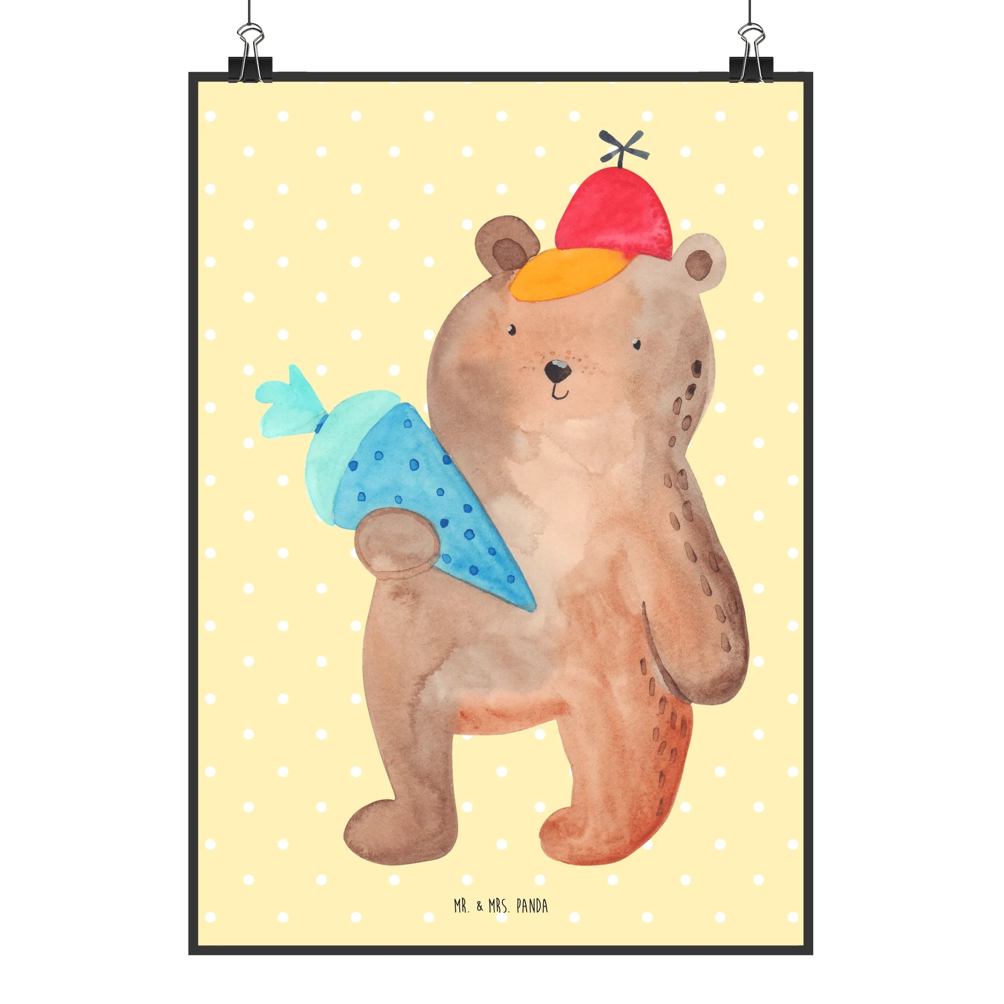 Plakat Niedźwiedź Torebka szkolna - DIN A0 - z napisem - Niebieski Pastel