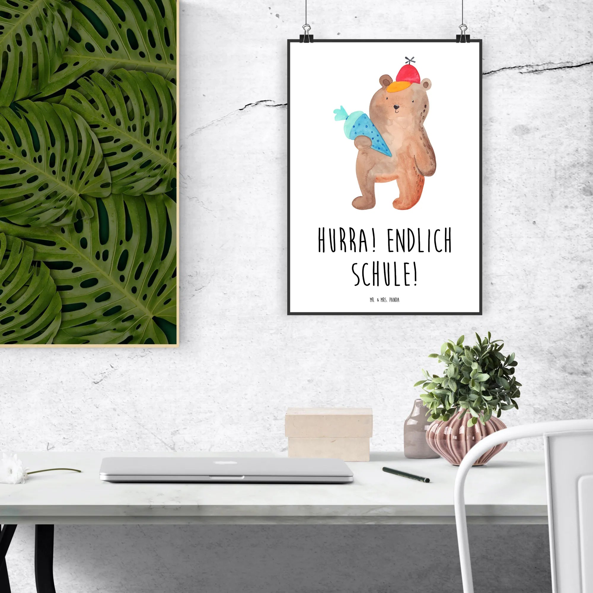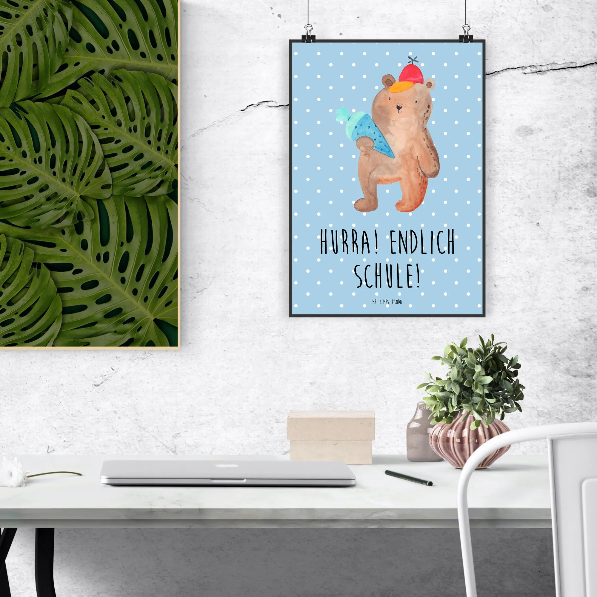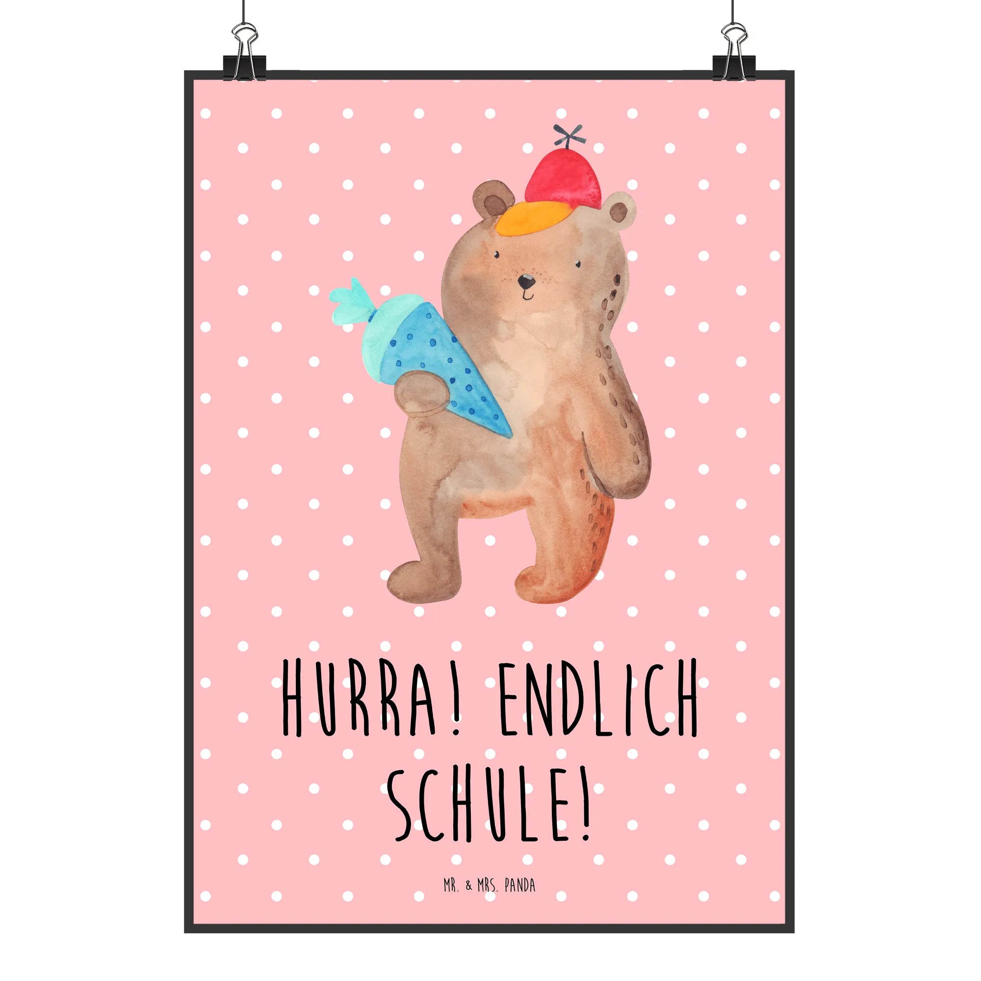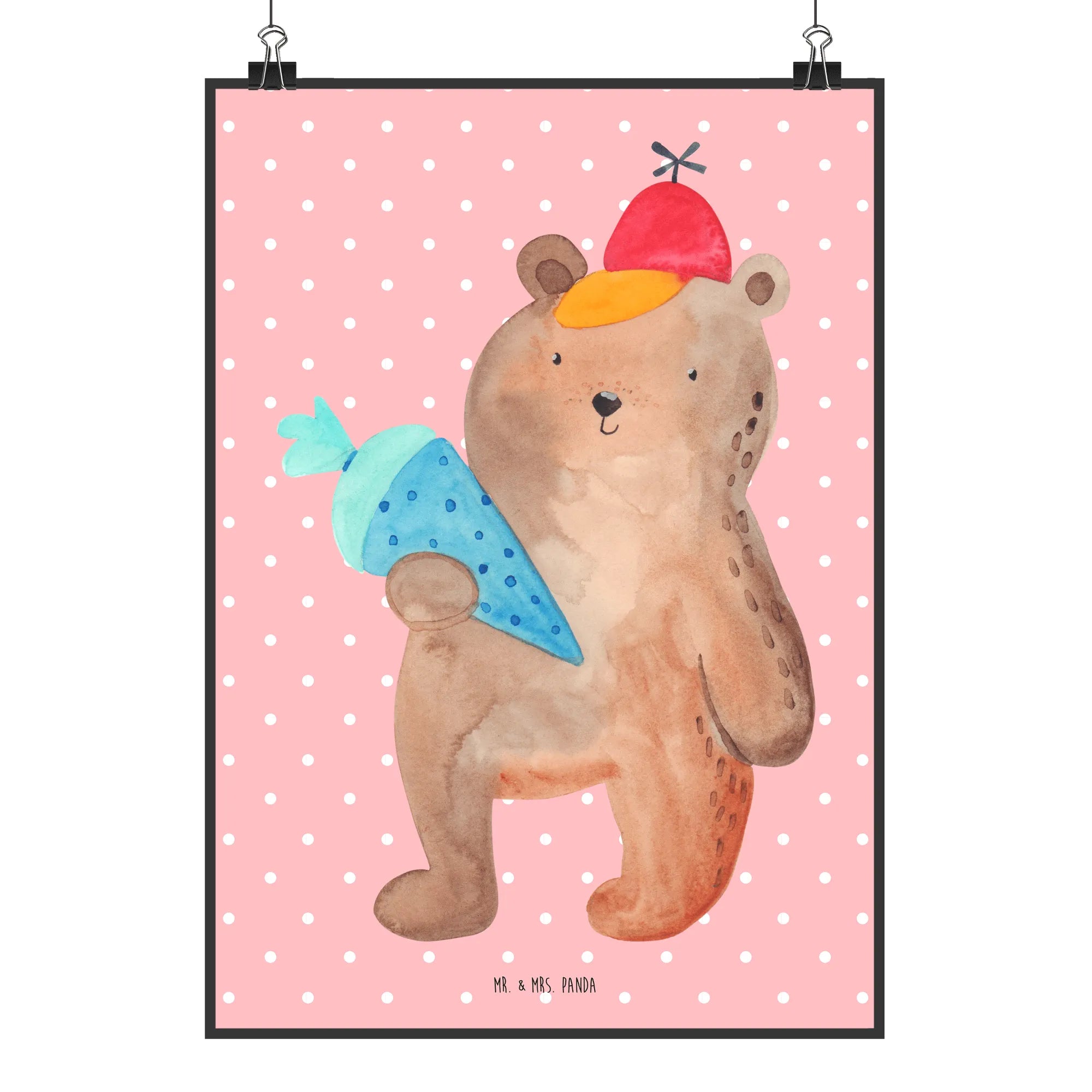 Plakat Niedźwiedź Torebka szkolna - DIN A0 - z napisem - Niebieski Pastel
