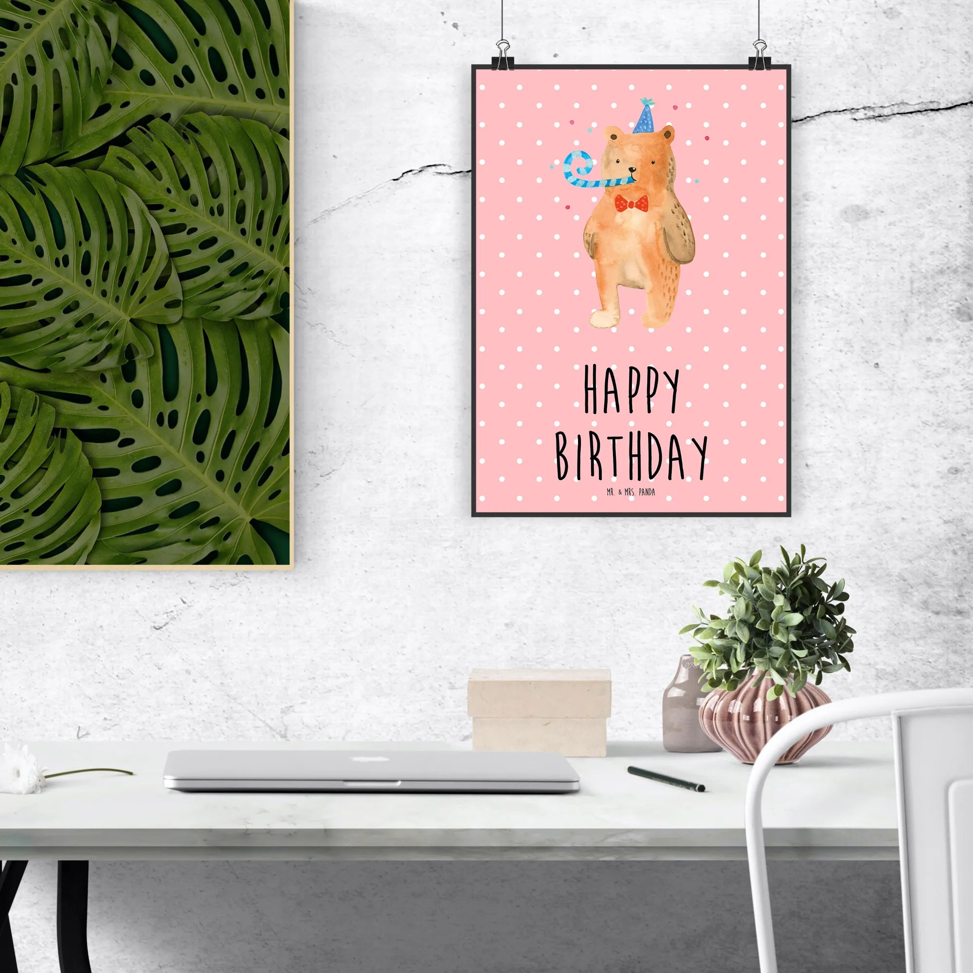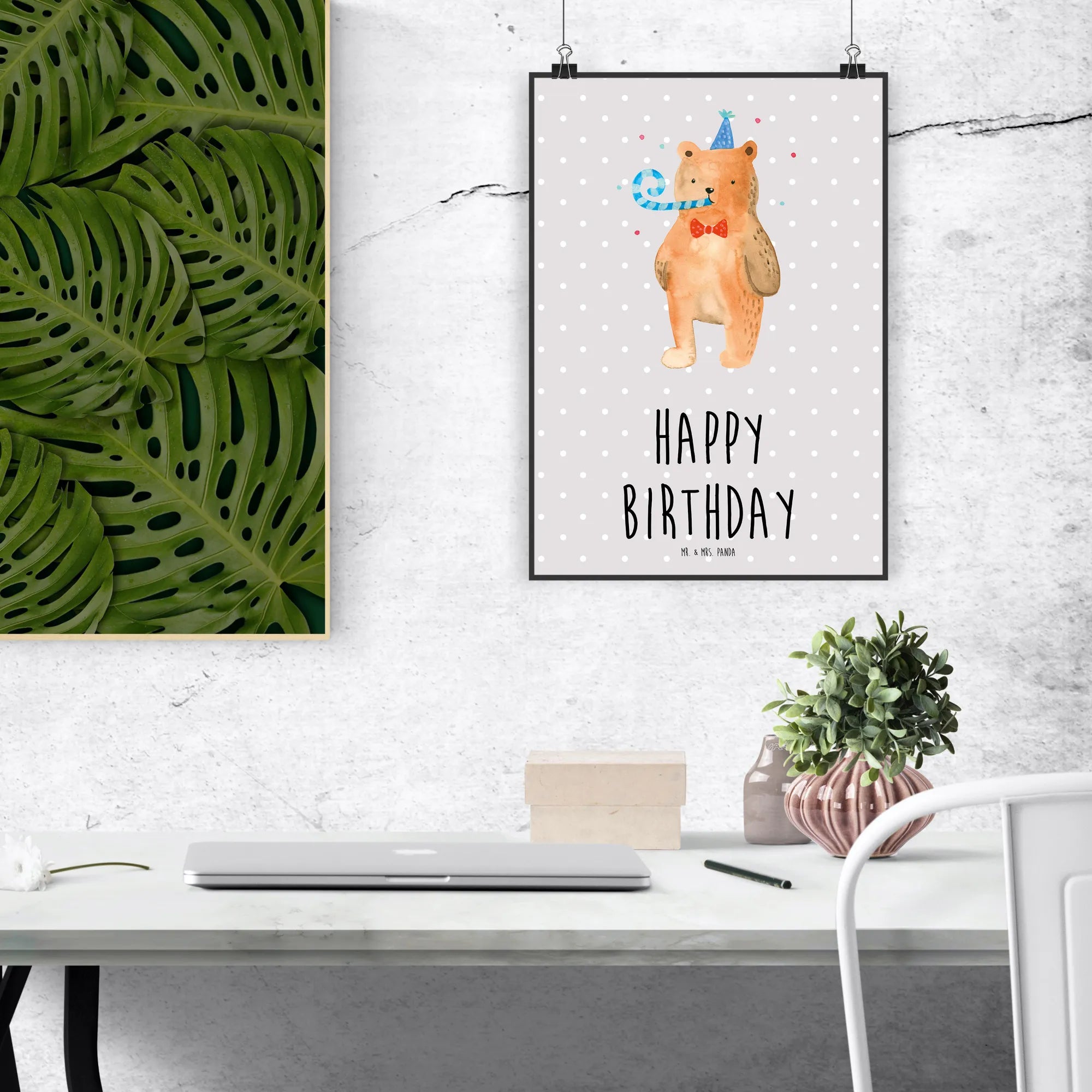 Plakat Niedźwiedź urodziny - DIN A0 - z napisem - biały