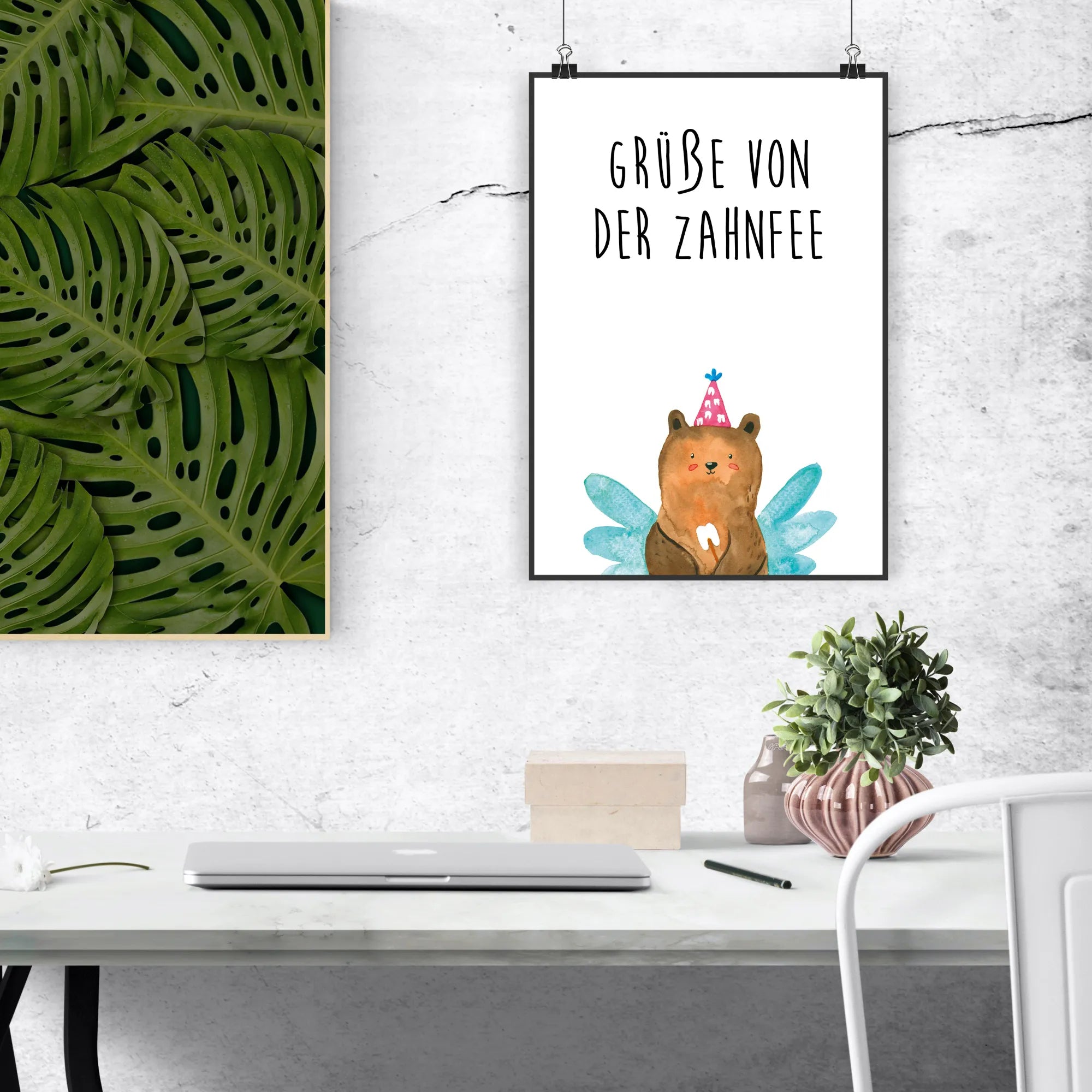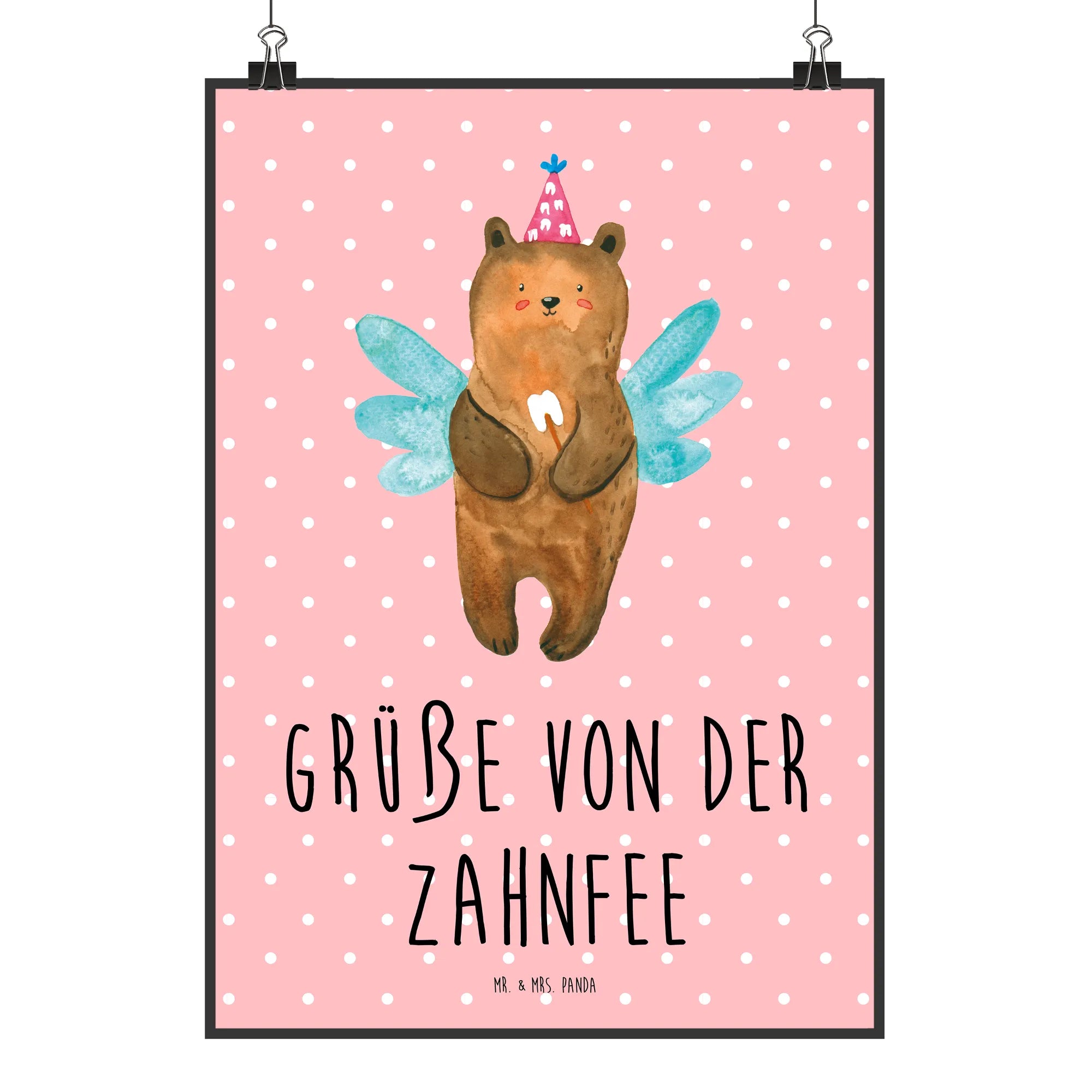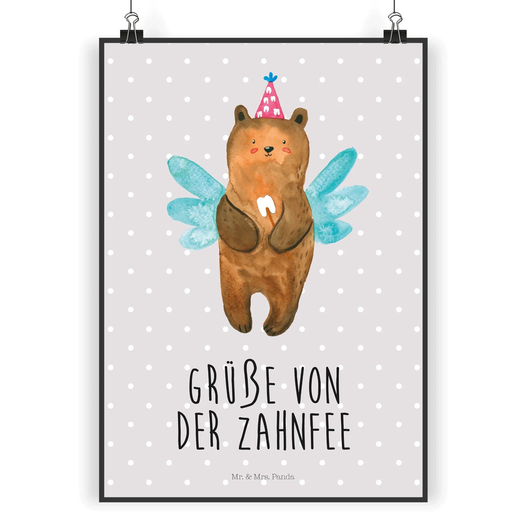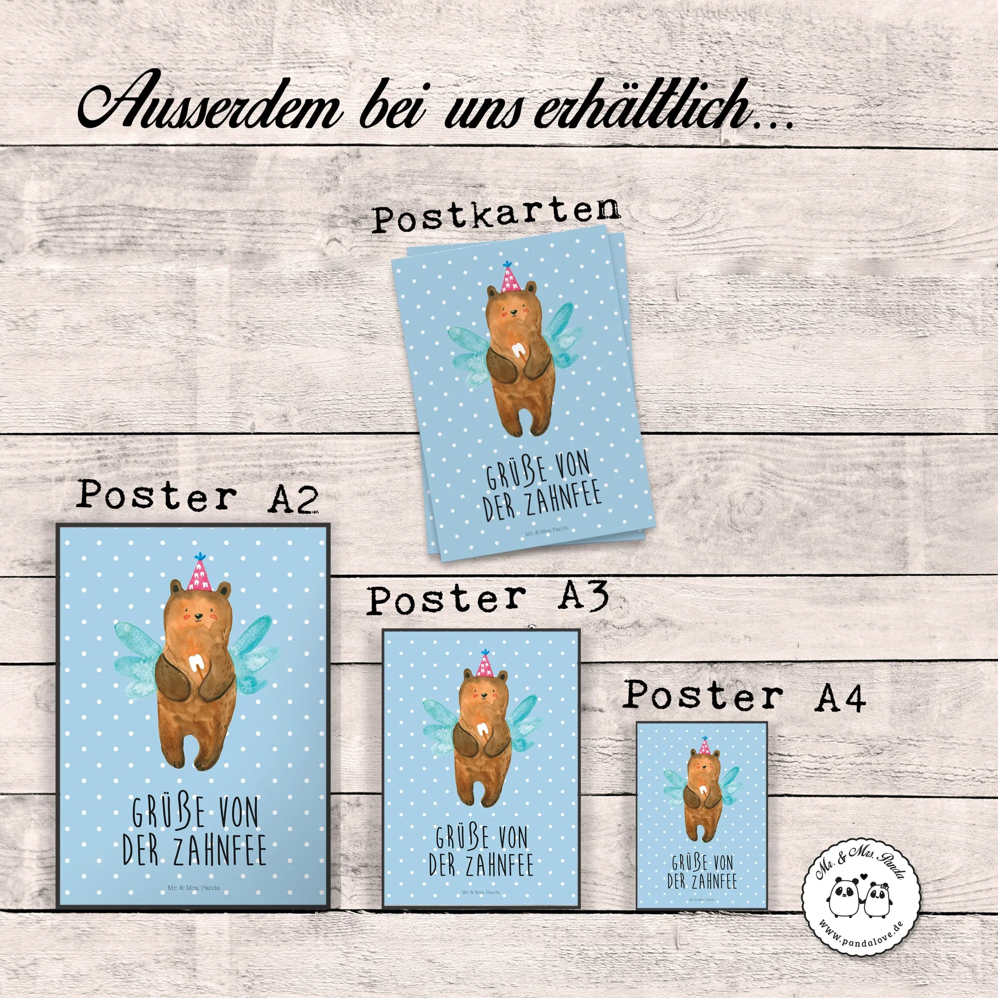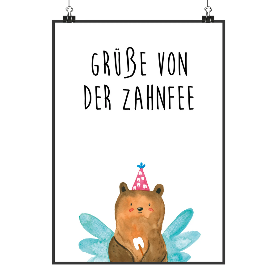 Plakat niedźwiedź Wróżka zębów - DIN A0 - z napisem - biały