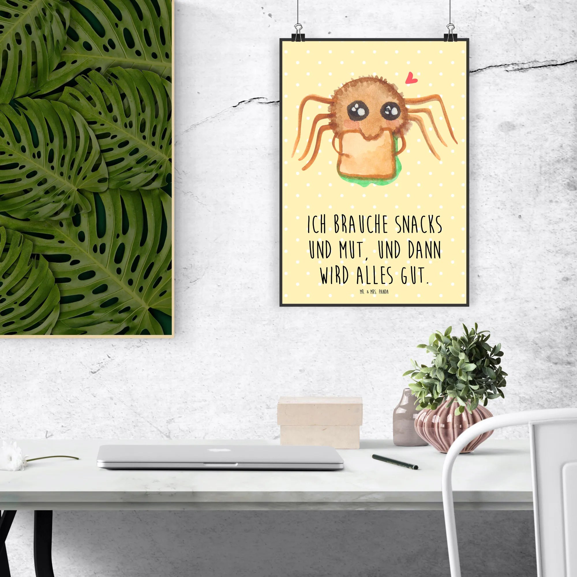 Entdecke das perfekte Geschenk für Groß und Klein mit unserem bezaubernden Poster "Spinne Agathe Sandwich" aus der exklusiven Spinne Agathe Kollektion von Mr. & Mrs. Panda!