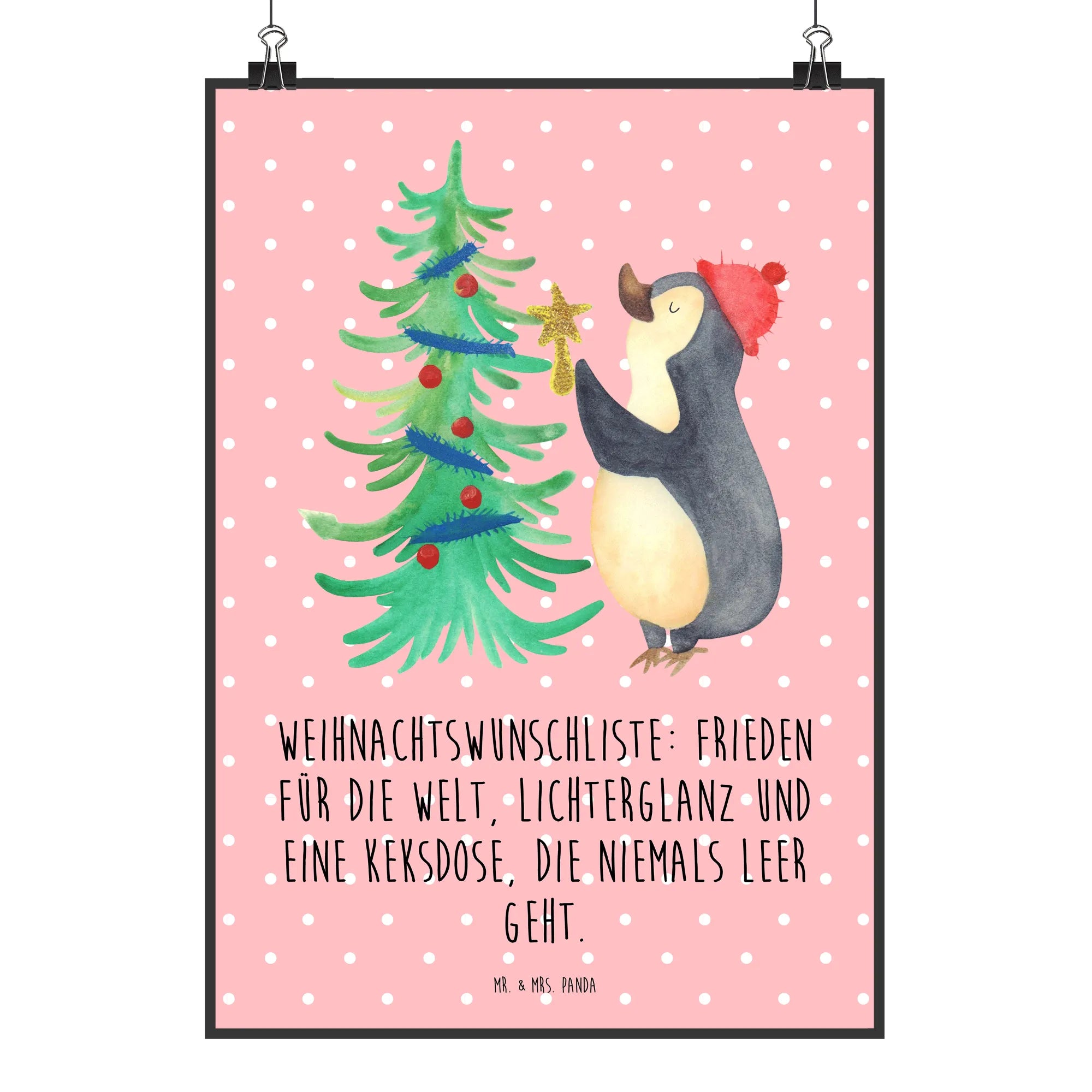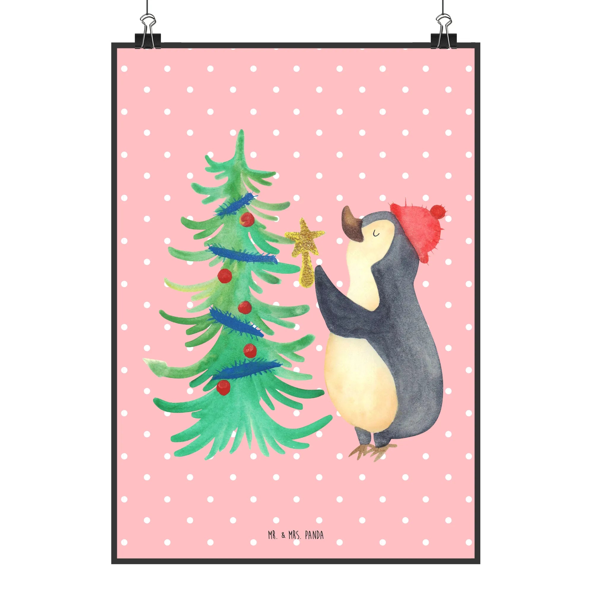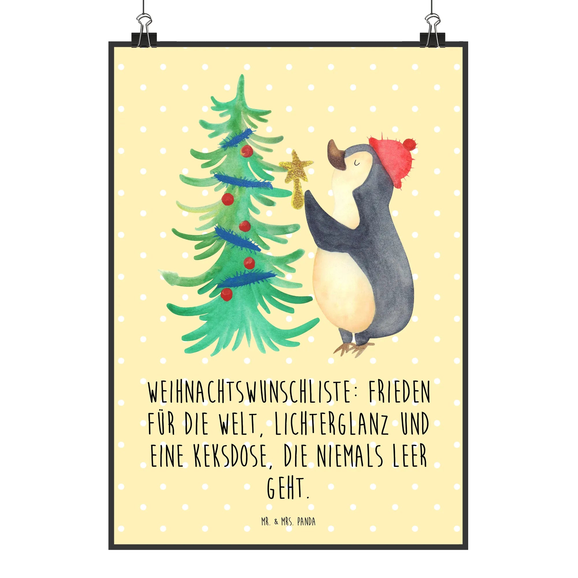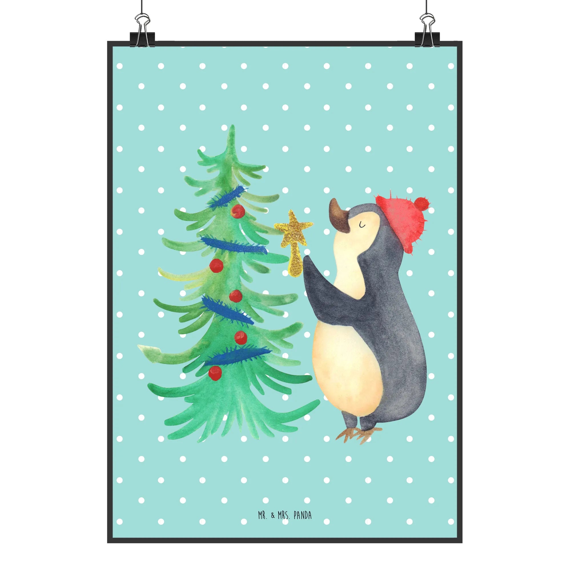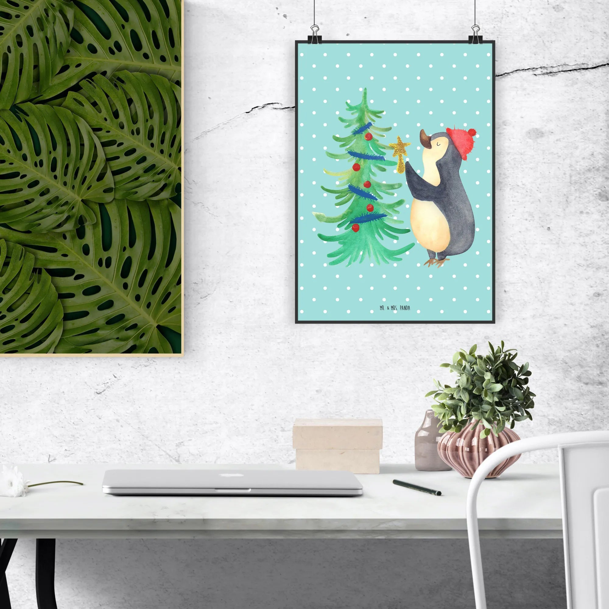 Plakat Pingwin choinka - DIN A0 - z napisem - Biały