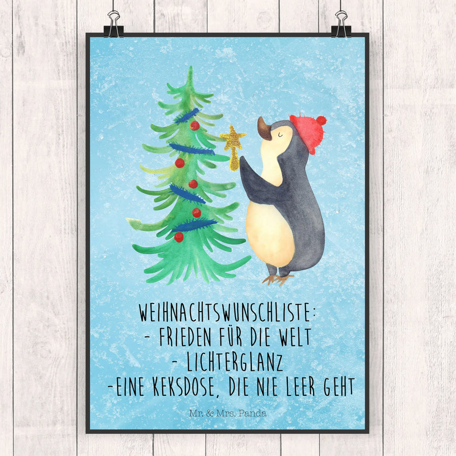 Plakat Pingwin choinka - DIN A0 - z napisem - lodowoniebieski