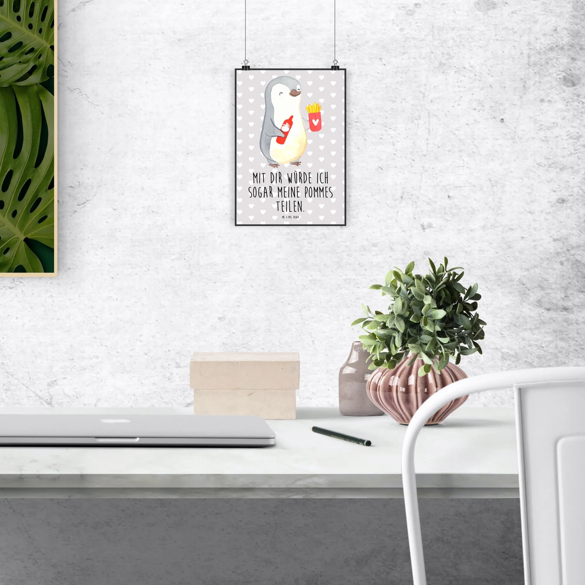 Dieses wunderschöne und edle Poster von Mr. & Mrs. Panda ist das perfekte Geschenk für all diejenigen, die ihre Liebe auf besondere Weise ausdrücken möchten. Das Motiv "Pinguin Pommes" bringt mit einer liebevollen Darstellung und dem Spruch "Mit dir würde ich sogar meine Pommes teilen" nicht nur Schmunzeln, sondern auch viel Herz. Es ist ideal für Paare, ob als Valentinstagsgeschenk, zum Jahrestag oder als Liebesbeweis an einen besonderen Freund oder Freundin. Das Poster ist ein Ausdruck der Verbundenheit und des Glücks, das man mit seinen Liebsten teilt. Die lebendigen Farben und der hochwertige Druck machen jedes Detail sichtbar und sorgen dafür, dass dieses Kunstwerk in jedem Raum zum Hingucker wird.