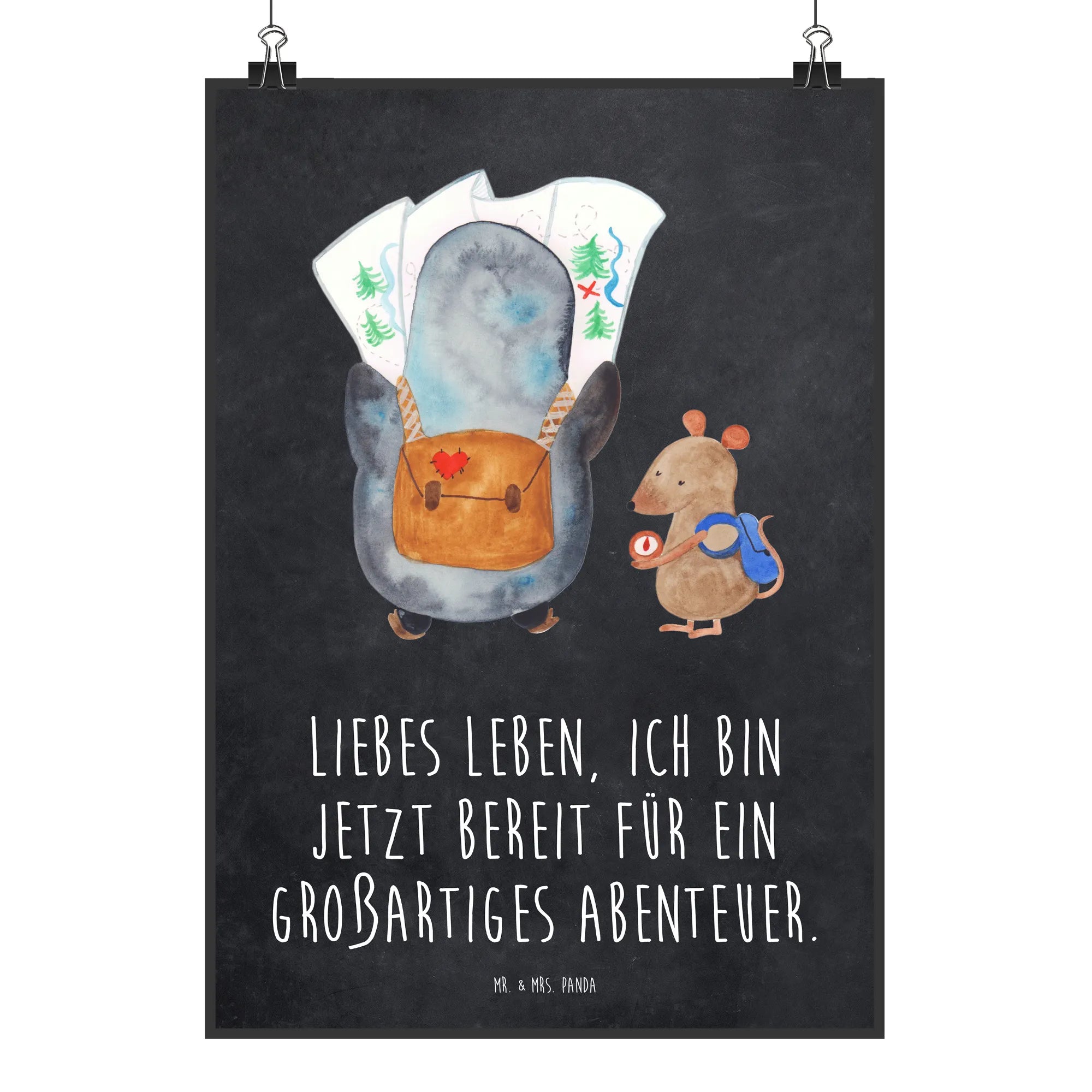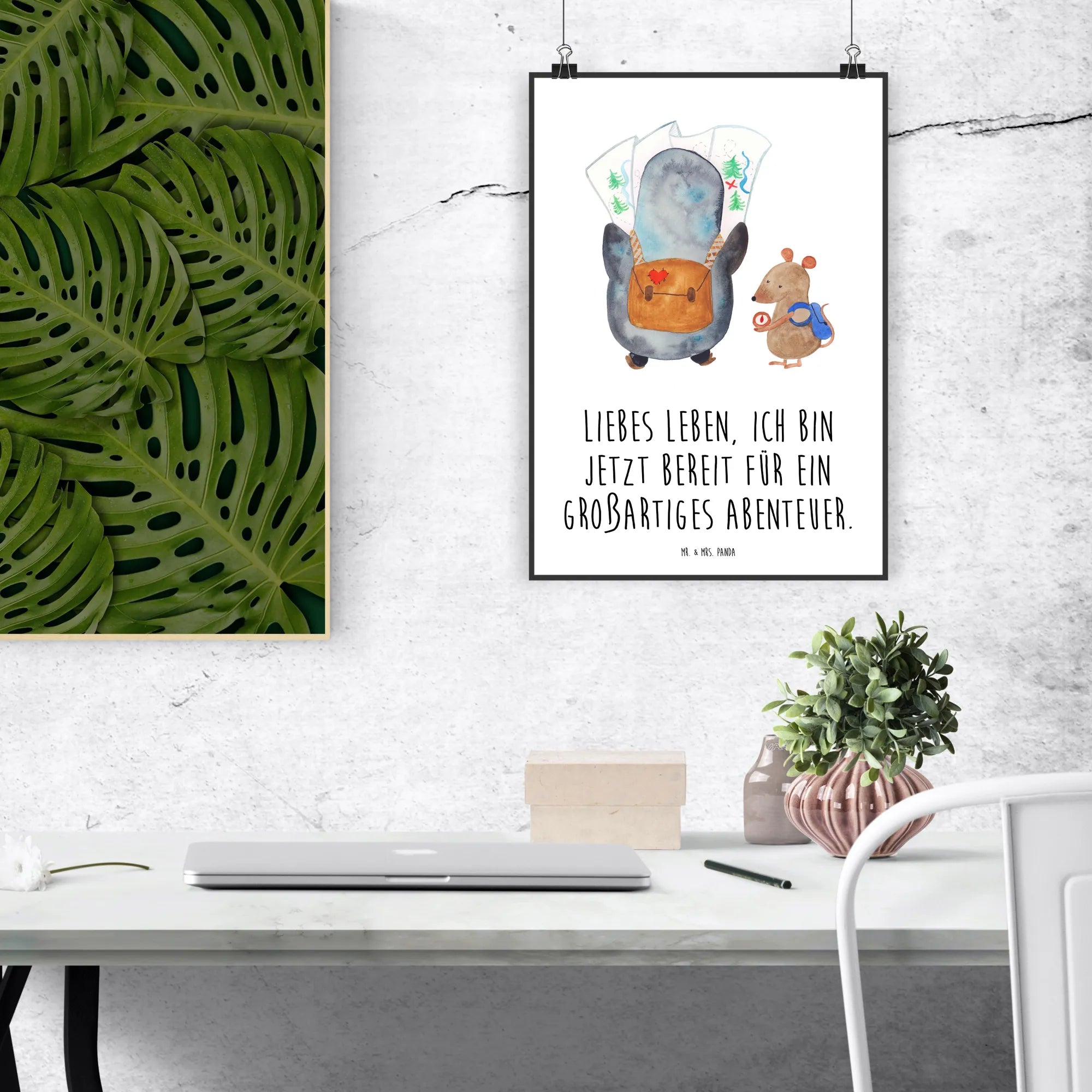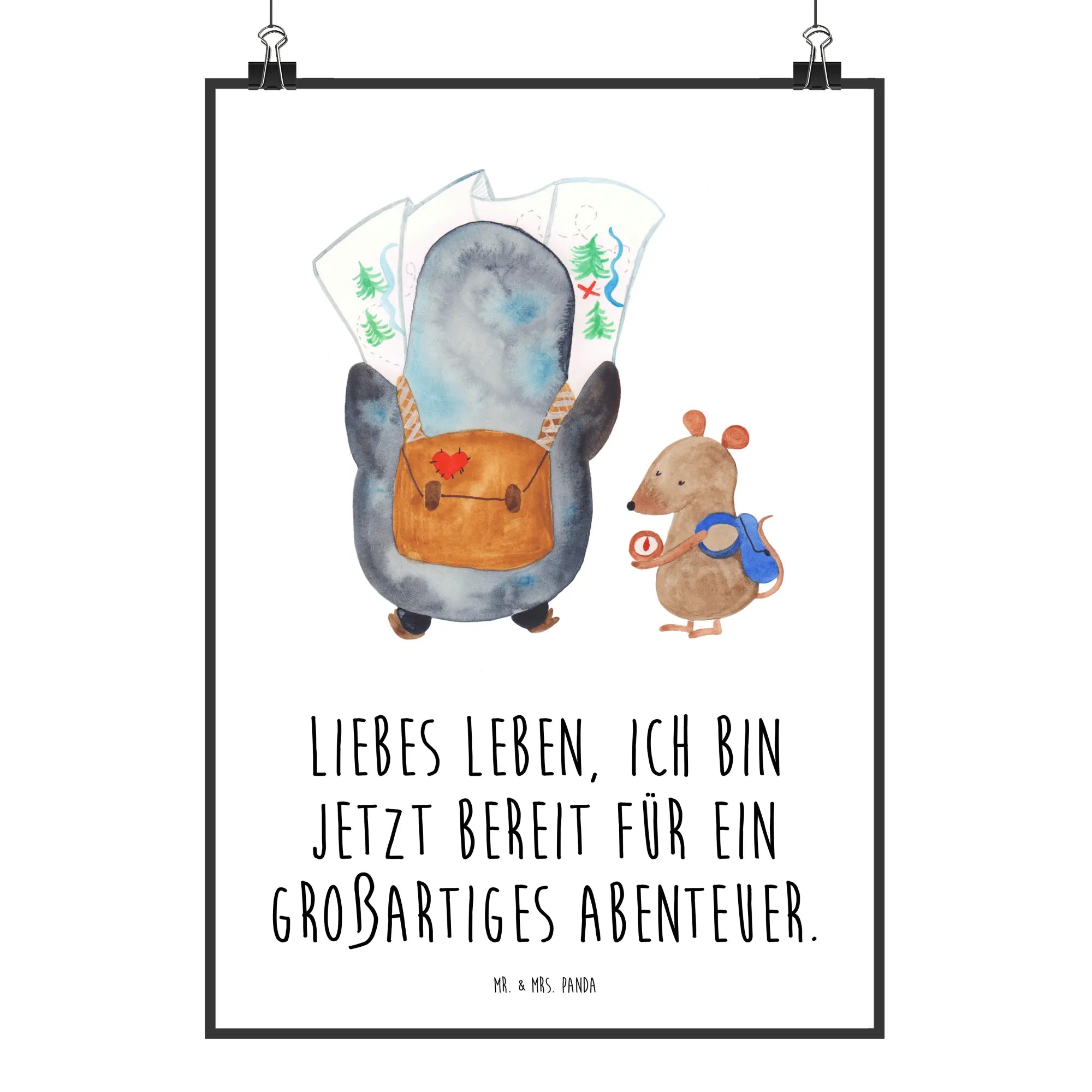 Plakat Pingwin i Mysz Wędrowcy - DIN A0 - z napisem - Eisblau