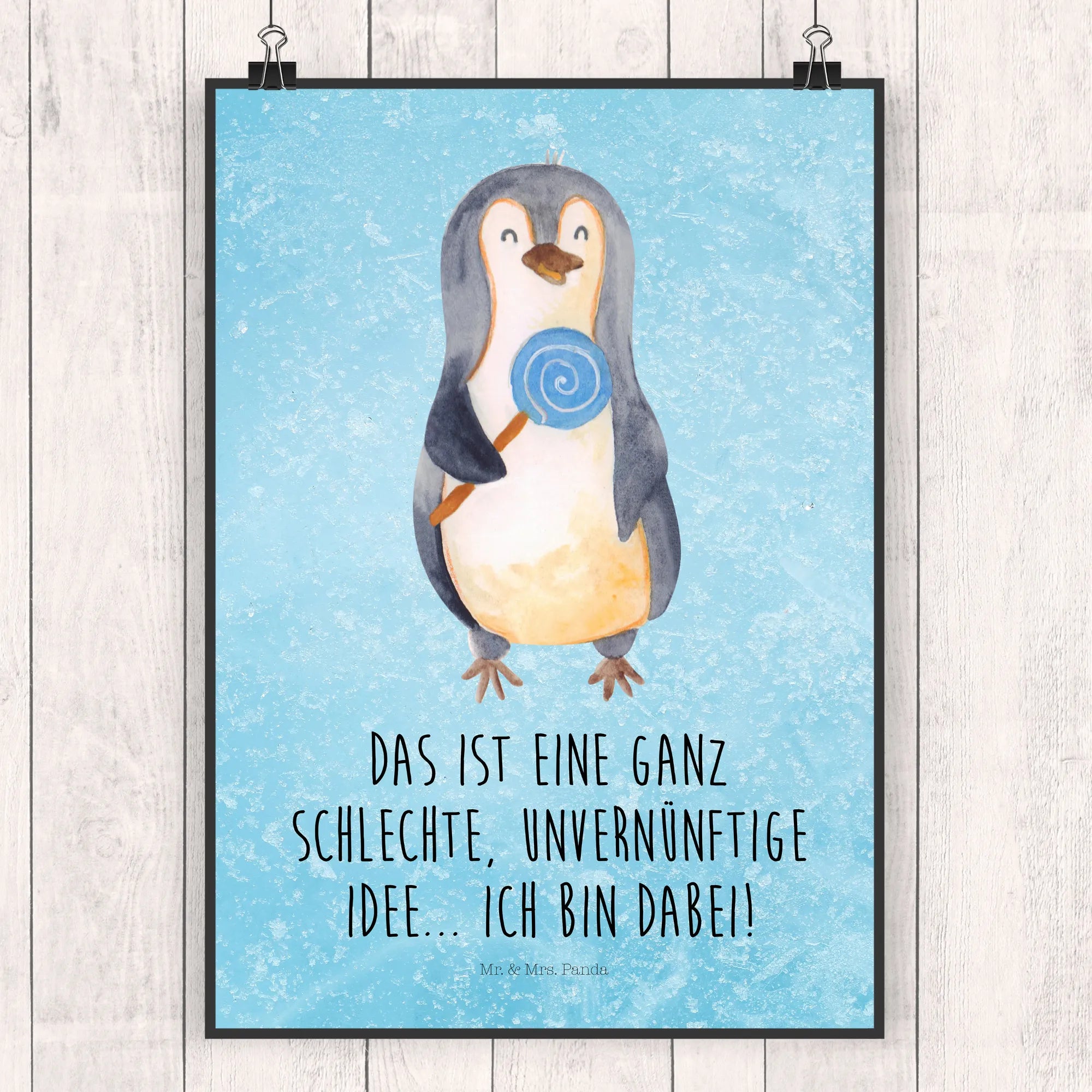 Plakat pingwin lizak - DIN A0 - mit Spruch - Weiß