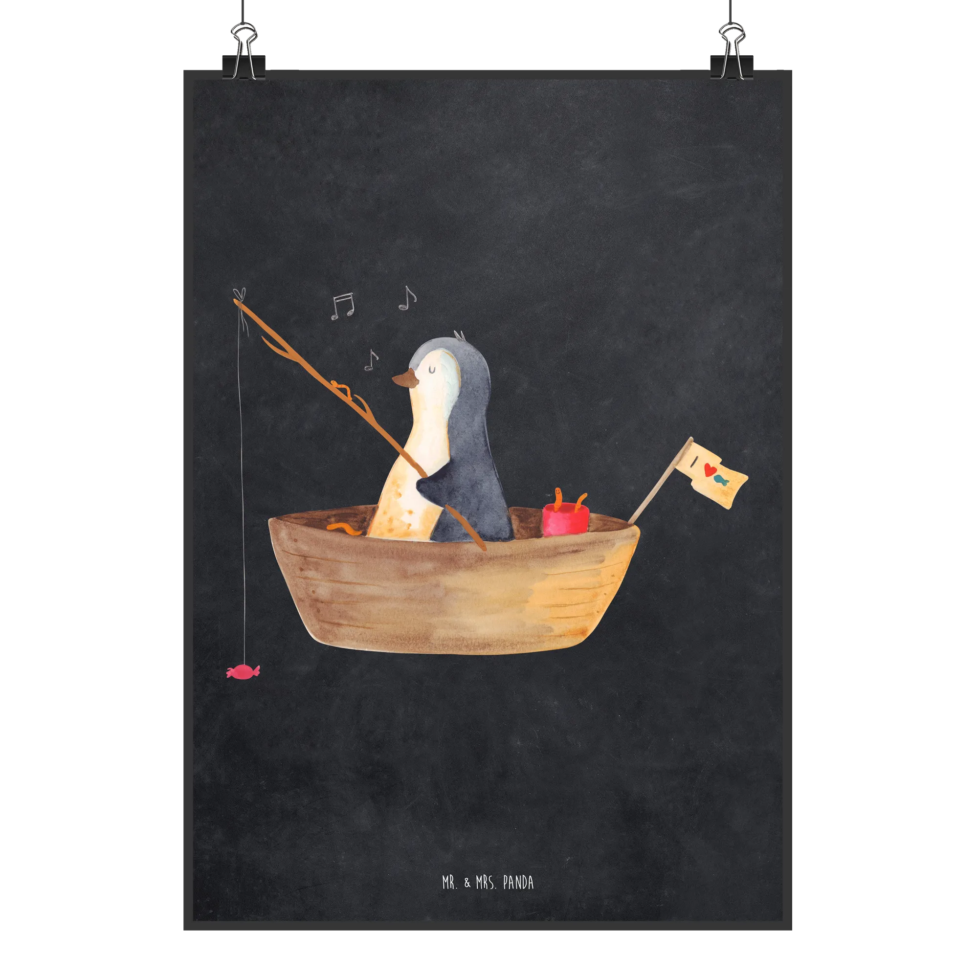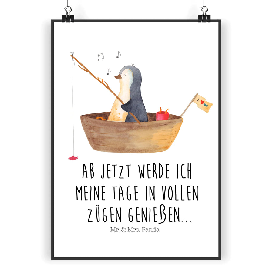 Plakat pingwin łódka wędkarska - DIN A0 - mit Spruch - Weiß