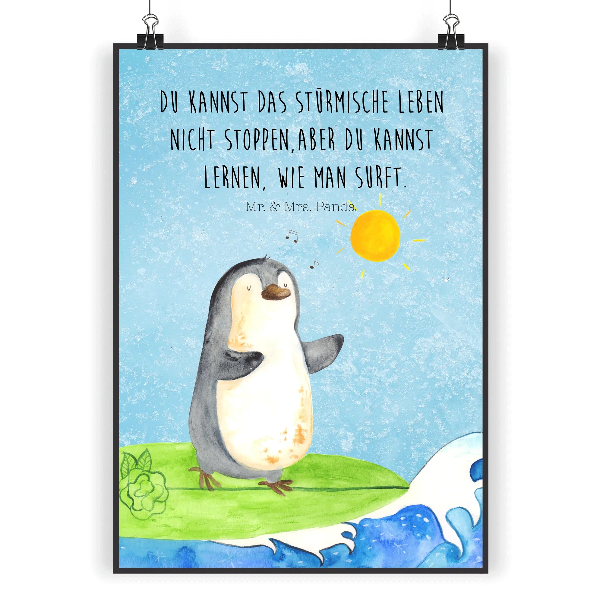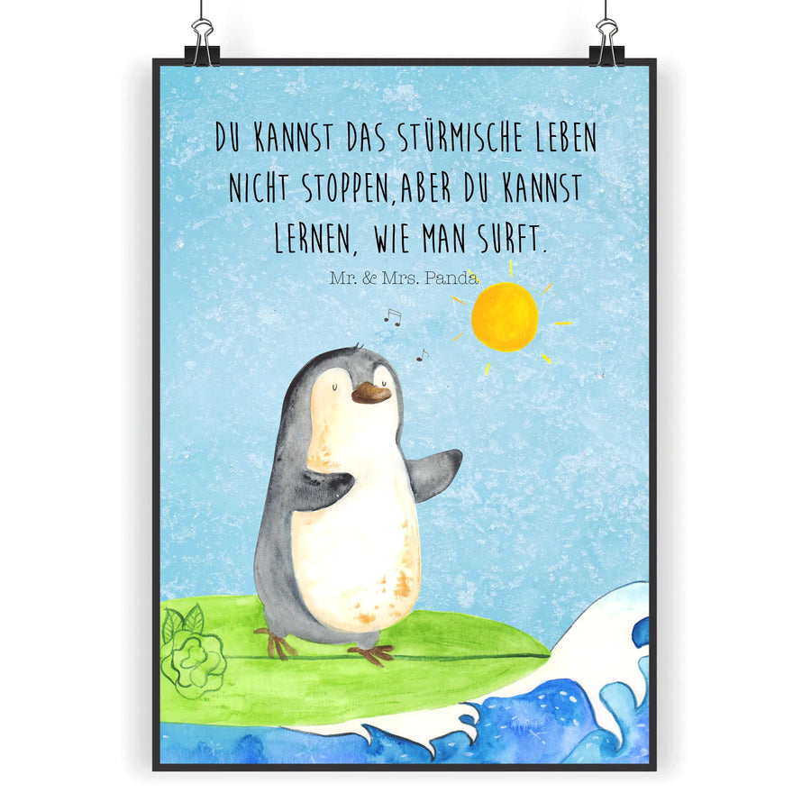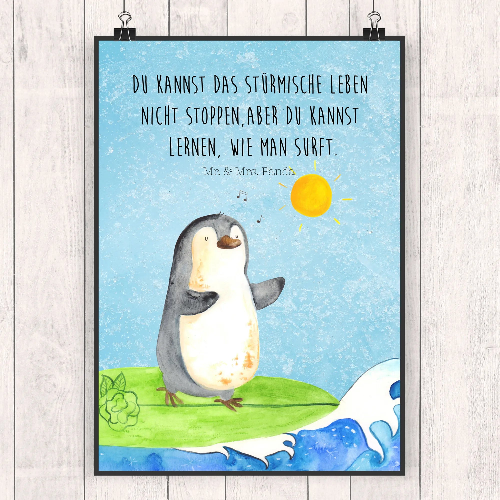 Plakat Pingwin surfista - DIN A0 - z napisem - Eisblau