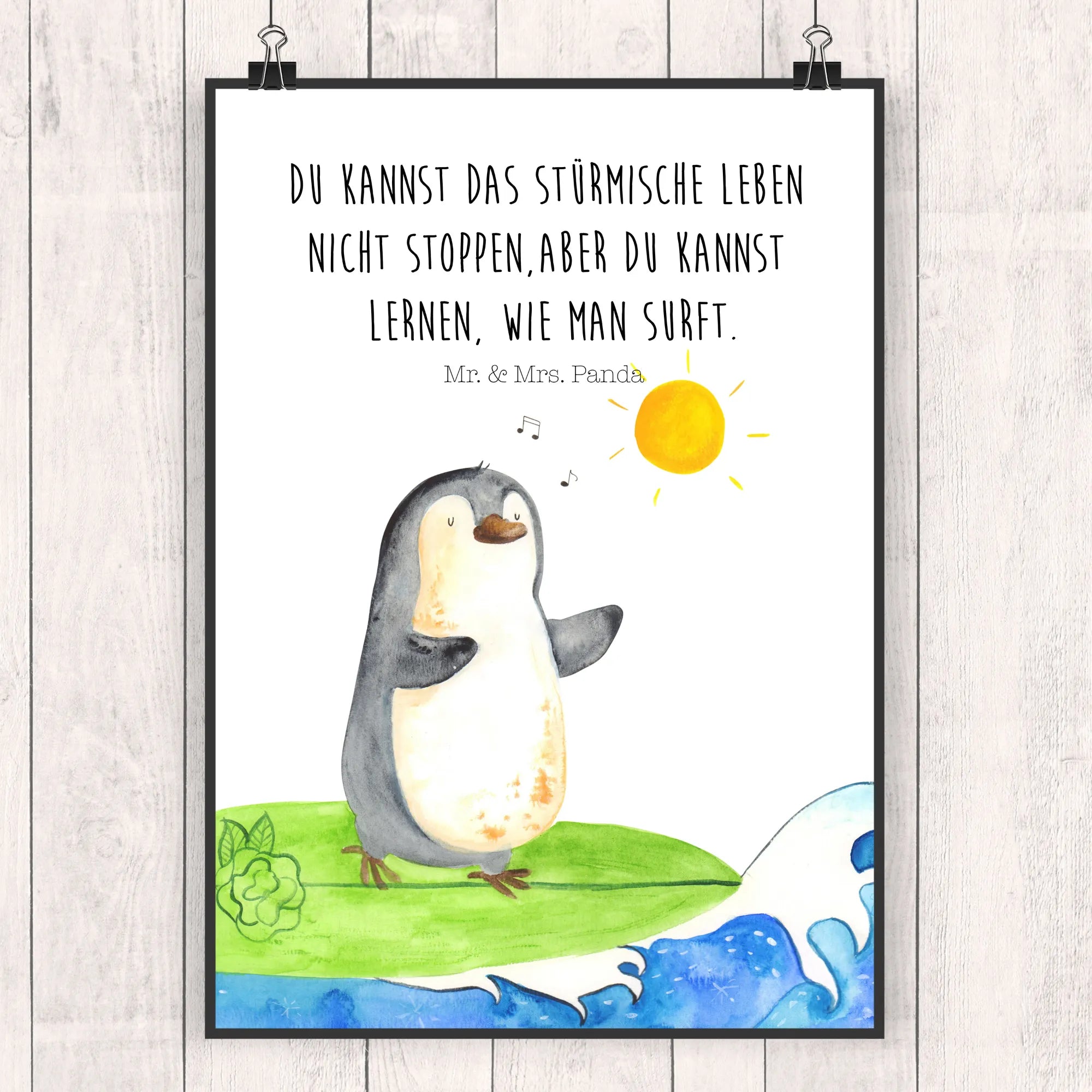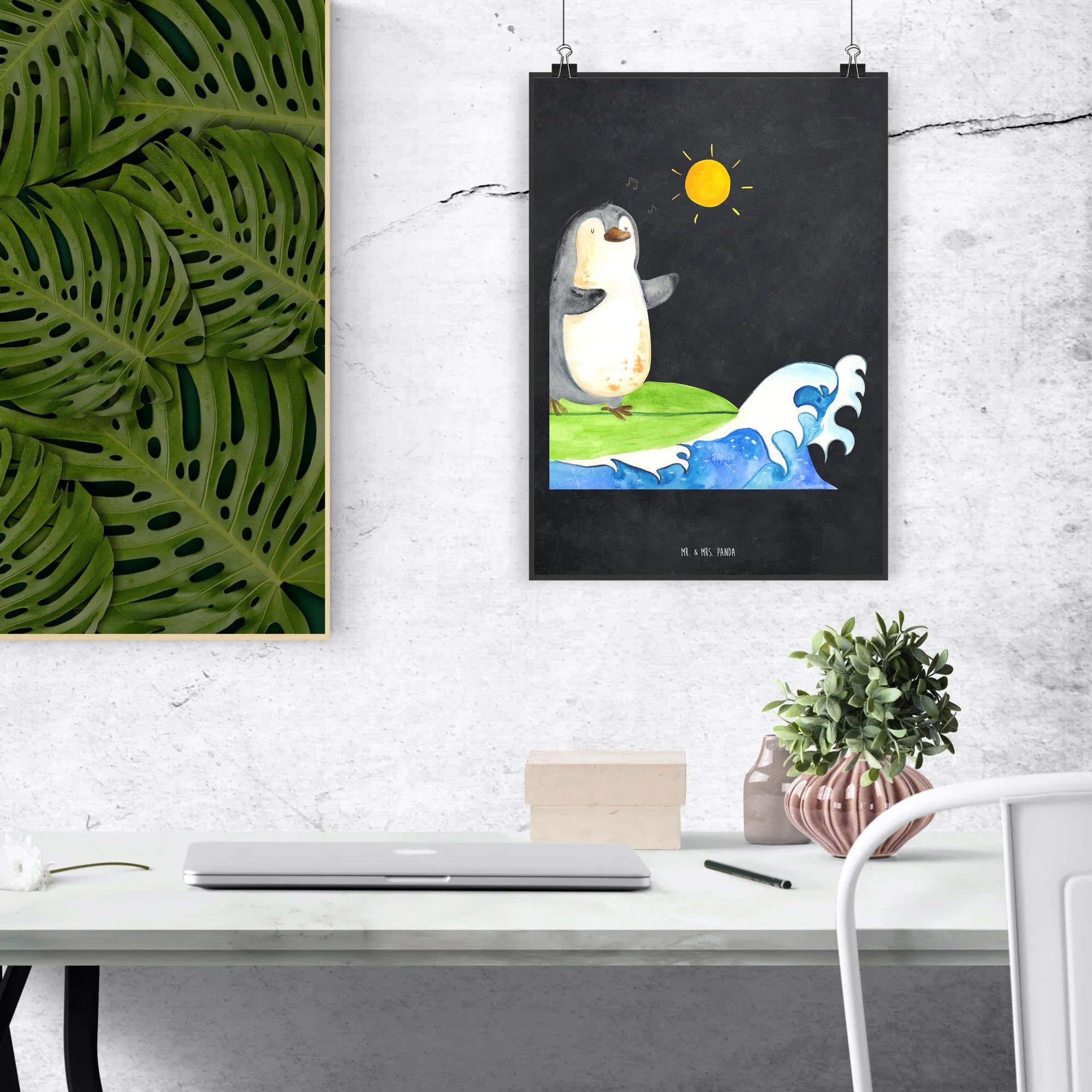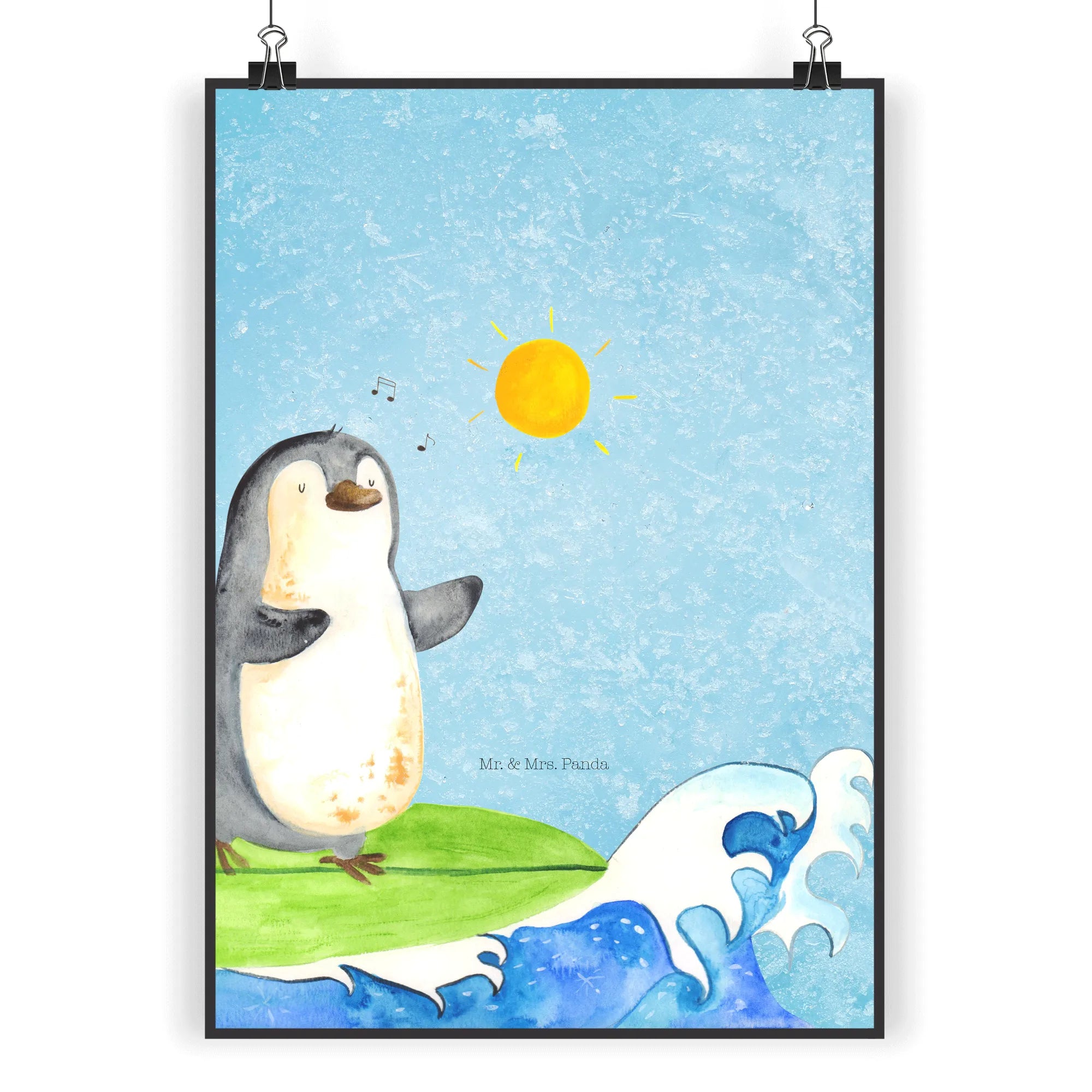 Plakat Pingwin surfista - DIN A0 - z napisem - Eisblau