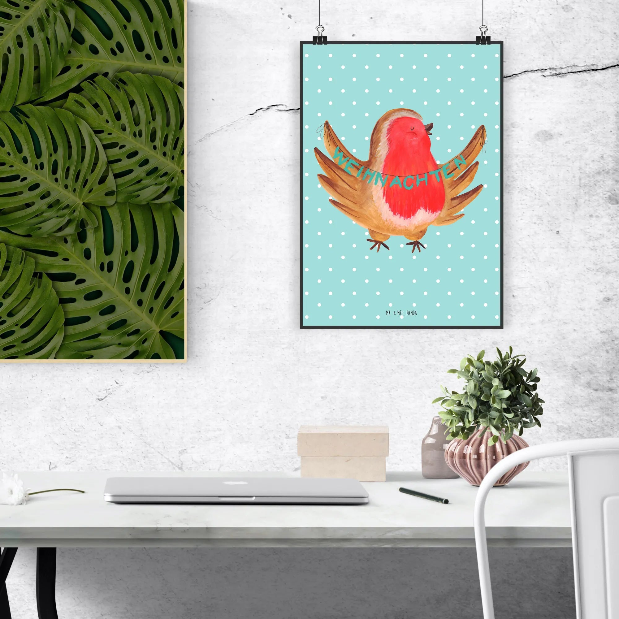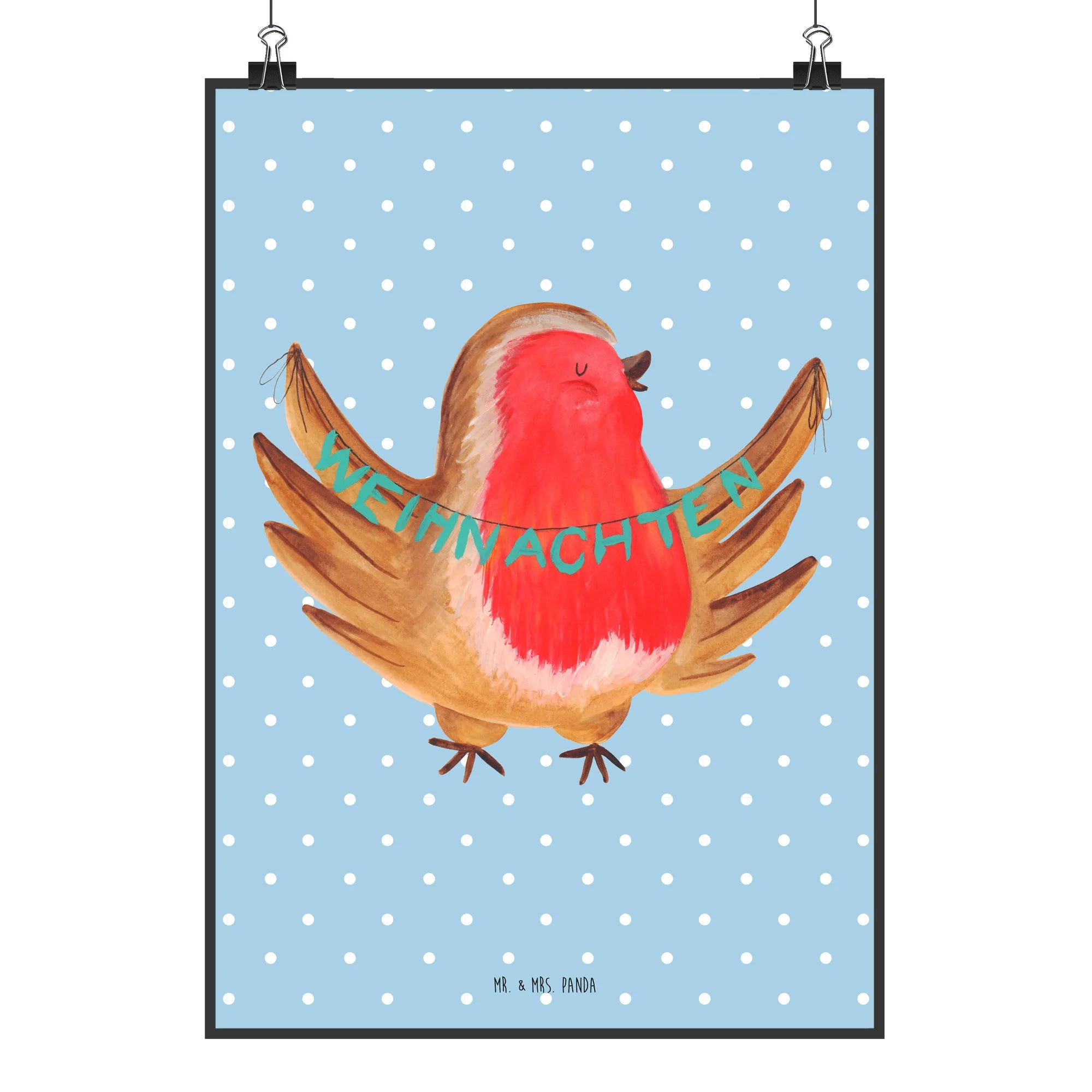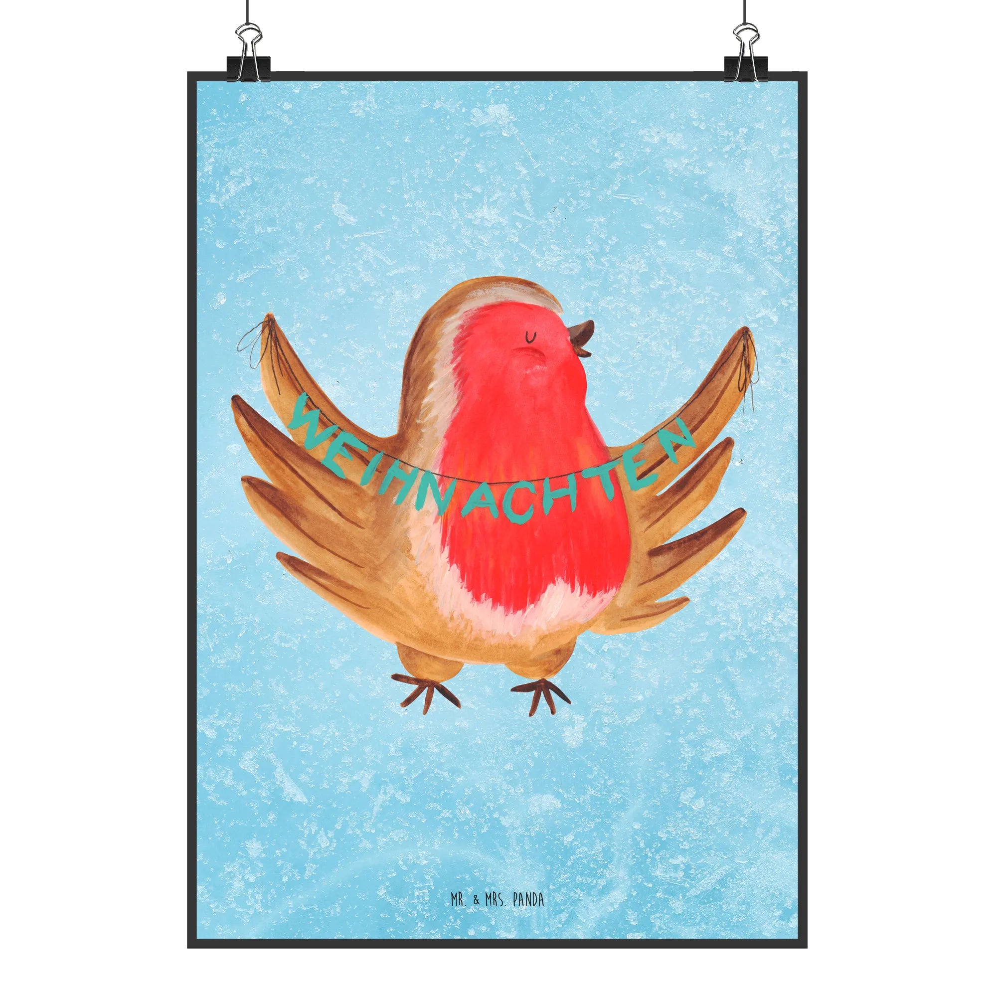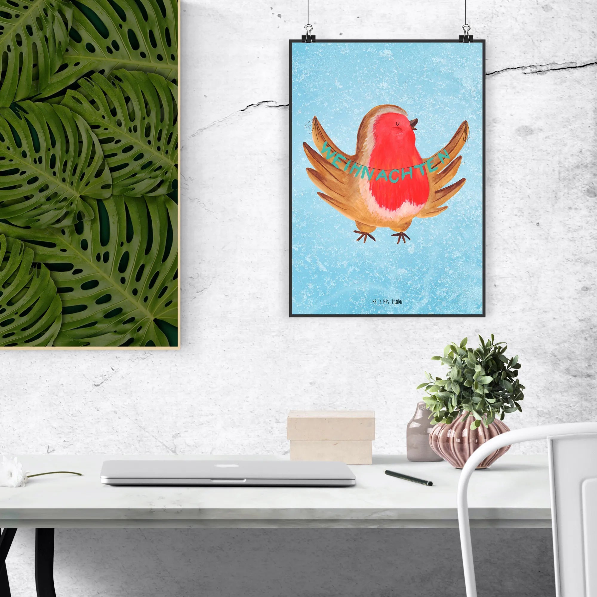 Plakat rudzik Boże Narodzenie - DIN A0 - z napisem - lodowoniebieski