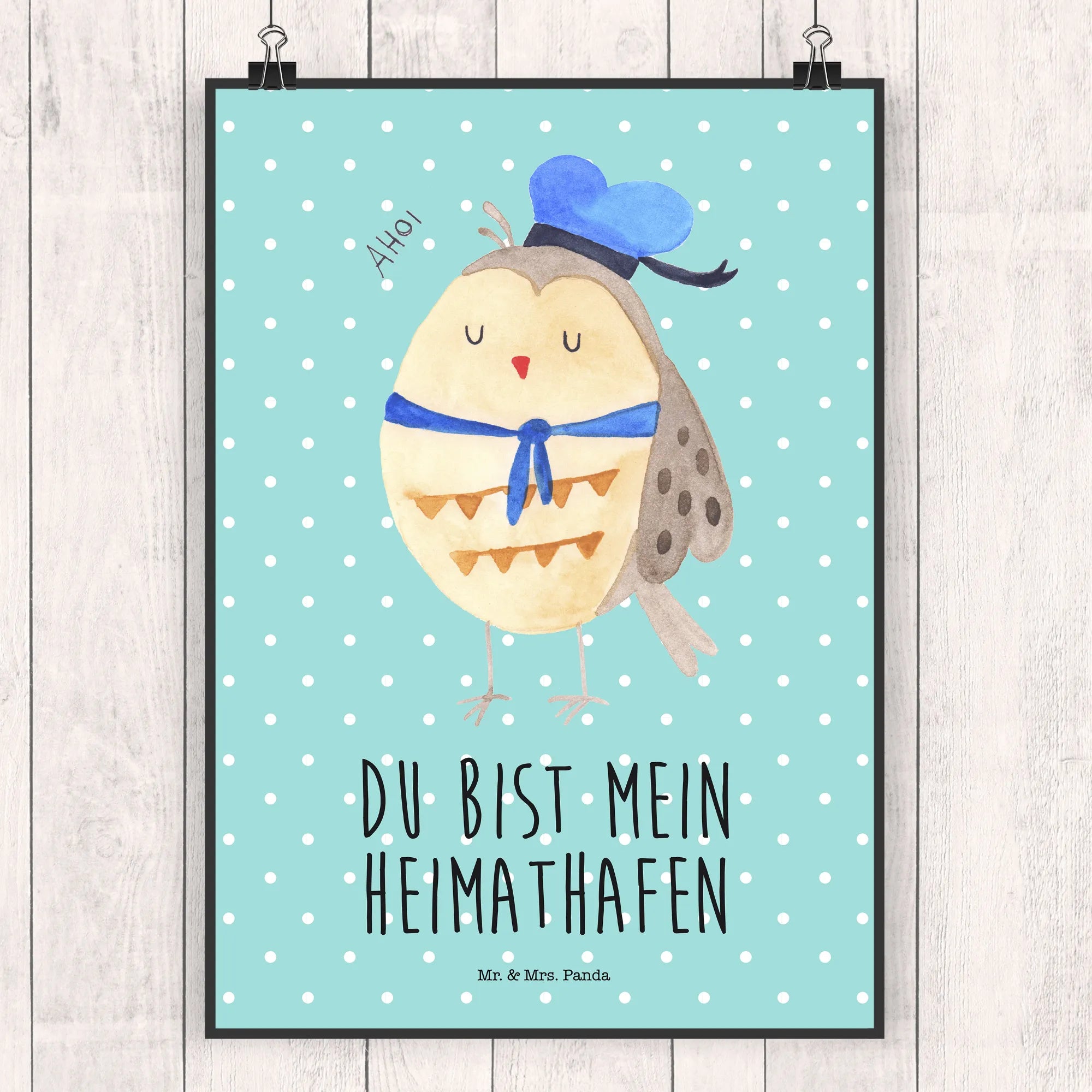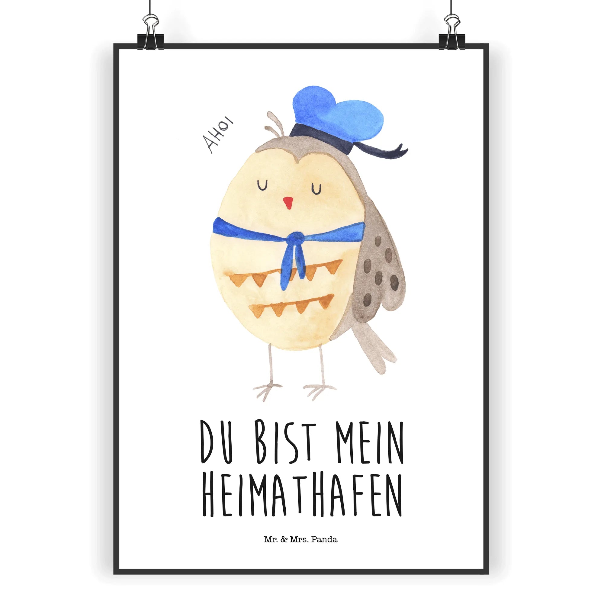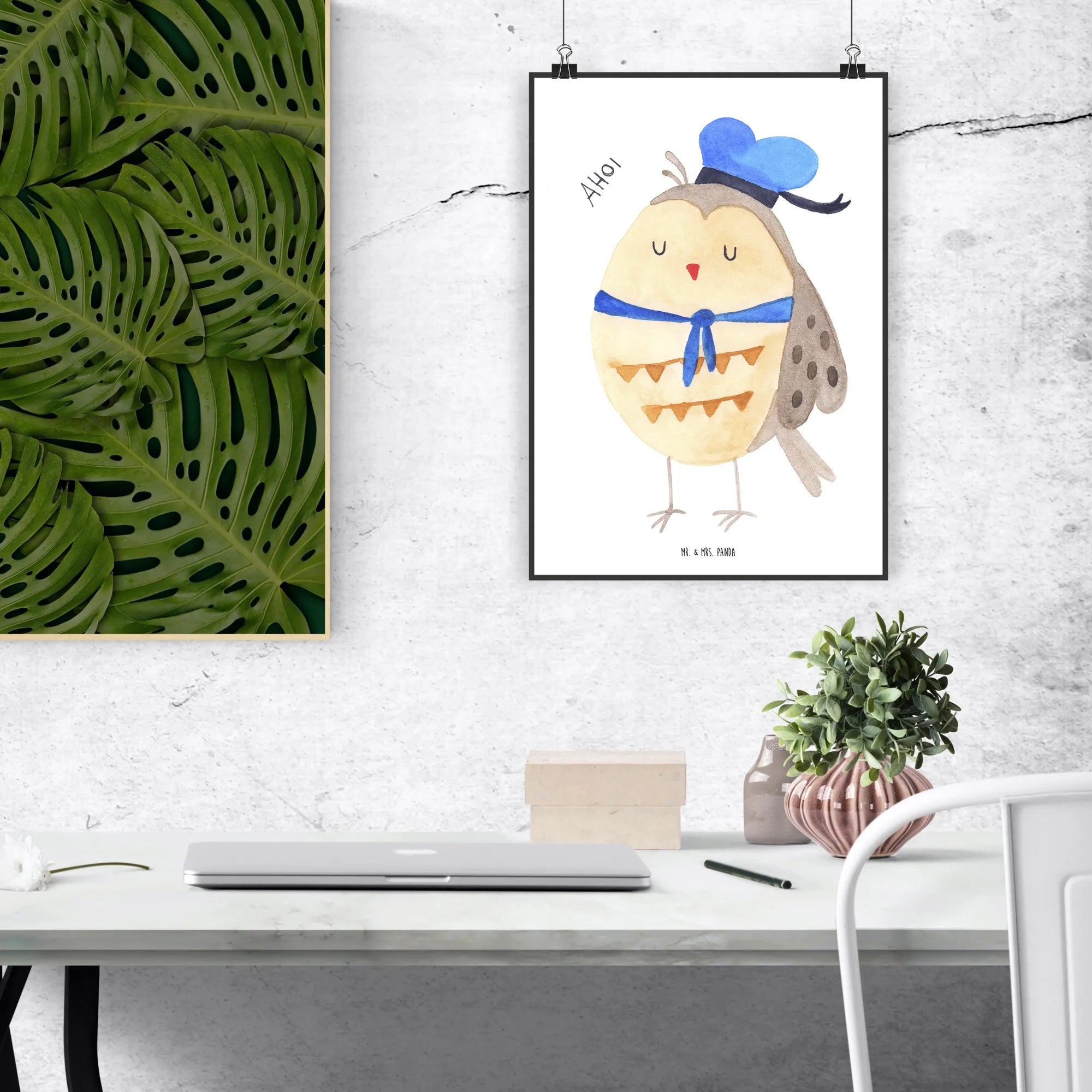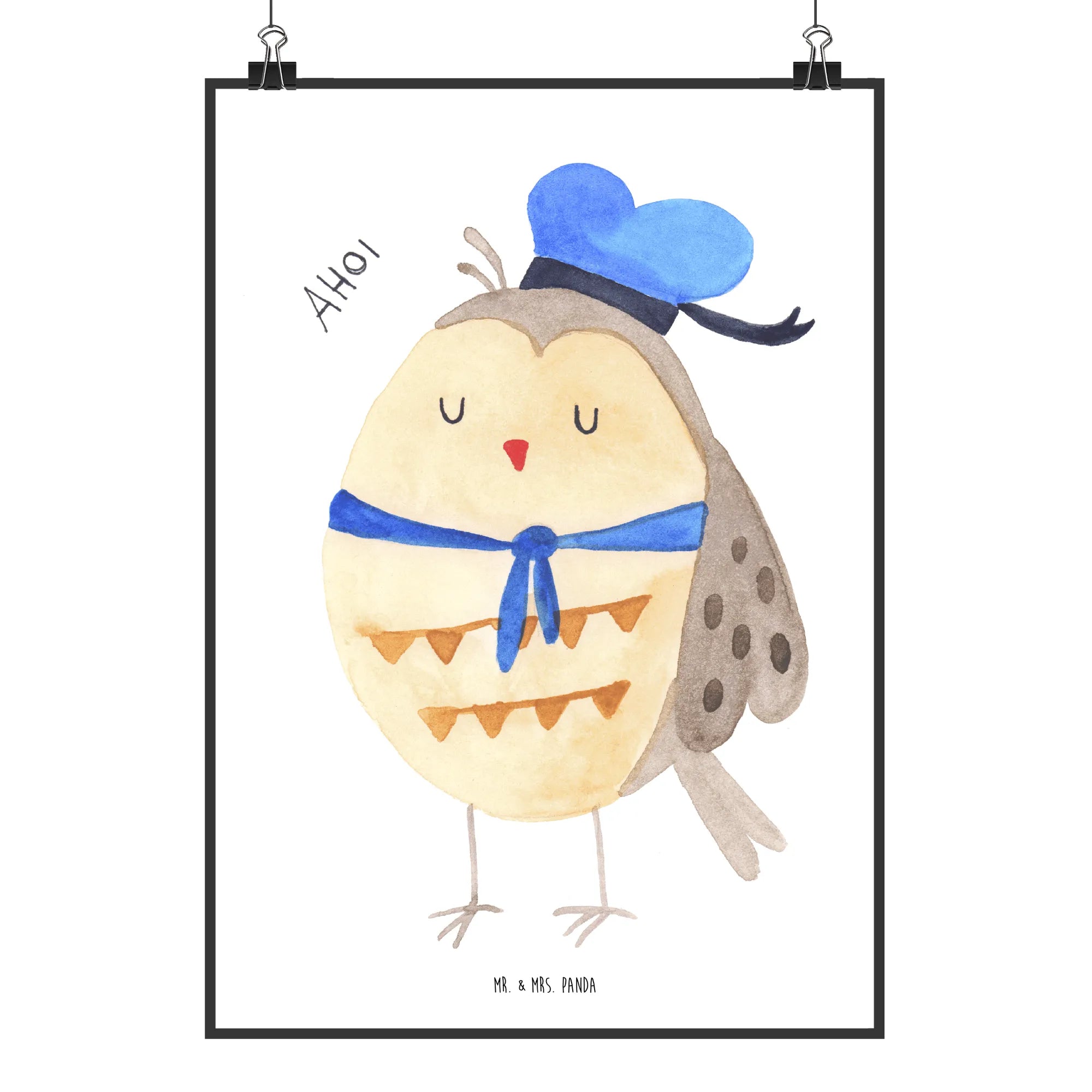 Plakat sowa Marynarz - DIN A0 - z napisem - Biały