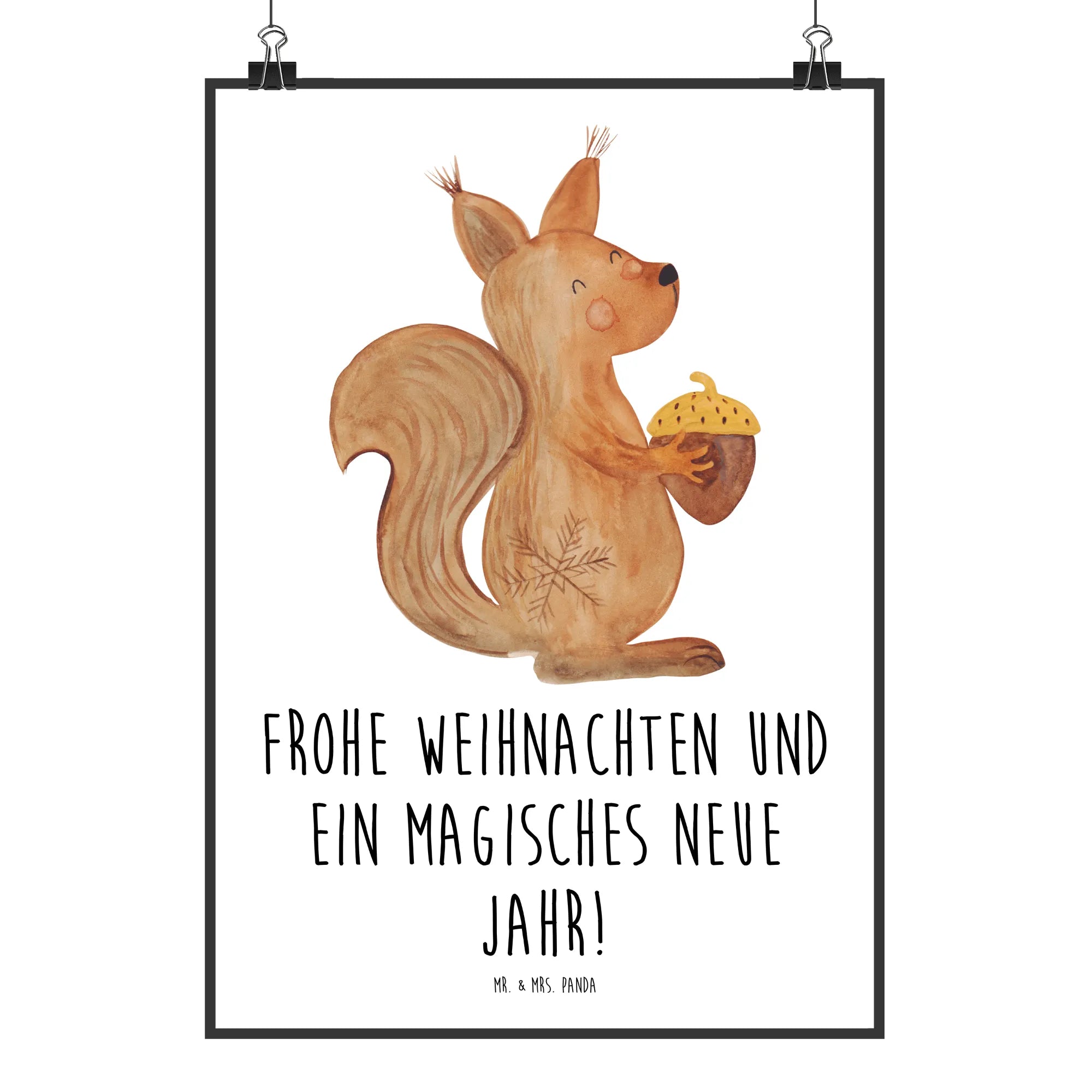 Der perfekte Geschenk für die Weihnachtszeit! Unser wunderschönes Eichhörnchen Weihnachten Poster aus der Winter Kollektion von Mr. & Mrs. Panda bringt fröhliche Stimmung in dein Zuhause. Das liebevoll handgemalte Motiv zeigt ein glückliches Eichhörnchen, das eine Eichel in der Hand hält. Dieses Poster ist mehr als nur Dekoration; es ist ein kleiner Glücksbringer für die kalte Jahreszeit!