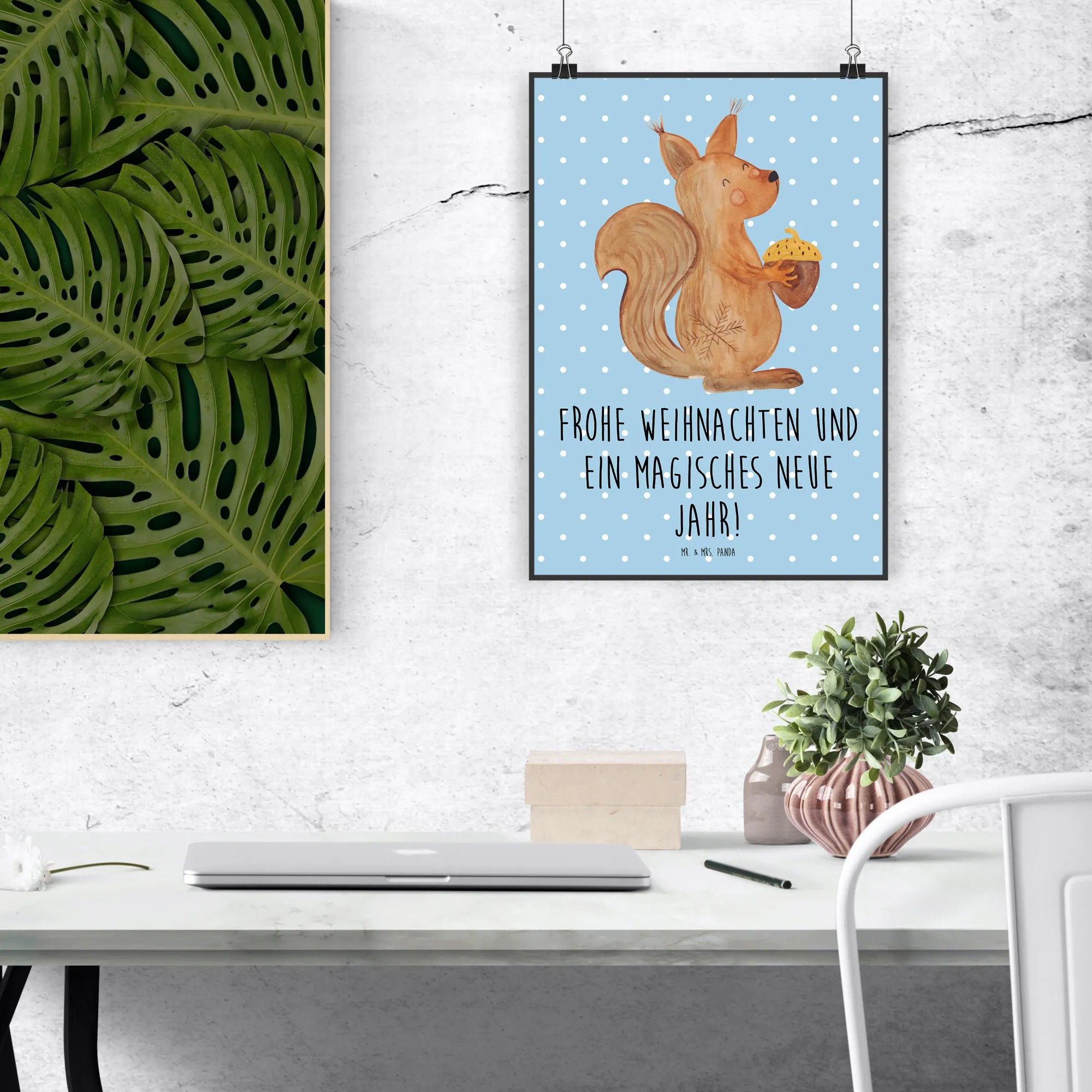 Plakat wiewiórka Boże Narodzenie - DIN A4 - ohne Spruch - Eisblau