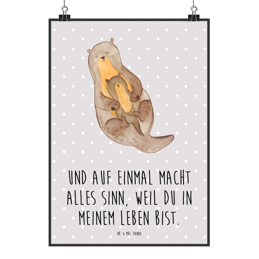 Plakat wydra dziecko - DIN A0 - z napisem - Szary Pastel