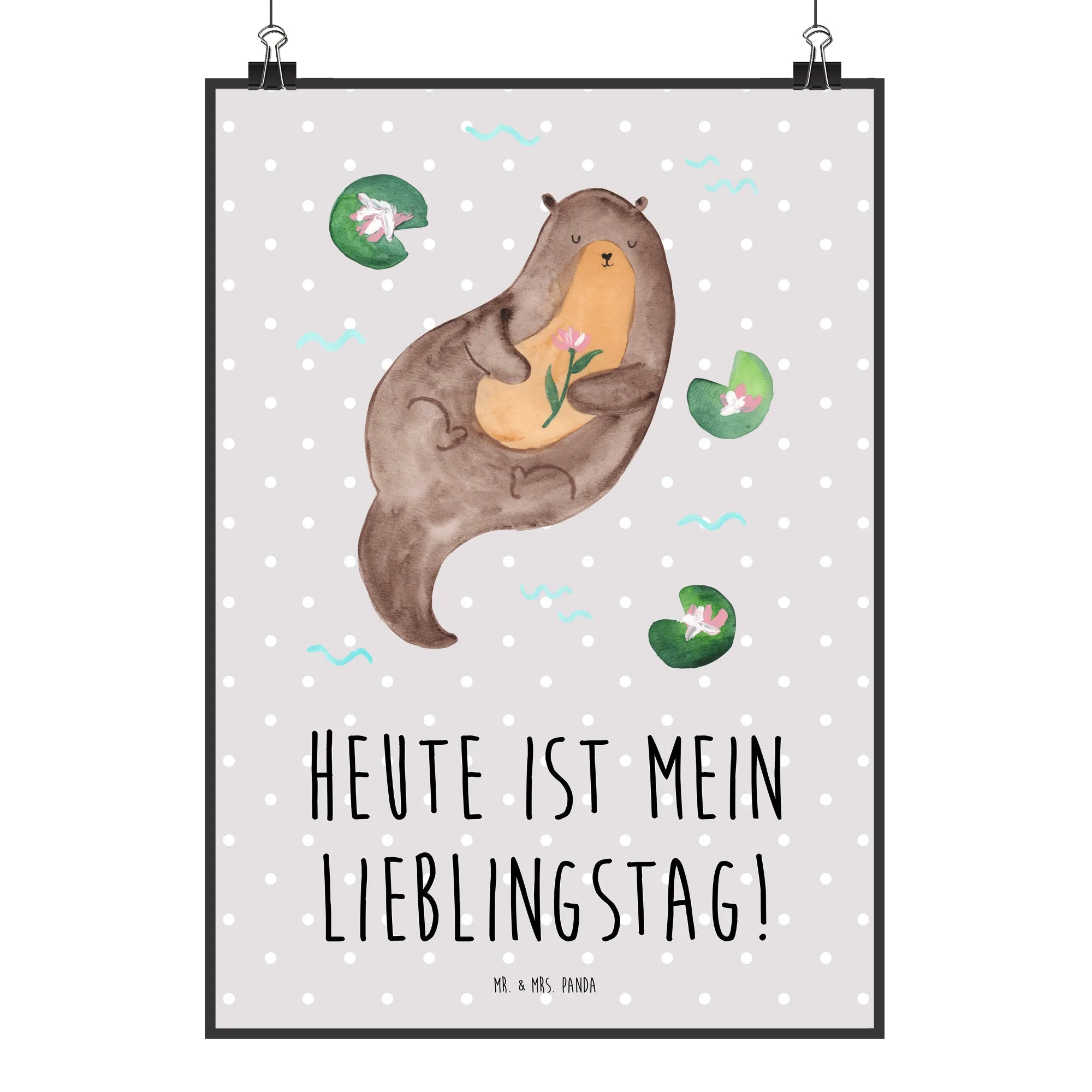 Plakat wydra lilia wodna - DIN A0 - mit Spruch - Pastelowy szary
