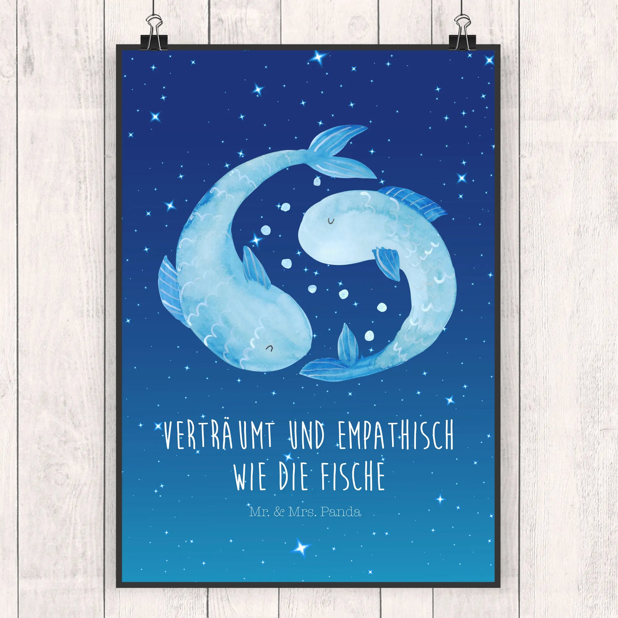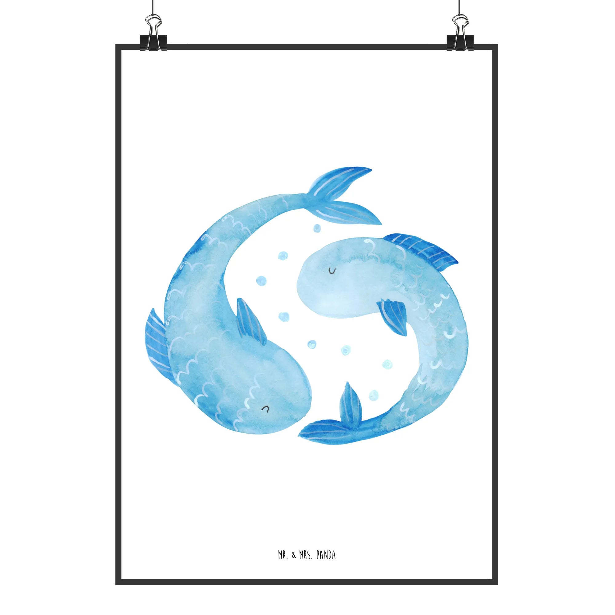 Plakat znak zodiaku Ryby - DIN A0 - z napisem - biały