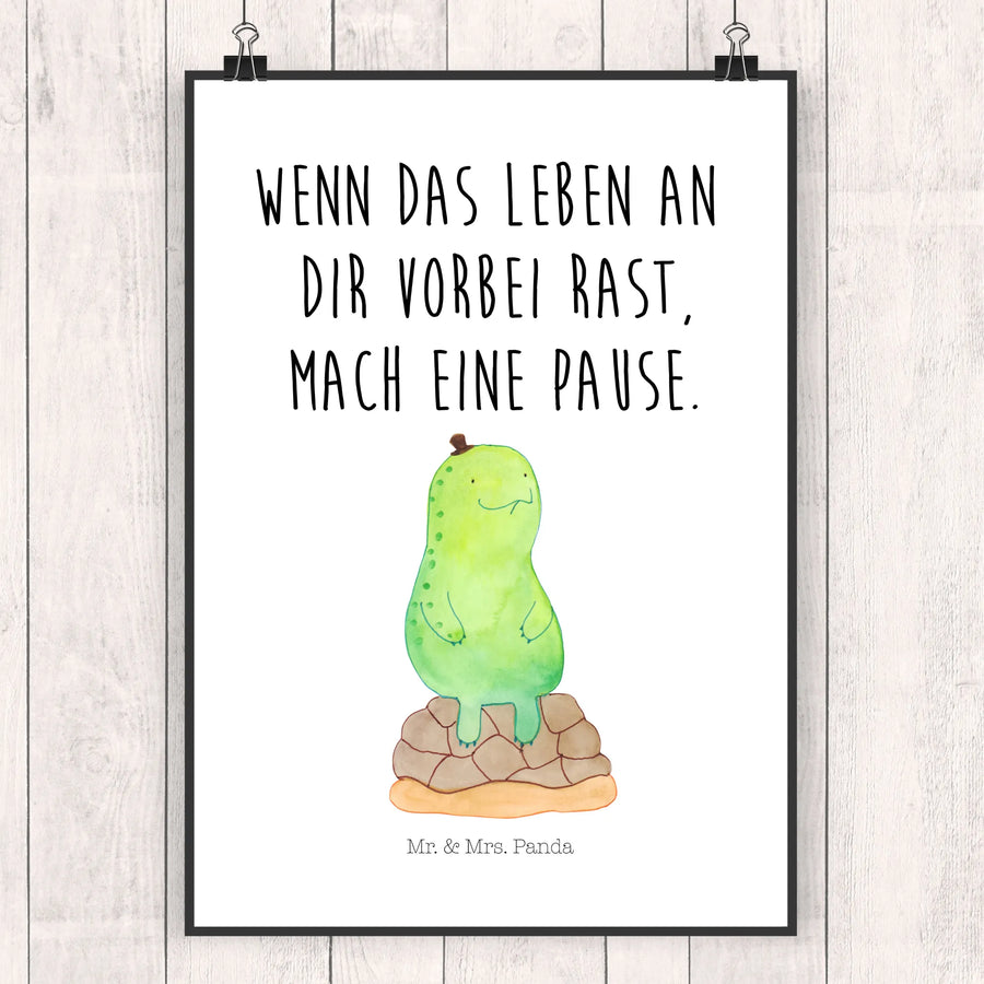 Plakat żółw Przerwa - DIN A0 - z napisem - biały