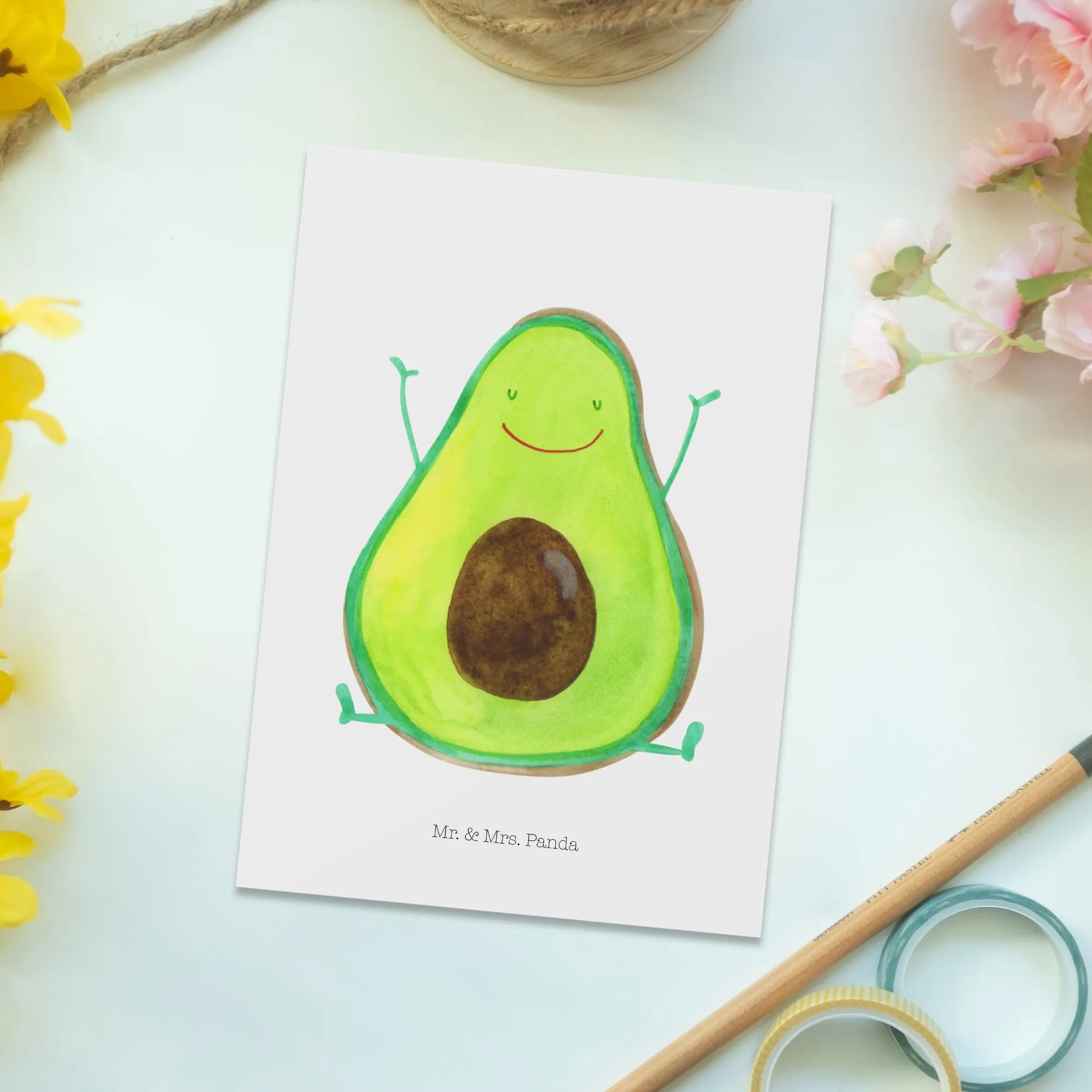 Pocztówka Awokado Szczęśliwy - z napisem - Pastelowy żółty