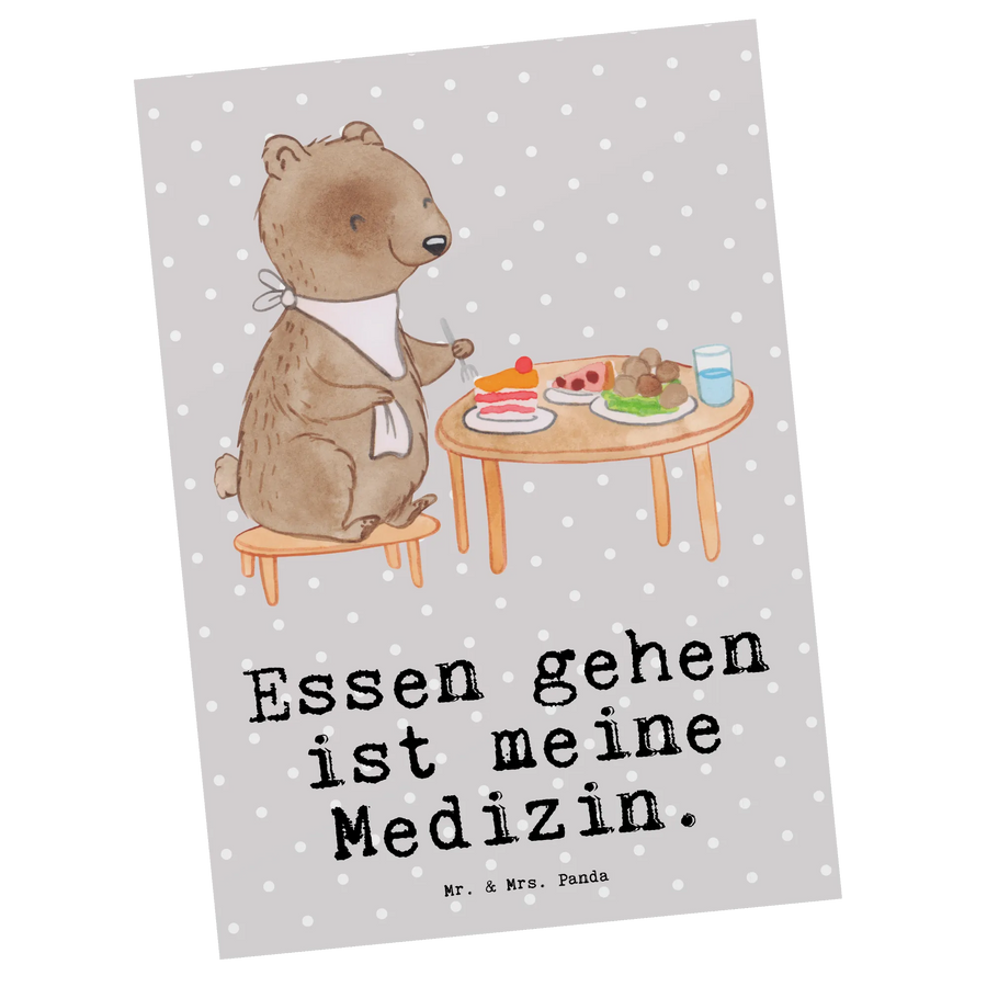 Pocztówka niedźwiedź Zjeść na mieście - Pastelowy szary
