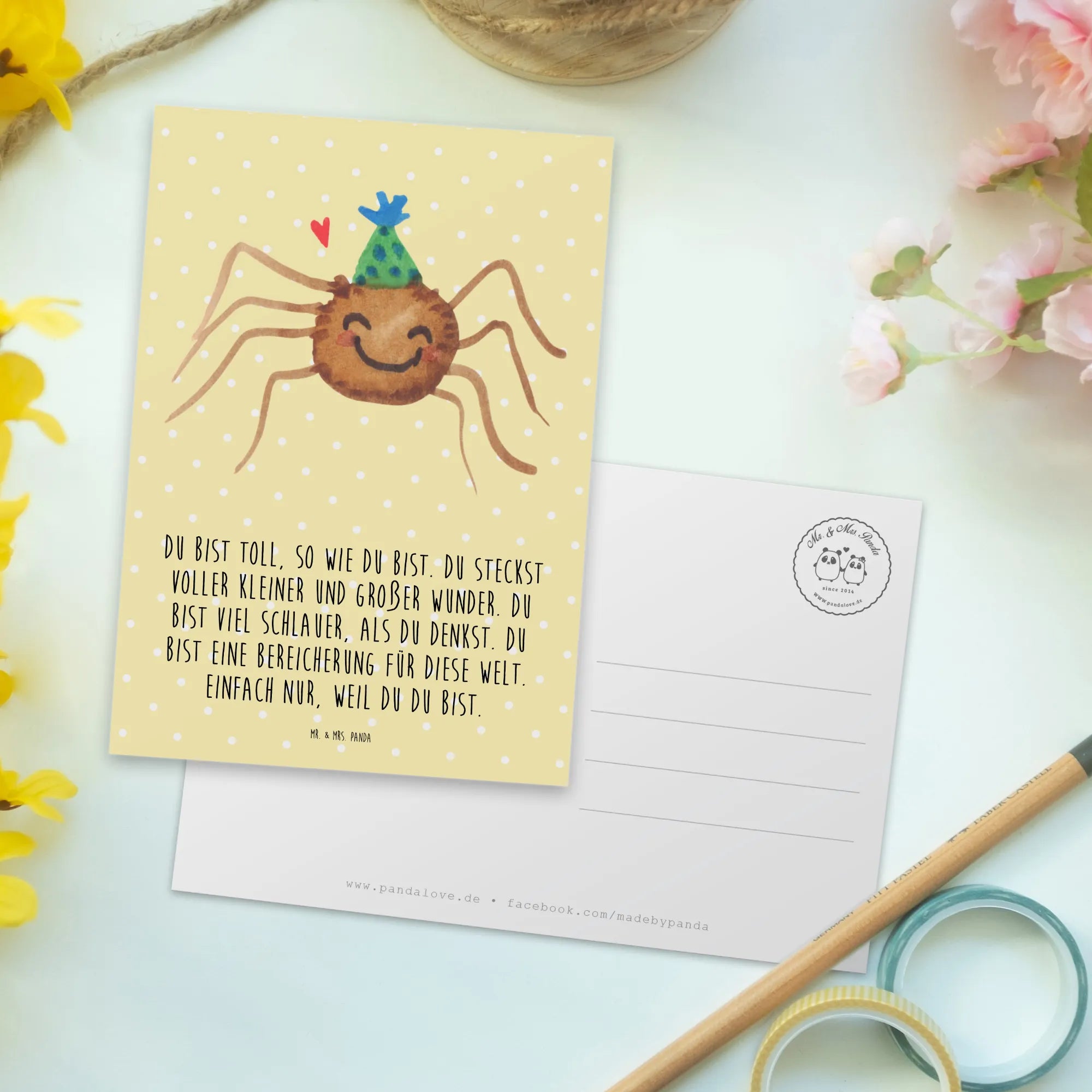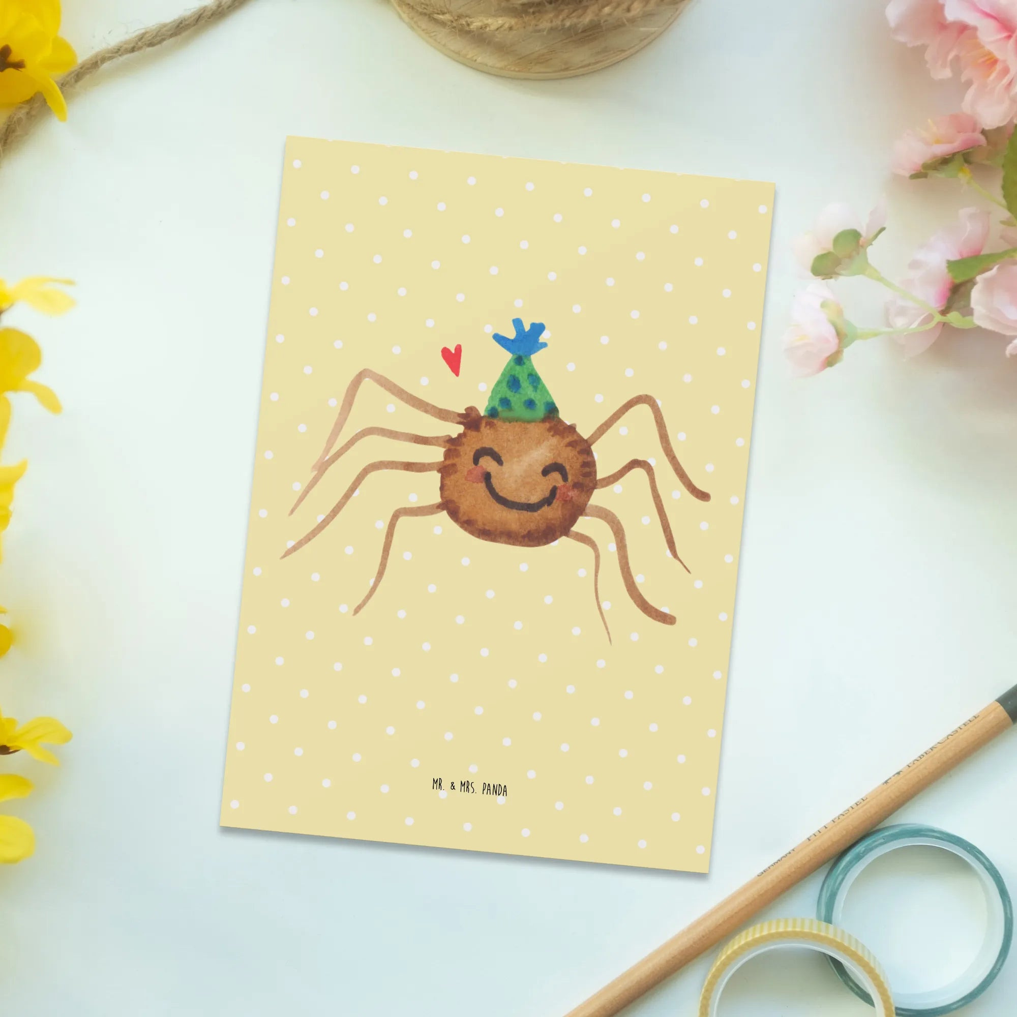 Pocztówka Pająk Agata Impreza - z napisem - Pastelowy żółty