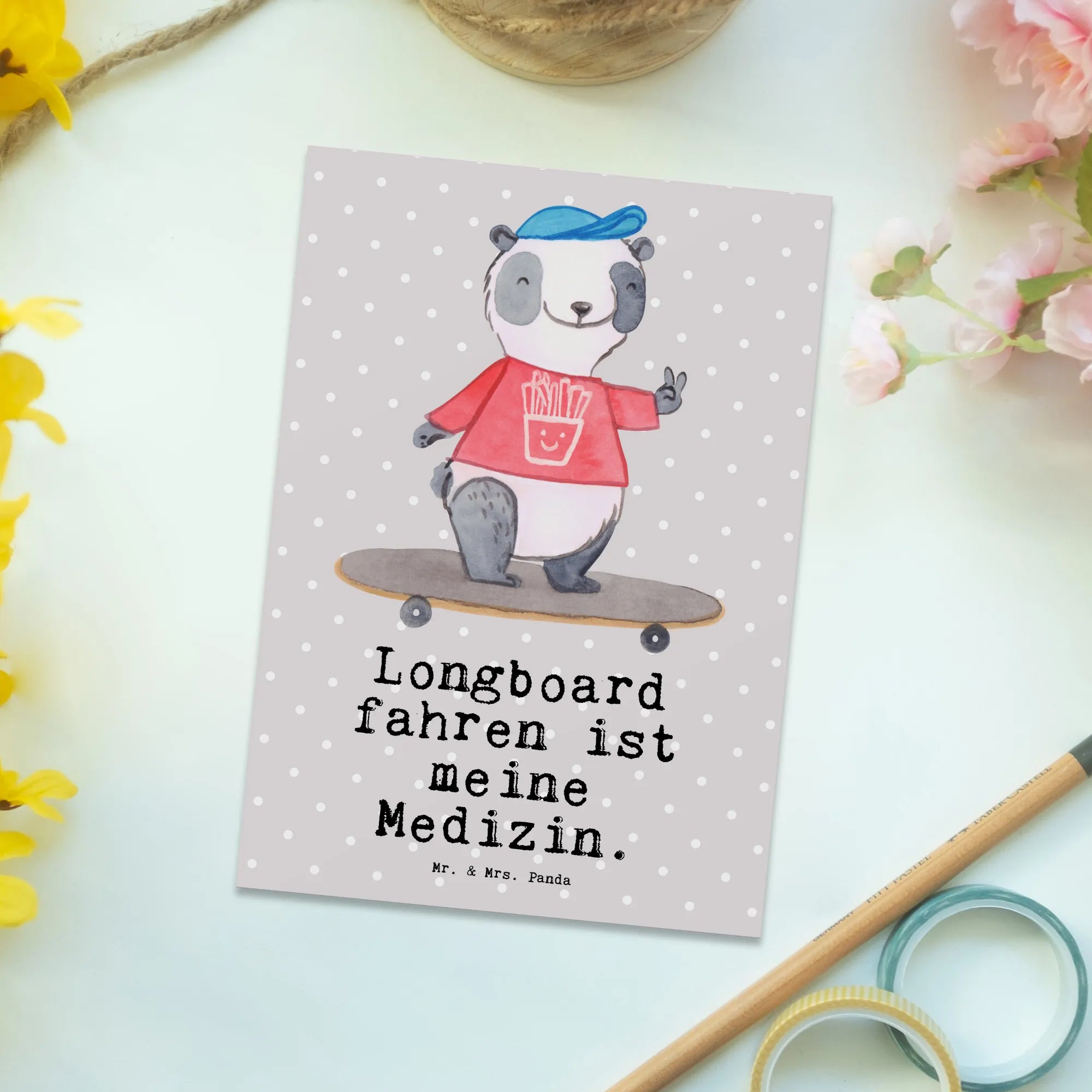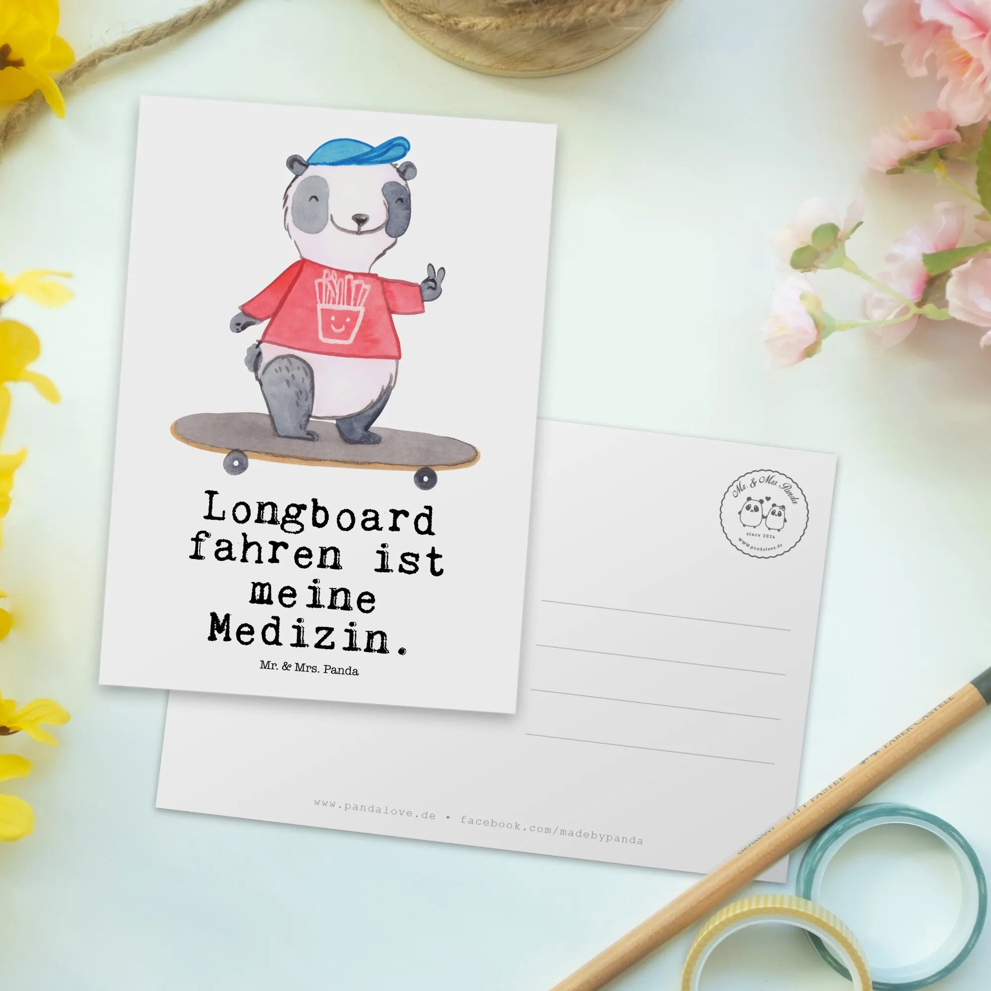 Pocztówka Panda Jazda na longboardzie – Mr. & Mrs. Panda