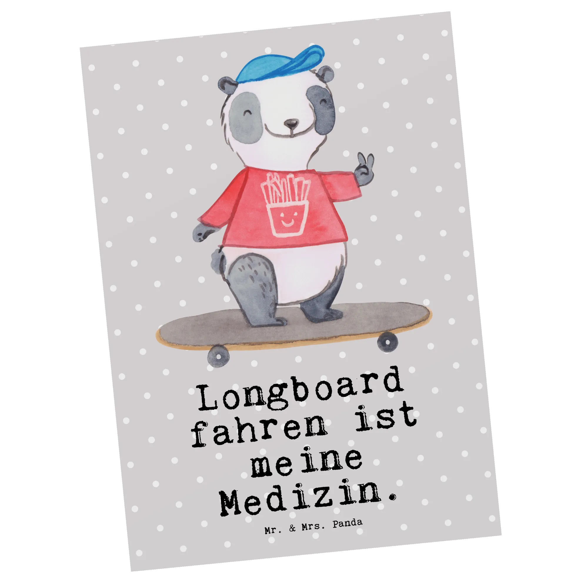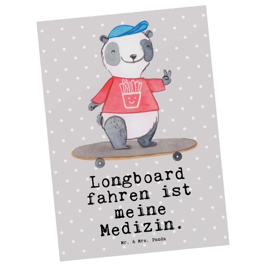 Pocztówka Panda Jazda na longboardzie - Szary Pastel