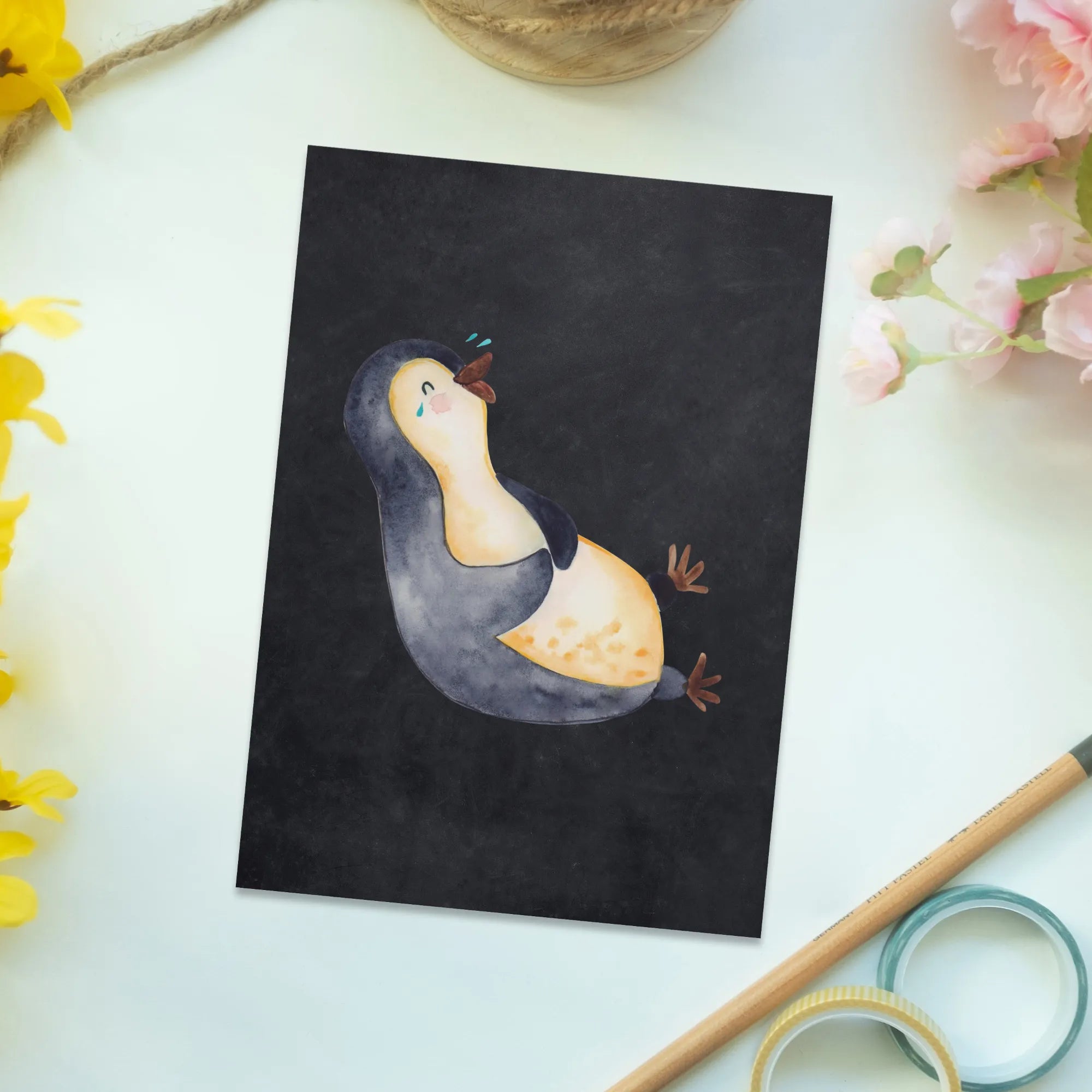 Pocztówka pingwin Śmiech - z napisem - lodowoniebieski