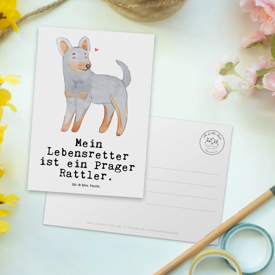 Pocztówka Praski Rattler Ratujący życie - z napisem - Biały