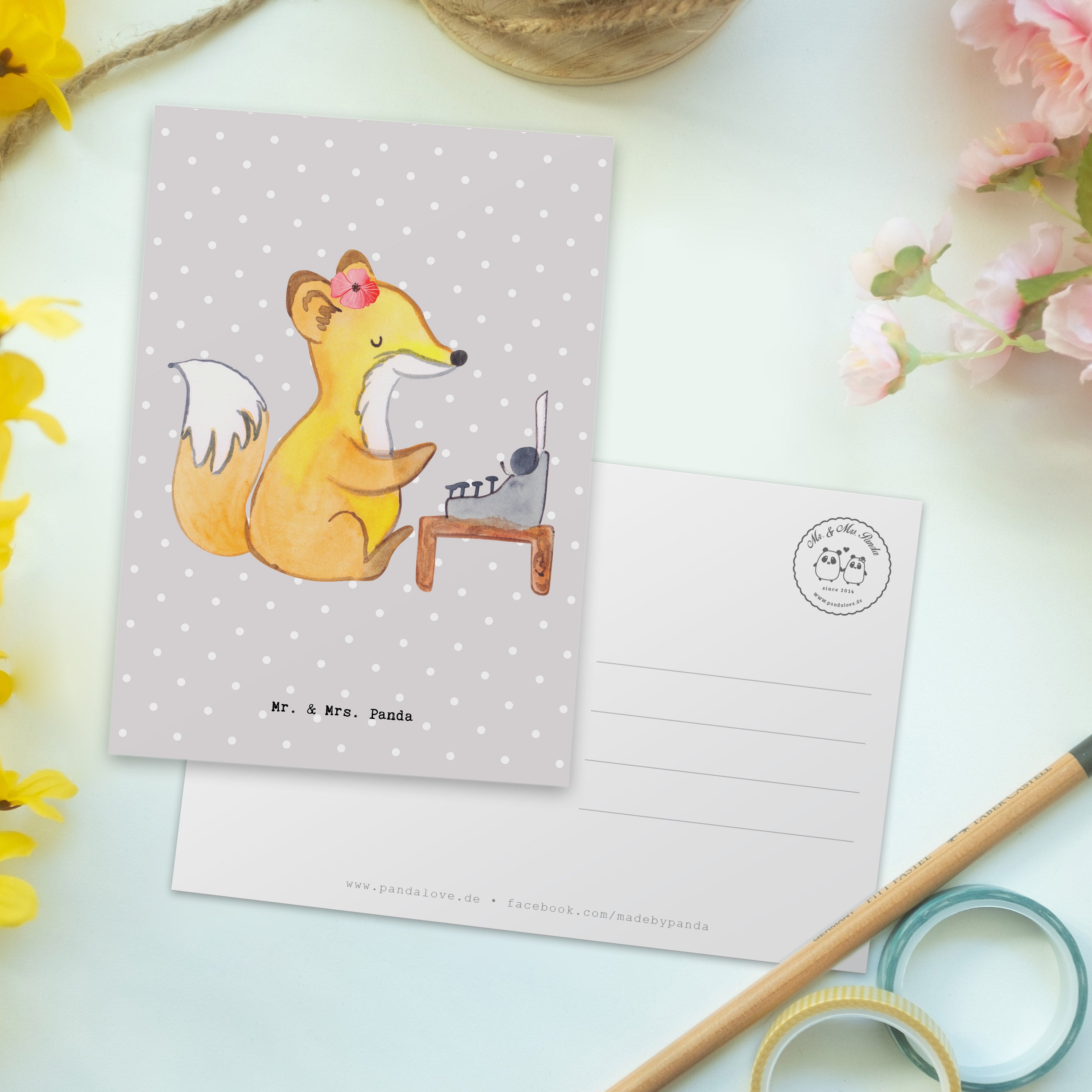 Pocztówka sekretarka serce - z napisem - Szary Pastel