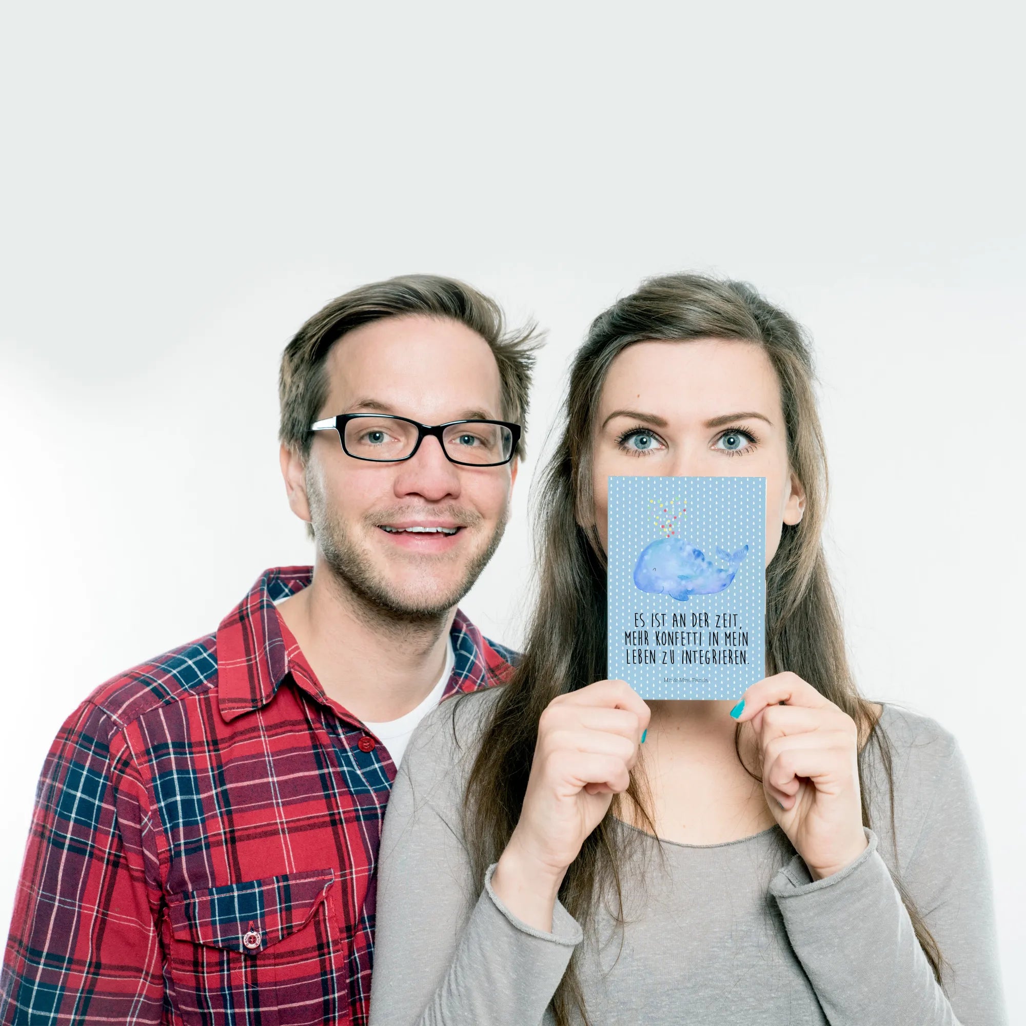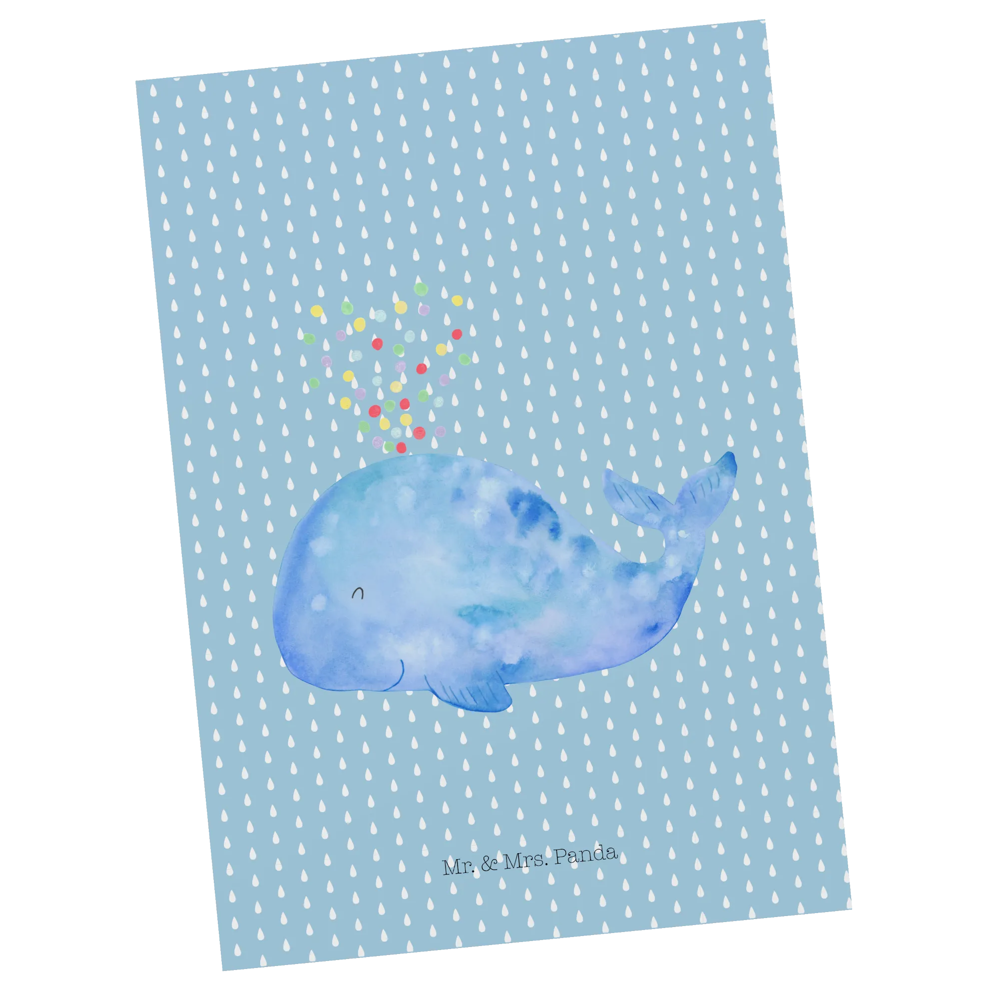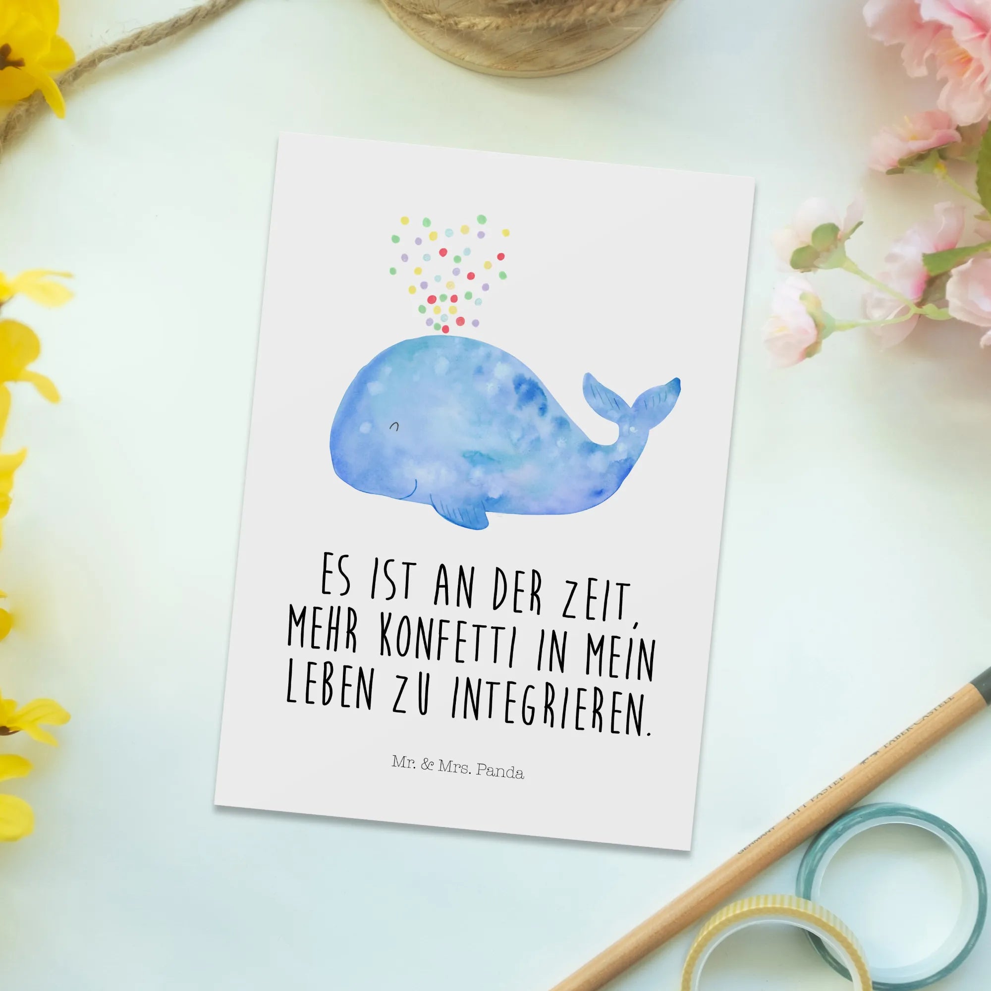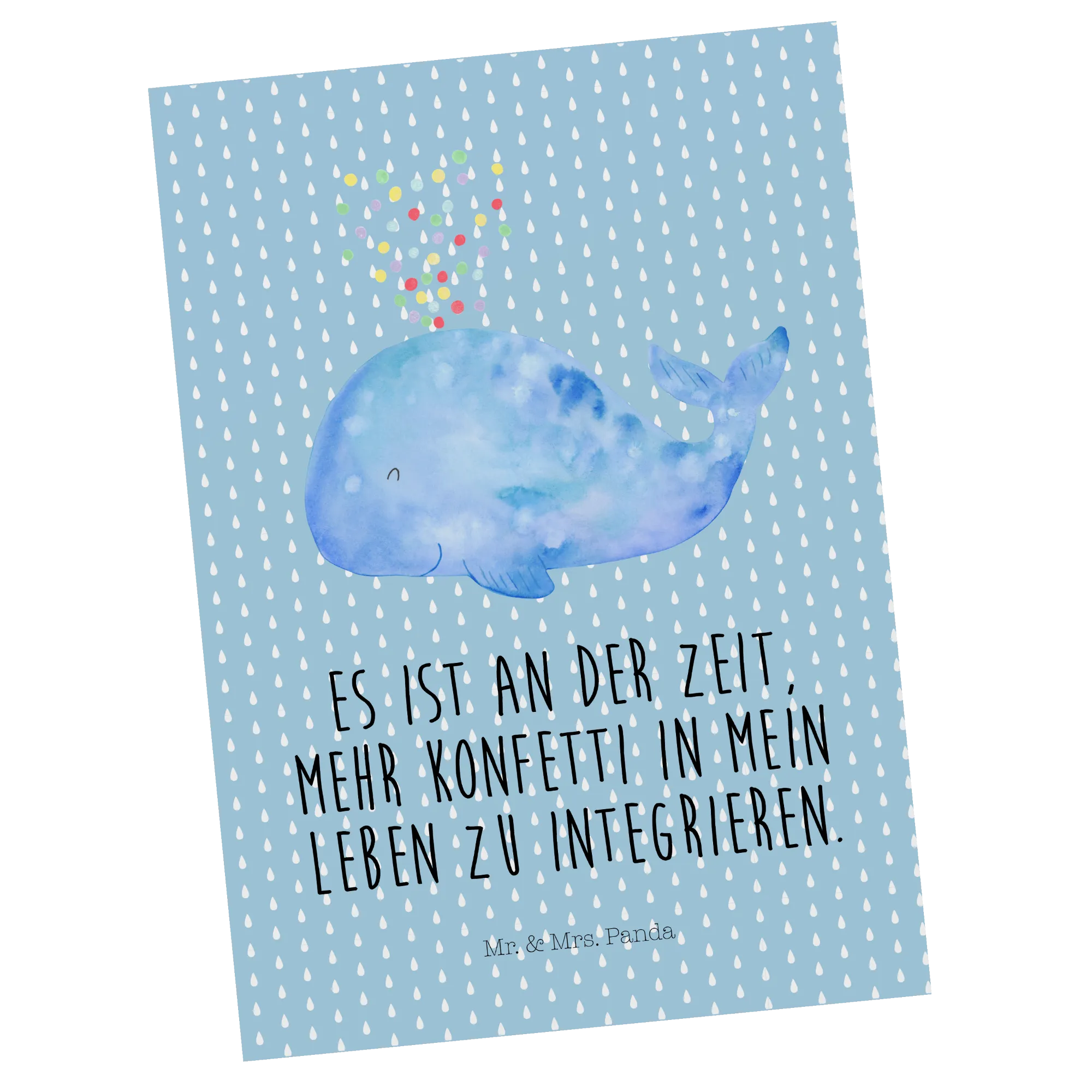 Pocztówka wieloryb konfetti - z napisem - biały