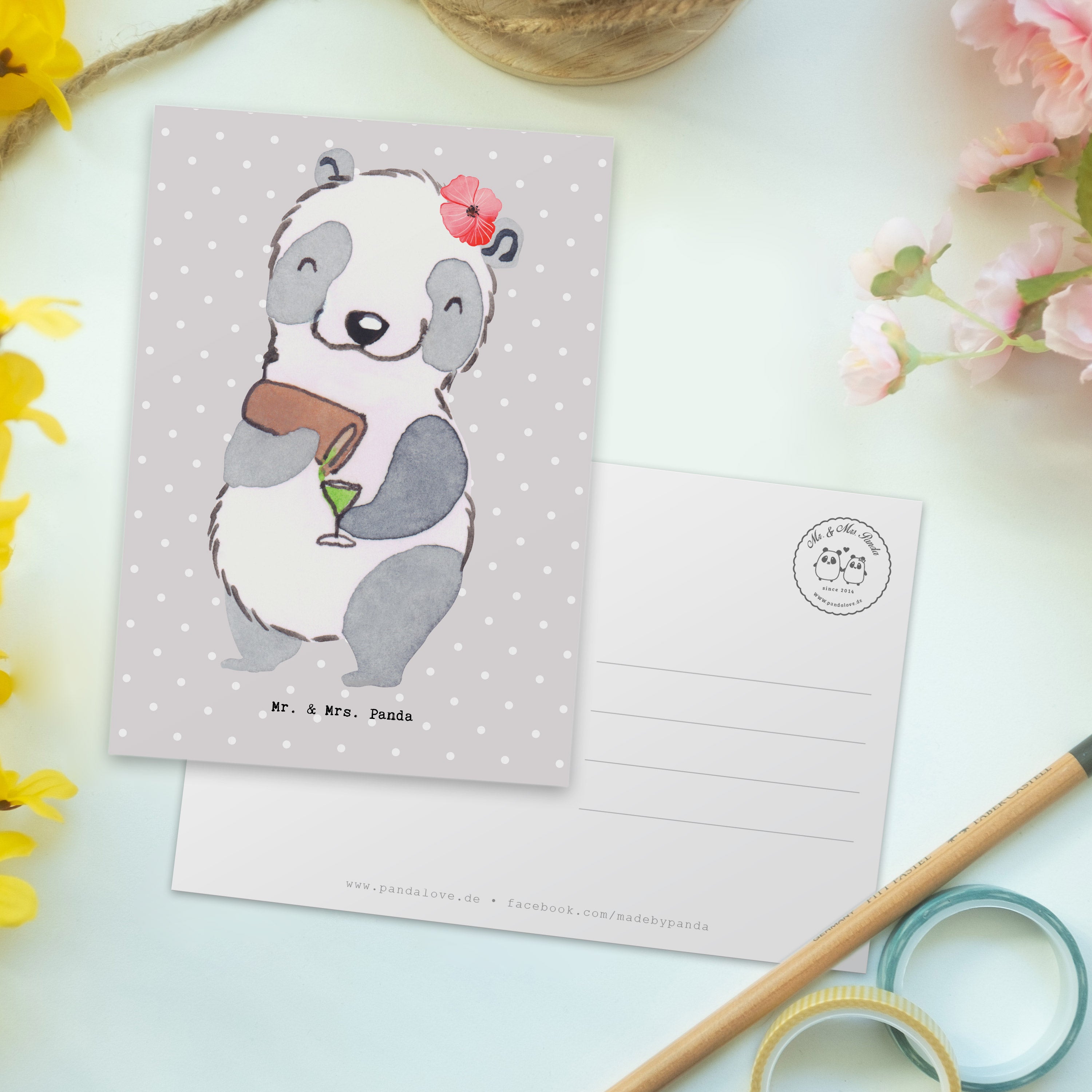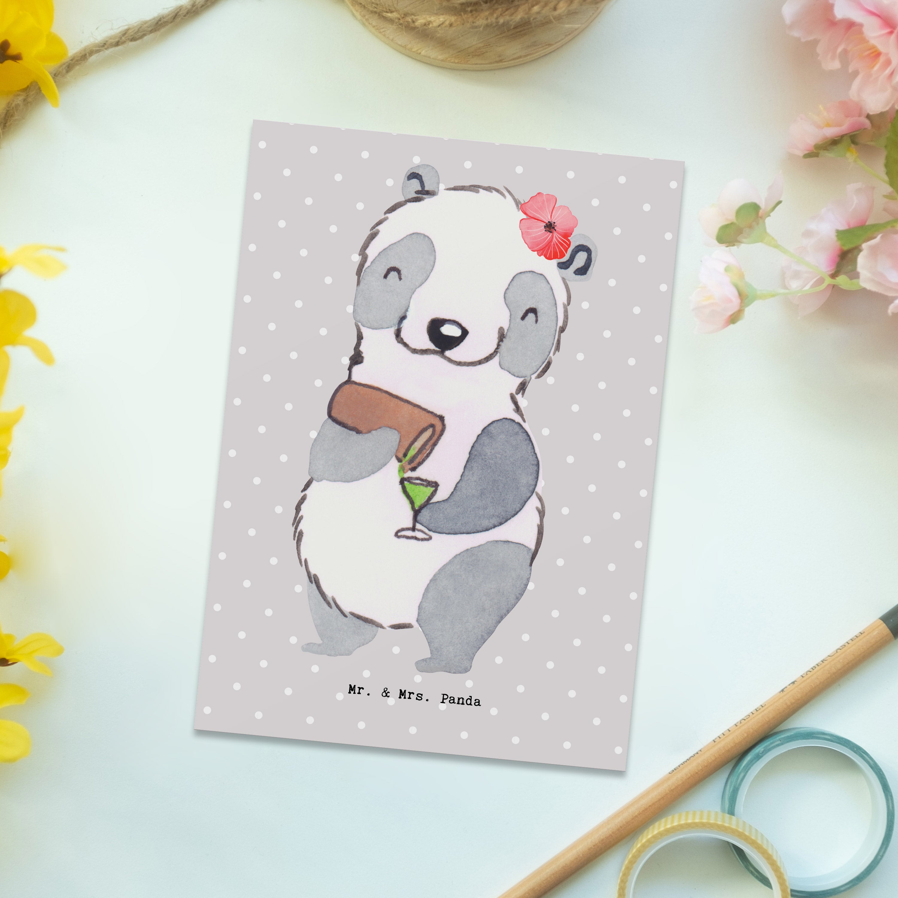 Postkarte „Kneipenwirtin mit Herz“ – aus der charmanten Berufe-Kollektion von Mr. & Mrs. Panda. Dieses liebevoll von Mrs. Panda handgezeichnete Aquarell zeigt unsere freundliche Panda-Kneipenwirtin mit einer Flasche in der Hand. Die Karte wird ohne aufgedruckten Spruch geliefert (Ohne Text), sodass Du Deinen ganz persönlichen Gruß schreiben kannst. 🎨